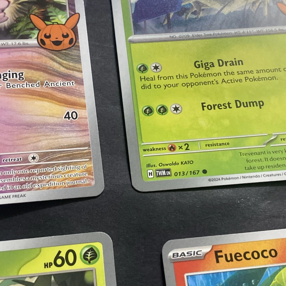 Dive into the world of Pokémon TCG with this exclusive lot of 2024 Trick Or Trade cards, featuring the enigmatic Scream Tail Trevenant and the fiery Fuecoco. Each card is a piece of the captivating Trick Or Treat set, designed to delight both collectors and players alike. The set includes cards numbered 89, 24, 25, and 90, each showcasing the unique abilities and artwork that make the Pokémon series so engaging. Crafted by Millennium Print Group, these cards come in standard size and feature a regular and holo finish, adding a touch of shine to your collection. The lot includes English-language cards, manufactured in the United States, ensuring a quality addition to your Pokémon TCG arsenal. Suitable for ages 4 and up, these cards are a fantastic way to start or enrich any existing collection.