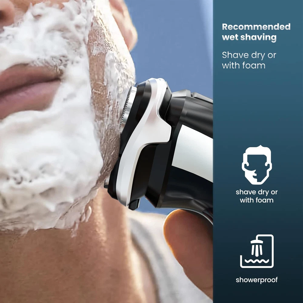 đă3D FLOATING SHAVER HEADă- The electric shaver adopts precision blade technology, high-speed motor, The flexible head rotates 360° to fit any curve of your face, neck or jaw. The 9000 rpm motor gives you a close, deep shave, minimizing pressure and irritation for a smooth, close shave. đăSMOOTH AND CLOSE SHAVE ă- With 3-direction floating heads, the 3D rotary shaver automatically adapts to the contours of the face, neck and jaw, and provides a comfortable and close shave anytime.The more you use it, the better it can adapt to the face đăIPX7 WATERPROOFă- The whole body of the electric razor is IPX7 waterproof,.Enjoy your dry shaving when sitting on sofa, or do a refreshing and comfortable shaving in shower. The rotary shaver easily adapts to either shaving foam or gel for a smoothier and closer shaving experience.Plus, this electric shaver can be washed directly by water. đăPOP-UP TRIMMER & ONE TOUCH OPENă- convenient Pop-Up trimmer is perfect for grooming beards and trimming sideburns. If your beard or other facial hair is too long, it is recommended to use this trimmer before shaving with acordless razor. đăCONVENIENT TYPE-C CHARGINGă- TYPE-C power port is compatible with all standard 5V USB power adapters, convenient for your daily and travel use. This rotary shaver includes a USB charging cable.Enjoy about 120 minutes shaving time (approximately 30 full shaves) with 1 hour full charge. đăPACKAGE LISTă- 1 x Electric Shaver/Electric Razor,1 x USB Cable (NO USB adapter),1 x Charging Cable, 1 x User Manual