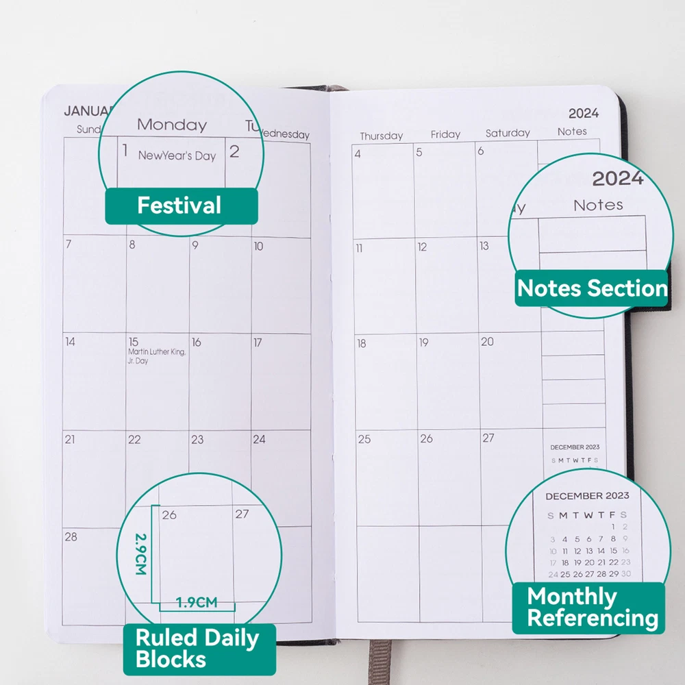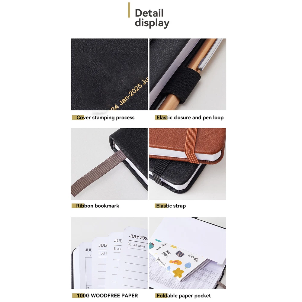 2024-2025 Monthly Weekly Planner Work Schedule Binder With Elastic Strap Bullet Points: Enhanced Planning Precision: This monthly weekly planner covers January 2024 to December 2025. Each daily block is marked with popular holidays and Julian dates, and boasts rich planning functions like an annual plan, holiday list, notes page, and important dates Enough space for writing: Enough space for organization and arrangement of your schedule, making it easier to record more memos and notes, enhancing your productivity and preparing you for success Ink bleed-proof paper: With ink bleed-proof paper, effectively record every detail to ensure clear visibility of plans, boosting seamless scheduling without readability concerns Plan traveling: With our monthly weekly planner, you can record and view your plans anytime, anywhere! Its compact and portable A6 (4 x 6 inches) size easily fits in your pocket or handbag, and the pen loop design makes carrying your pen a breeze Ensure Maximum Protection: Keep your monthly and weekly schedule organized with our waterproof leather planner, featuring an elastic closure cord that prevents damage to contents With a complete time period from January 2024 to December 2025, you'll have enough space for organization and arrangement. Product weight: 210g Product size: 10x18x2.5cm/3.94x7.09x0.98 inches Product material: paper, PU leather Product list: Planning book * 1 piece 1.You can make a Credit payment via Paypal.Paypal will let you use MasterCard,Visa to pay. 2.Payment should be completed within 5 days after auction closed, or unpaid dispute will be filed for an closing auction.An unpaid case will be filled after 4 days. ● We strive for 100% customer satisfaction ! ● Positive Feedback is very important to us. ● We hope that you contact us immediately BEFORE you give us neutral or negative feedback, so that we can satisfactorily address your concerns. ● We promise to offer the lowest price and high quality produce. Dear buyers : ● Welcome to my store ! ● Your satisfaction is our top goal,we appreciate your patronizing. ● If you have any questions, please contact us before leave negative or neutral feedback, we will try our best to solve the issue to your satisfaction, thanks ! ● If you are satisfied with our service, please rate the details of the transaction (Detailed Seller Ratings) on eBay. ● Please always talk to us via ebay Message. ● We appreciate your business and look forward to growing our e-Bay sales with satisfied customers.