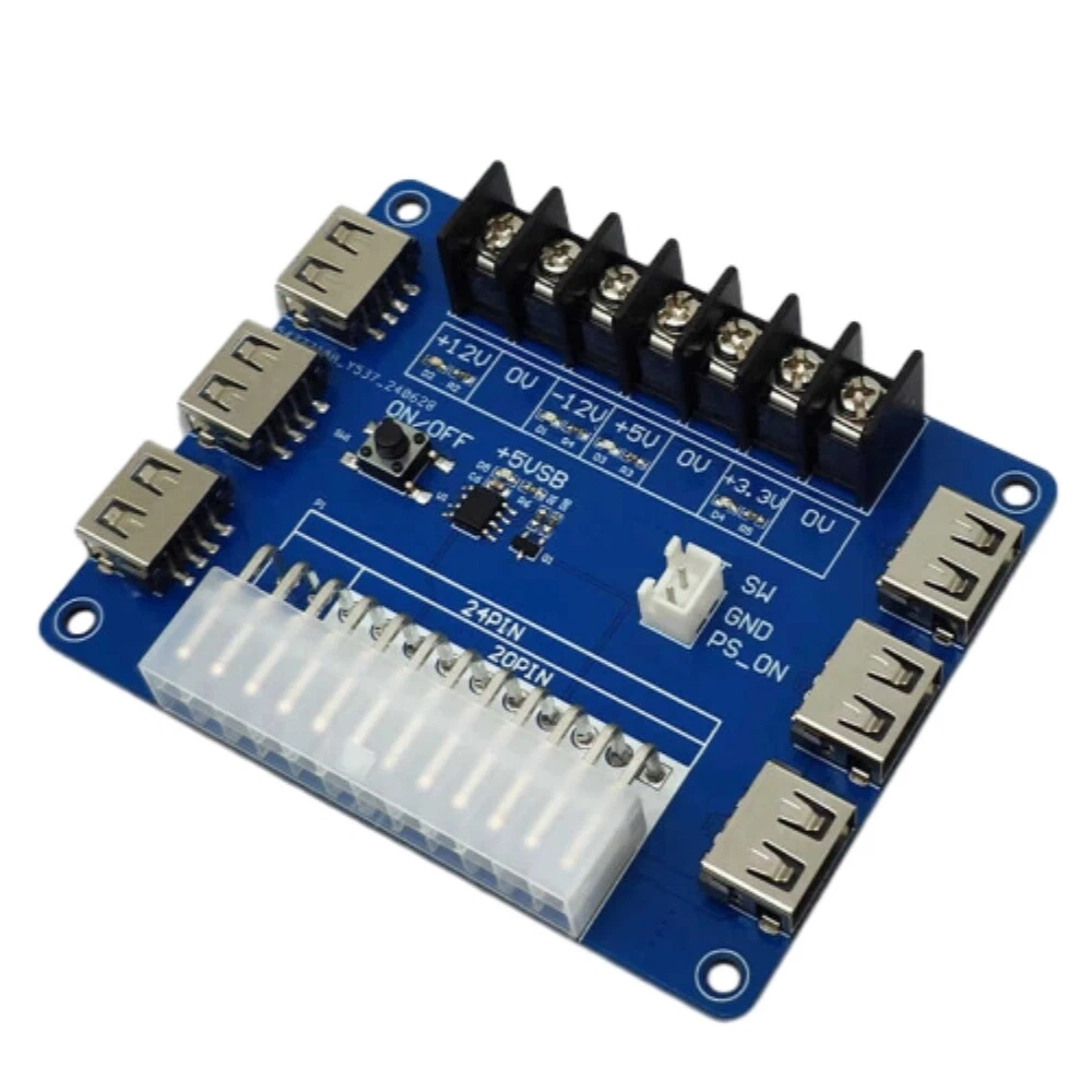 Product Description 20/24pin ATX Power Supply Breakout Board 5V/2A 6 USB Charging Desktop Chassis Power Supply Adapter Board Support 12V 5V 3.3V Feature: 1. Integrate d USB charging port, can directly draw power from desktop power supply to charge mobile phones, tablets and other digital devices, convenient and fast, no need for additional power adapter 2. Provides a variety of voltage output interfaces (such as 5V, 12V, -12V, etc.), can be flexibly powered according to the needs of different devices, suitable for access to a variety of electronic devices 3. No need for complicated installation, touch the switch to start and shut down with one button; good compatibility, compatible with 20PIN and 24PIN ATX computer power supply 4. The power board reserves the user with a modification interface external switch, and the user can DIY according to their needs 5. Suitable for standard ATX power supply, easily convert the desktop computer case power supply into a multi-purpose power supply, meeting the needs of various application scenarios such as DIY projects, electronic experiments, and small server construction Specifications: Output: 5V/2A Terminal: Maximum 20A output USB interface: 6 groups 4 power outputs: +12V, -12V, +5V, 3.3V Power output indicator: +12V normal output = red -12V normal output = red +5V normal output = red 5VSB normal output = red 3.3V normal output = red Compatible: Compatible with all 20-pin and 24-pin computer power supplies Note: 1. Due to the light and screen difference, the item's color may be slightly different from the pictures. 2. Please allow 1mm-1cm differences due to manual measurement. Package Included: 1x Power Supply Breakout Board About Us Payment Shipping Terms Contact Us Welcome to our store! We are a professional worldwide wholesale company, with our own factory located in China. We supply many products including video game, health & beauty, phone accessories, computers accessories, camera & camcorder,car accessories, Clothing accessories, games, toys & hobbies, jewelry, antique & craftwork. High product quality,reasonable prices, excellent customer service and a reliable credit standing is our tenet. We accept PayPal only. Payment must be received in 7 business days of auction closing. Please leave note for your special request (e.g. Colors or Size) in PayPal when you pay the order. Any special request cannot be accepted after 24 hours of payment, because most of orders will be processed instantly and same day dispatched. Item will be shipped out within 48 hours upon receipt of your payment. The shipping time details, please read the shipping and delivery together with the price. We ship to your PayPal address. Please make sure your PayPal address is correct before you pay. Considering the cost of business and easy shipping, usually the item is packed in retail packaging. Country Shipping Time Working Days + Saturday + Sunday 5-7 8-15 16-20 21-25 26-30 >31 United States Rate(item arrived) 5.1% 50.1% 29.6% 10.5% 4.7% Refund United Kingdom Rate(item arrived) 9.9% 63.2% 19.1% 3.4% 4.4% Refund Australia Rate(item arrived) 21.4% 50.0% 14.3% 7.2% 7.1% Refund France Rate(item arrived) 10.5% 28.6% 43.8% 10.1% 7.0% Refund Germany Rate(item arrived) 11.1% 22.2% 30.3% 20.9% 15.5% Refund Canada Rate(item arrived) 0.0% 47.1% 31.4% 17.6% 3.9% Refund Spain Rate(item arrived) 3.7% 24.1% 48.2% 13.8% 10.2% Refund If this item is defective upon receipt, customer has up to 14 days from date of receipt for exchange of a new one.But buyers should be pay for the shipping charge for returning. We care about our valued customers, and are always willing to work things out. If you have any problems, please e-mail us immediately. If you have any questions, please feel free to send eBay message to us, our service specialists 24 Hours a Day, 7 Days a Week (maybe there is some delay in weekends). Our aim is to provide Top Level Customer Service, normally so we will try our best to solve any problem. Please DON'T leave negative or neutral feedback if you haven't received item in 30 days, because we have mentioned the shipping time repeatedly. About Us Welcome to our store! We are a professional worldwide wholesale company, with our own factory located in China. We supply many products including video game, health & beauty, phone accessories, computers accessories, camera & camcorder,car accessories, Clothing accessories, games, toys & hobbies, jewelry, antique & craftwork. High product quality,reasonable prices, excellent customer service and a reliable credit standing is our tenet. Payment We accept PayPal only. Payment must be received in 7 business days of auction closing. Please leave note for your special request (e.g. Colors or Size) in PayPal when you pay the order. Any special request cannot be accepted after 24 hours of payment, because most of orders will be processed instantly and same day dispatched. Shipping Item will be shipped out within 48 hours upon receipt of your payment. The shipping time details, please read the shipping and delivery together with the price. We ship to your PayPal address. Please make sure your PayPal address is correct before you pay. Considering the cost of business and easy shipping, usually the item is packed in retail packaging. Country Shipping Time Working Days + Saturday + Sunday 5-7 8-15 16-20 21-25 26-30 >31 United States Rate(item arrived) 5.1% 50.1% 29.6% 10.5% 4.7% Refund United Kingdom Rate(item arrived) 9.9% 63.2% 19.1% 3.4% 4.4% Refund Australia Rate(item arrived) 21.4% 50.0% 14.3% 7.2% 7.1% Refund France Rate(item arrived) 10.5% 28.6% 43.8% 10.1% 7.0% Refund Germany Rate(item arrived) 11.1% 22.2% 30.3% 20.9% 15.5% Refund Canada Rate(item arrived) 0.0% 47.1% 31.4% 17.6% 3.9% Refund Spain Rate(item arrived) 3.7% 24.1% 48.2% 13.8% 10.2% Refund Terms If this item is defective upon receipt, customer has up to 14 days from date of receipt for exchange of a new one.But buyers should be pay for the shipping charge for returning. We ca