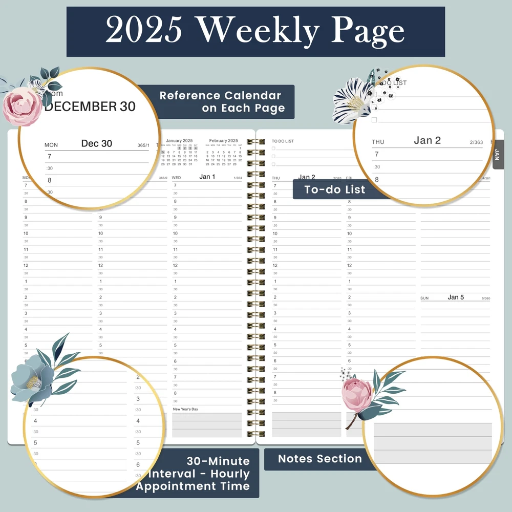 2025 Appointment Book - 2025 Daily Planner, Weekly Appointment Book 2025, Jan. 2025 - Dec. 2025, 2025 Hourly Planner with 30-Minute Interval, 8" x 10" ๐ธ 2025 APPOINTMENT BOOK - 2025 weekly appointment book (8" x 10") covers 12 months from Jan. 2025 - Dec. 2025, 2025 hourly planner can help you to keep your life totally organized, perfect for staying focused and hit your goals. ๐ธ PLAN YOUR DAY - One week per two page spread features one vertical column for each day. Schedule your day from 7:00 a.m. - 8:30 p.m. in 30 minute intervals from Monday to Sunday with ample ruled writing space, and the countdown of days can help you organize your 2025. ๐ธ GUIDE YOUR WEEK - 53 weeks of weekly pages with Julian dates, each week of this 2025 daily planner has the past, present and future month as reference + To do list section in this 2025 hourly planner can help you keep organized for the whole week + Extra note section for other unexpected notes + End of week review can help you write down your ideas. ๐ธ FUNCTIONAL DETAILS - 8" x 10" Planning Pages + Quick Reference Information + 2025 Daily Tracker + 2025-2026 Yearly Overview + 2025-2026 Holidays + Golden Strong Twin-Wire Binding + Julian Date + Premium Paper + Oil Painting Cover Design + Printed Tabs. ๐ธ SUPERIOR SERVICE - The 2025 appointment book can help you to improve your time management skills and become a better version of yourself. We will do our best to make you happy if you have any quality problems. Give us a chance and let us show you a great weekly appointment book 2025 experience. ๐ธ 2025 APPOINTMENT BOOK - 2025 weekly appointment book (8" x 10") covers 12 months from Jan. 2025 - Dec. 2025, 2025 hourly planner can help you to keep your life totally organized, perfect for staying focused and hit your goals. ๐ธ PLAN YOUR DAY - One week per two page spread features one vertical column for each day. Schedule your day from 7:00 a.m. - 8:30 p.m. in 30 minute intervals from Monday to Sunday with ample ruled writing space, and the countdown of days can help you organize your 2025. ๐ธ GUIDE YOUR WEEK - 53 weeks of weekly pages with Julian dates, each week of this 2025 daily planner has the past, present and future month as reference + To do list section in this 2025 hourly planner can help you keep organized for the whole week + Extra note section for other unexpected notes + End of week review can help you write down your ideas. ๐ธ FUNCTIONAL DETAILS - 8" x 10" Planning Pages + Quick Reference Information + 2025 Daily Tracker + 2025-2026 Yearly Overview + 2025-2026 Holidays + Golden Strong Twin-Wire Binding + Julian Date + Premium Paper + Oil Painting Cover Design + Printed Tabs. ๐ธ SUPERIOR SERVICE - The 2025 appointment book can help you to improve your time management skills and become a better version of yourself. We will do our best to make you happy if you have any quality problems. Give us a chance and let us show you a great weekly appointment book 2025 experience. Shipping from the USA All of our products are shipped from the USA, ensuring quick delivery to your destination. Payment We offer the following payment methods: PayPal, credit card, bank transfer, and eBay's secure payment system. Free Shipping & Free Returns Shipping within the USA is FREE. Additionally, any return is absolutely free for you. Risk-Free Purchase You have the option to return an item within 30 days without any justification. We cover the return shipping costs! Fast Shipping We ship immediately upon receipt of payment. Generally, the package is delivered within 2-3 days in the USA. If it takes longer, we will contact you. Quality and Costs Made in Europe, USA, China No customs fees or additional charges Total satisfaction guarantee Invoice with declared VAT available upon request in .pdf format Feedback Your feedback is very important to us. After you pay for your purchase, you will automatically receive positive feedback from us.