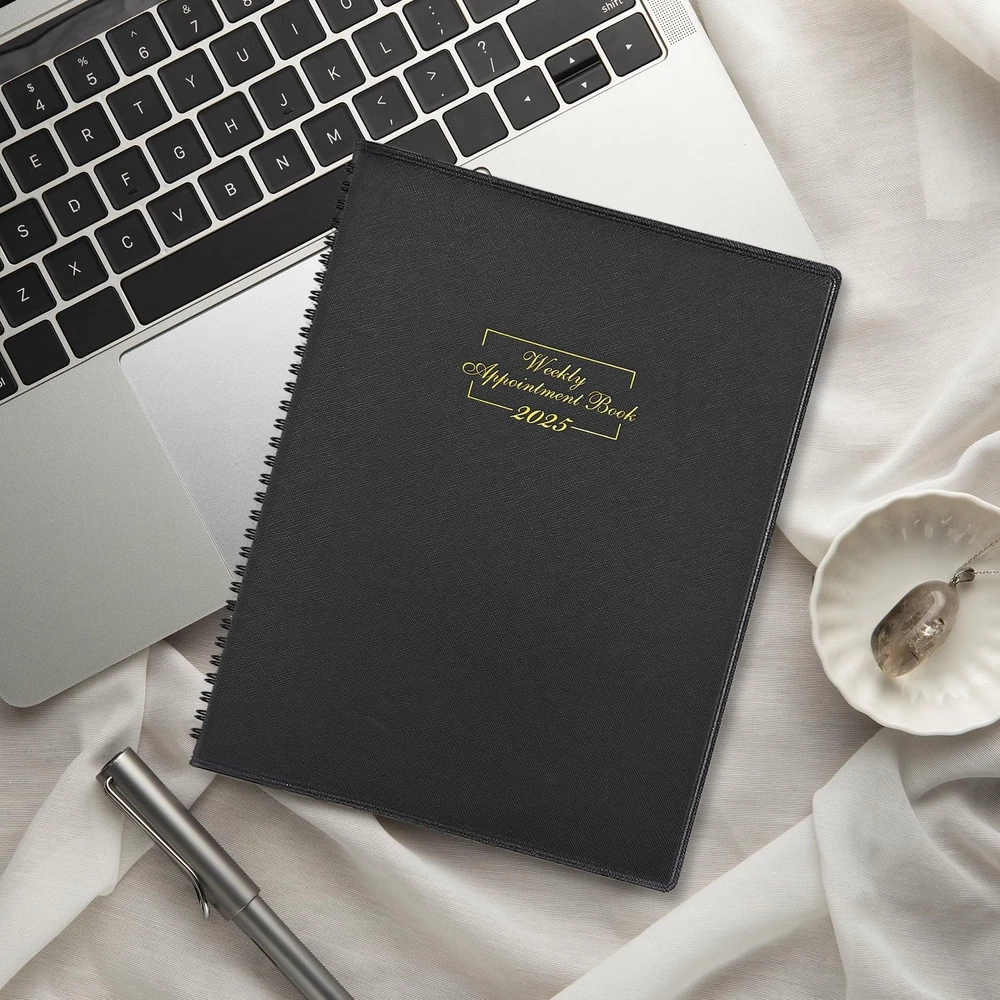 The 2025 Weekly Appointment Book is an 8.5" x 11" planner designed for optimal organization and productivity from January to December 2025. The 2025 planner features a soft cover and includes monthly, weekly, daily, and hourly planning with 15-minute increments, ideal for school, office, and work schedules. Keep Your Day On Track & Boost Your Productivity - Start planning ahead with this 2025 daily planner, featuring 12-month from January 2025 - December 2025, the comprehensive 2025 hourly, daily, weekly, monthly and yearly planner, allowing you to jot down detailed appointments, important things and other notes - all in one place, keeps yourself organized well for the whole year and increase productivity, perfect for school office work daily planning. Versatile Usage & Stay On Top Of Schedule- Sized at 8.5×11", each month displays across two full pages, offers ample space for academic daily affairs, work deadlines, and household task. This 2025 appointment book also features one week per two page spread. Schedule your day from 7:00 a.m. - 8:30 p.m. in 15-minute intervals from Monday to Sunday to set yourself up for purposeful days. Stay focused & manage your time efficiently! Elegant Design & Perfect For All Lifestyles- Enjoy a thicker planner appointment book with a soft leather cover and premium high-quality paper, a quick glance provides with a professional and structured approach to time management and personal growth. Ideal for college students, teachers, professionals and homemakers. A perfect school/work planner for setting your targets, managing daily assignments, cultivating healthy life habits and optimizing success. PERFECT ORGANIZATION - The 2025 hourly appointment planner measures 8.5×11", thicker than other 2025 daily appointment book on Amazon, with a soft faux leather cover. There are 1 page of future planning | 1 page of yearly overview for 2024-2026 | 1 page of major holidays of 2024-2026 | 1 page for quick reference information | 8 lined pages for some notes, ideas, meetings and appointments. Now Is The Best Time To Prepare Your 2025 - Open your fabulous 2025 with this daily planner! Our Appointment Book 2025 helps everyone keep on top of the long-term goals and detailed assignments in studies and works, making it an purposeful present that fosters organization and personal growth for birthdays, graduations, shcool open days and festive seasons throughout the year.