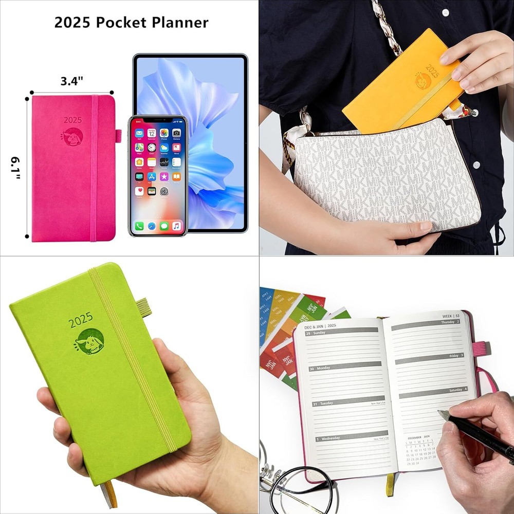 Thanks! 2025 Pocket Calendar by 2025 Weekly and Monthly Planner for Purse, Small Agenda “WEEKLY & MONTHLY OVERVIEW” - This Jan 2025 - Dec 2025 weekly planner boasts a lay-flat, 2-page week-to-view format that offers ample space for daily planning. With hourly schedules for your appointments, it helps to keep your busy daily routines neatly organized ”PERFECT POCKET SIZE“ - Designed with a durable, lightweight, and compact design, our 2025 Purse Calendar easily slips into bags, purses, or pockets. The sturdy hardcover offers superior protection for your plans and notes ”FUNCTIONAL DETAILS” - 2 Bookmarks + Pen holder + Back pocket to hold some cards + Tear-off corner to lock your current day+12 Month Stickers + Elastic closure to keep planner securely closed ”ENHANCED ORGANIZATION” - 2025-2026 Year Plan + Notes column in monthly page + 2025-2026 calendar overview + 2025-2026 holiday pages + Expense tracker pages + Important date pages+Contact & Password pages + 5 notes pages. Focus on meeting all your needs Shipping We offer FREE shipping on all orders! We ship within Three business days of payment, usually sooner. We use a selection of shipping services such as UPS, FedEx, USPS etc. We only ship to the lower 48 states, no APO/FPO addresses or PO Boxes allowed. Local pickups and combined shipping options are not provided at this time.