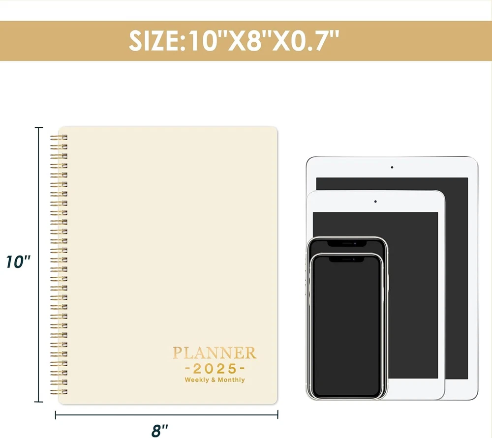 2025 Planner - 2025, JAN. - DEC. 8" x 10" 2025 Gold Product Details Manufacturer: Attitill Brand: Attitill Item Weight: 11.3 ounces Package Dimensions: 9.76 x 7.68 x 0.39 inches Item model number: HCS810MSDZYA25 Color: Gold Cover Material: Paper Material Type: Paper Sheet Size: 8x10 Manufacturer Part Number: HCS810MSDZYA25 Brand: Attitill Color: Gold Cover Material: Paper Year: 2025 Format: Organizer, Notebook Calendar Type: Weekly and Monthly Target Audience: Teacher, Adult, Student Sheet Size: 8x10 Material: Paper Item Weight: 0.32 Kilograms 2025 PLANNER - The 2025 planner weekly and monthly includes 2025 & 2026 yearly overview and 2025-2027 holidays overview. The planner 2025 is also a multifunctional planner, which uniquely adds extra function pages. WEEKLY PLANNER - The weekly planner pages of the 2025 planner contain 53 weeks, for more detailed daily goal planning. The 2025 planner weekly and monthly has plenty of space for daily planner writing. Each daily planning place of the planner spread across two sides to make your planning more flexible. MONTHLY PLANNER - The monthly planner pages of the 2025 calendar monthly planner contain 12 months. And the planner 2025 can help you comprehensively follow up the progress of the plan from the perspective of the whole month. This 2025 planner has enough writing space to make plans. There are also three months calendar reference in the planner, which can be used to check your date in your planning. 2025 PLANNER FOR ORGANIZATION- The 2025 planner weekly and monthly is absolutely the best planner for goal planning and efficient completion, suitable for office, study, life schedule, etc. The 2025 planner is not only good for your own use, but also good for your family, friends and loved ones. FUNCTIONAL DESIGNS - Well Designed Cover | Twin-Wire Binding | 2 Yearly Overview | 3 Years Holiday Overview | 2 Contacts Pages | Quick Reference Information | Holidays Reminder | Julian Dates | Notes Section | Monthly Tabs | 2025 Planner
