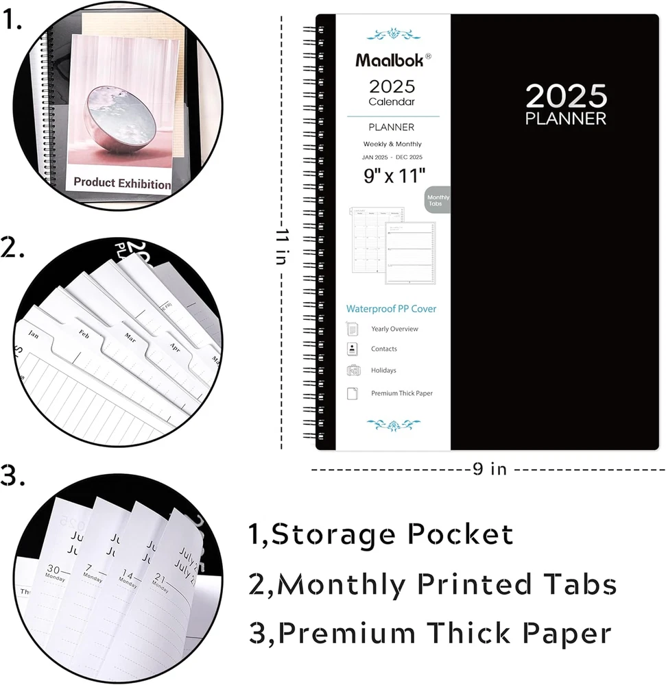 Store New Arrivals Add to Favorite View Feedback Contact 2025 Planner 8.9" X 11.2" Weekly Monthly Jan-Dec Tabs Twin-Wire Pocket 2025 Planner 8.9" X 11.2" Weekly Monthly Jan-Dec Tabs Twin-Wire Pocket ✨2025 planner for your long term planning - This planner 2025 covers 12 months from Jan 2025 to Dec 2025. Perfect for efficient year-round planning and organization. The size of the 2025 planner is 8.9" x 11.2", suitable for your backpack or work bag. ✨Monthly planning - Each month of this monthly planner 2025 covers two full pages, offering ample space for long-term planning. Featuring a monthly overview with ruled writing blocks (1.8" x 1.91"), three-month reference calendars, and a note section.This 2025 planner helps you plan your month ahead efficiently. ✨Weekly planning - The weekly page in the planner 2025 provides enough space to manage your schedule, set goals and track progress. It also includes a three-month mini-calendar and key holidays for each day, encouraging consistent and organized recording habits among users. ✨Special features: Yearly Overview of 2025-2026 | 12 Monthly Tabs | Holidays Reference | 2 Contacts Page| Twin Wire Bound Lays Flat | Premium Thick Paper | Inner Pocket | Elastic Closure ✨Efficient time management - Maximize productivity with our 2025 weekly and monthly planner, designed to keep your life organized. Perfect for coordinating events, tasks, and objectives, it helps you prioritize and streamline your schedule, all in one convenient tool. Product Description 2025 Planner - Jan 2025 - Dec 2025, Weekly and Monthly Planner 2025 with PP Cover (Black) About This 2025 Weekly & Monthly Planner Size of this 2025 planner: 8.9'' x 11.2'' (include cover and Twin-wire Binding) Size of this 2025 planner inner pages: 7.9'' x 11'' Date of this planner 2025: JAN 2025 - DEC 2025 Functional Designs of this planner 2025 daily weekly and monthly : Flexible Cover | Twin-Wire Binding | Marked Tabs | Thick Paper | Elastic Closure Inner Pages of this planner : Weekly & Monthly Pages | Contacts | Quick Reference Information | Yearly Overview | Holidays Cover Design of the weekly and monthly planner 2025: Neat design is more generous and versatile, suitable for offices, schools, meetings Main Pages of This 2025 Weekly and Monthly Planner Monthly Pages Monthly: ruled daily blocks for open scheduling Notes: make notes or to-do list Calendar: past, present, future monthly referencing Holidays: marked holiday, Julian date Weekly Pages Weekly : lined space for detailed planning Holidays: marked holidays for reminder Three-month calendar: past, present, and future at the top of the week page for reference. Additional Pages Quick reference information pages 2025-2026 yearly overview 2025-2027 holidays Contact pages Comprehensive Display of The Weekly And Monthly Planner 2025 Strong Twin-wire Binding 12 Monthly Tabs Elastic Closure Inner Pocket What can you do with our planner 2025? Use it as an agenda, gratitude journal, class schedule, or personal organizer. Keep track of meetings, set goals, plan meals, and track your workouts with ease. Plus, jot down ideas and write wish lists for a perfect all-in-one solution! Product Dimensions: 8.78 inches x 11.14 inches x 0.71 inches. Weight: 1.08 lb About Us Our vision is to be eBay’s most customer-centric store, where customers can find and discover anything they might want to buy online, and endeavors to offer its customers the lowest possible prices." "Our mission is to serve consumers online and focus on selection, price, and convenience." #Find it, Love it, Buy it Payment policy We currently accept payment via eBay managed payment only. Once payment is cleared, We will dispatch your shipment with 1-3 business days. Please refer to the "Shipping" tab for more information regarding shipping speed to your destination. Shipping policy 1. We offer FREE shipping on all orders! 2. We ship within three business days of payment, usually sooner. 3. We use a selection of shipping services such as UPS, FedEx, USPS etc. 4. We only ship to the lower 48 states, no APO/FPO addresses or PO Boxes allowed. 5. Local pickups and combined shipping options are not provided at this time. Returns We are committed to your happiness. That’s why we offer a 30-Day Return Policy on items that you are not completely satisfied with. You have the option for a refund or an exchange of the item.