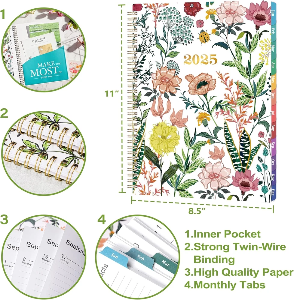 Store New Arrivals Add to Favorite View Feedback Contact Fast deliveries to the customer's home Quality customer service John Make the customers happy! 2025 Planner – Weekly & Monthly Planner 2025, Jan. 2025 – Dec. 2025, 8.5" X 11" with Colorful Tabs, Flexible Cover, Thick Paper, Twin-Wire Binding, Back Pocket, To-Do & Notes Description 🌼 PLANNER 2025 – January 2025 - December 2025, this 2025 weekly & monthly planner with vibrant flowers and glass flexible cover, covers 12 months of monthly and weekly pages for an easy year-round planning. 8.5" x 11" Planner is easy to use and carry away. 🌼 2025 MONTHLY OVERVIEW – Each monthly pages of this 2025 planner contains an overview of the month. To-do and a notes section for jotting down your important items, the previous and next month calendars reference for a simple past reviewing and future planning. 🌼 2025 WEEKLY OVERVIEW - Each weekly spread with current reference has lots of space for jotting down your detailed daily schedule, like appointments, events and deadlines, etc. The holidays marked remind you of important dates, tracking all day with a clear weekly view. 🌼 MORE FEATURES - Strong Metal and Lay-flat Spiral Bound gives this 2025 calendar planner a vibrant look to light up your day. Back Pocket to collect loose items, Premium Thicker Paper to avoid ink bleeding through, making your life/work/study more organized. 🌼 YEARLY PLANNER 2025 – This 2025 planner weekly and monthly includes a list of Yearly Overview, Holidays and Contacts pages for your convenient daily use. More, 12 durable coated monthly tabs / dividers are long lasting and make accessing information a breeze. Product Description 2025 Planner – Weekly & Monthly Planner 2025, JAN 2025 – DEC 2025, 8.5" x 11" with Tabs, Elastic Closure, Back Pocket SPECIFICATION Pages of 2025 planner: 68 Sheets / 136 Pages Size of 2025 planner: 8.5 x11 x 0.39 inches Weight of 2025 planner: 14 ounces Color of 2025 planner: Multicolored mix of flowers, grass and insect, more vibrant and lovely. How Does It Work? Achieve your goals/dream Take good control of your life Better focus, boost productivity, more efficient Fully engage with your thoughts on paper More free time & Great Happier ALL-IN-ONE PLANNER Jan 2025 – Dec 2025 Planner Monthly Pages Each monthly pages contains an overview of the month, To-do and notes section; past and next month referencing for your long-term planning and organizing. Weekly - Each weekly spread has lots of space for detailed daily schedules, holidays marked remind you of important dates. INNER PAGE OVERVIEW MONTHLY PAGES To-Do lists Notes Section 2 Mini calendars Ruled Daily Blocks Marked Holidays WEEKLY PAGES Current Reference Holidays Reminder Ample space for weekly planning THE EXTRA Yearly Overview Page Holidays Page Quick Reference Pag e Contacts Pages Surprise Designs Make Your Life More Convenient and Organized! Twin-Wire Binding Metal and Lay-flat Spiral Binding gives this planner 2025 a vibrant look to light up your day. 12 Colorful Tabs 12 Divider Tabs are long lasting and make accessing information a breeze. Thick Paper Premium paper is thick enough to avoid ink bleeding through. Back Pocket Inner pocket on the back to collect your loose items, like tickets, stamps or stickers, etc. LIGHT UP YOUR LIFE WITH THIS COLORFUL NATURE PLANNER Perfect for Home, school or office Great 2025 planner with weekly and monthly spread to manage your agenda, gratitude journal, calendar, class schedule, meeting appointments, goal planning, personal organizer. 2025 Planner Weekly and Monthly - Write DOWN your goals and GO for it! Sheet Size 8.5 x 8.5 inches Format Notebook, Organizer Paper Size 8.5 x 8.5 inches Item Dimensions L x W x Thickness 11"L x 8"W x 0.39"Th Binding Unknown Binding Material Glass Material Type Glass Style 2025 Weekly & Monthly Planner Target Audience Teacher, Adult, Student Year 2025 Model Year 2025 Product Dimensions 11"L x 8"W x 0.39"Th ABOUT US We offer the best prices around on high quality products. Our E-store includes media such as books, movies, music and games while offering electronics, toys, sporting apparel, clothing, tools, general home, garden items and more. SHIPPING We are always working hard to ensure your package arrives as soon as possible. Please understand that some factors like weather, high postal traffic, and the performance of shipping companies are outside of our control. We offer free shipping to the lower 48 states and ship within 2 business days of payment, usually sooner. We do not accept P.O. Boxes. Please provide a physical address. For shipping outside of the continental USA, we only use eBay's Global Shipping Program. The item is shipped to KY and then sent to the rest of the world. International customers are responsible for all duties and taxes. Continue to 'check out' to calculate costs for shipping the item to your country. Messages regarding eBay's Global Shipping Program MUST be directed at eBay EXCLUSIVELY. RETURNS We offer a 30-Day Return Policy on items in which you are not completely satisfied with. You have the option of a full-refund or an exchange of the item. No returns are available on items shipped outside of the USA PAYMENT We accept PayPal. CONTACT US This page content is yet to come Please ad us to your favorite seller and visit again later Thank You CUSTOMER SATISFACTION We try our very best to make sure every customer is completely satisfied. If there's a problem, message us! We're happy to help. WE ACCEPT