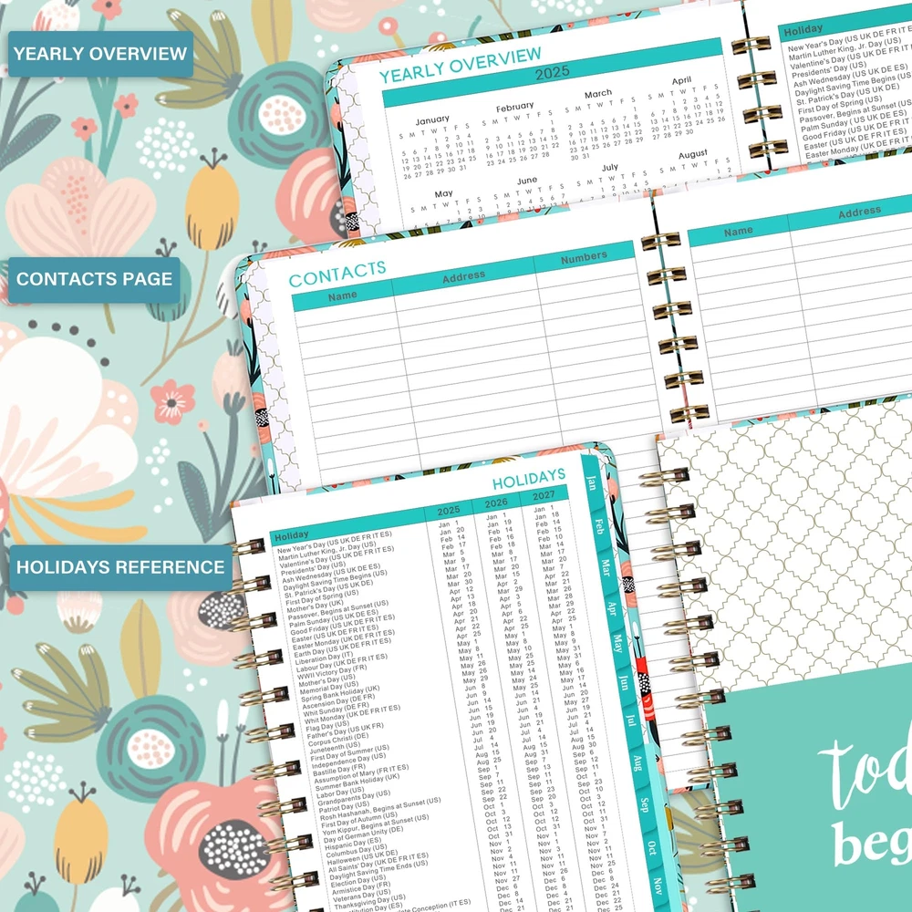 🌿2025 Planner - Calendar Planner 2025 with 12 months from January 2025 to December 2025, 6.4" x 8.5" Weekly & Monthly Planner with Tabs that help you plan your day easier. 🌿Yearly Overview - 2025 planner with monthly overview of 2025 and 2026, also features with quick reference information page, contact page and holidays page. 🌿Monthly Planning – Each monthly page contains a monthly overview with blank daily blocks in 1.25 x 1.1 in, previous and next month reference calendar for long-term planning, and a note section for priorities. 🌿Functional Design - Strong twin-wire binding for the 2025 planner lay-flat 360°+ 12 monthly tabs for quick reference +The back inside pocket for holding some cards + Elastic closure for keeping planner closed. 🌿Featured Organization - Hardcover design + Water resistant cover + Quick Reference Information + Yearly Overview of 2025 & 2026 + Holidays of 2025-2027