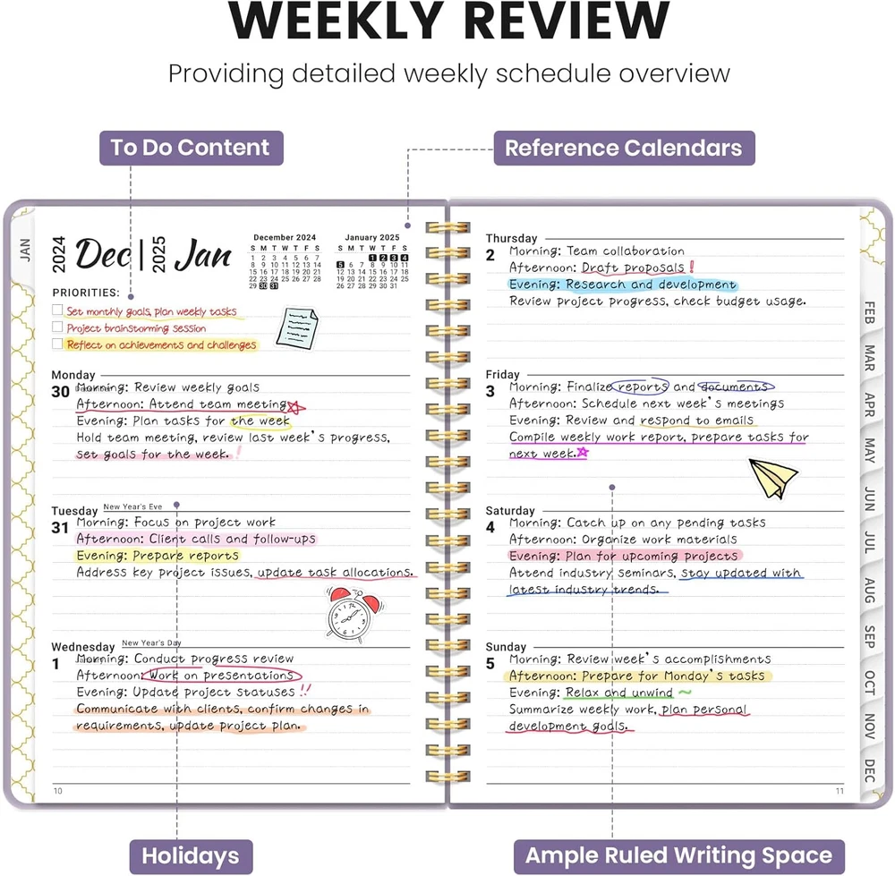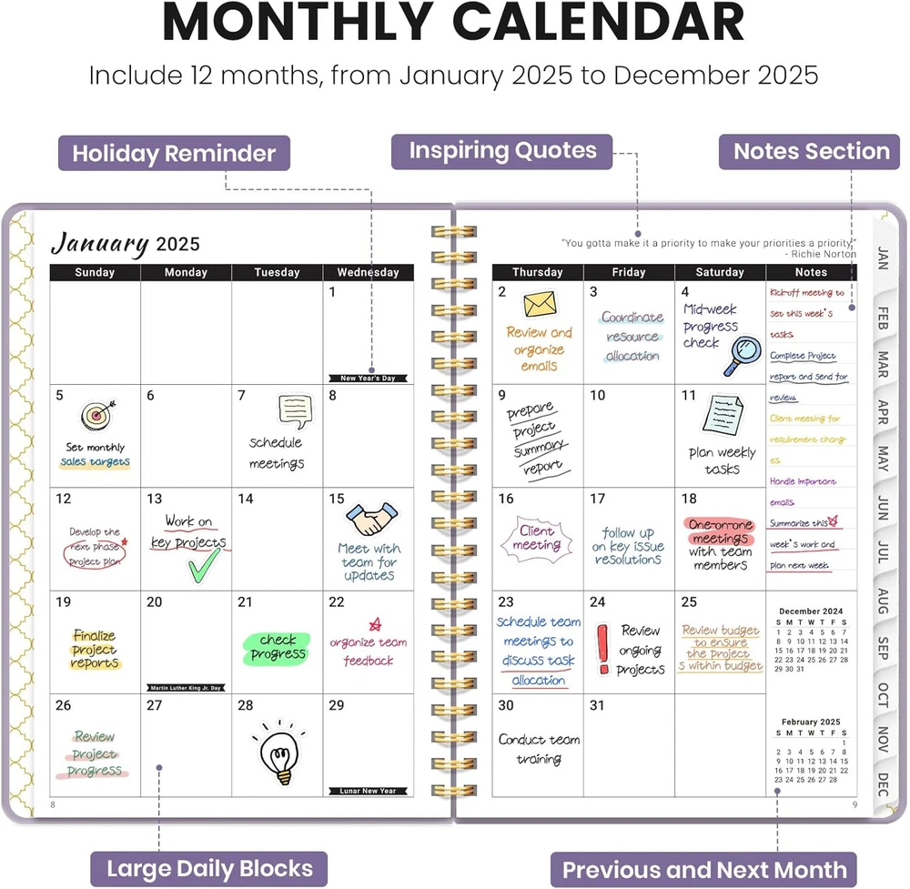 Store New Arrivals Add to Favorite View Feedback Contact Fast deliveries to the customer's home Quality customer service John Make the customers happy! 2025 Planner Weekly and Monthly, January 2025 - December 2025, Hardcover 2025 Calendar Planner Book with Tabs, Inner Pocket, Ideal for Office Home School Supplies - A5 (6.3" X 8.5"), Spiral Bound,Purple Description Plan Your Best Year Yet: Step into 2025 with confidence! Our 2025 planner covers January to December, offering the perfect balance of monthly and weekly pages. At 6.3" x 8.5", it’s the ideal size to keep track of your work goals, appointments, and daily priorities. Plan your year with precision and purpose. Effortless Monthly Planning: Stay organized and ahead of the game with spacious daily blocks and holiday reminders on every monthly spread. With past and future reference calendars, you’ll have everything you need for seamless long-term planning. Master Your Week: Tackle your weekly goals with ease! Each weekly page offers ample lined space for appointments, events, and to-do lists. Checkboxes make it easy to stay on track and celebrate each achievement as you progress through the week. Stylish and Functional Design: The Taja 2025 weekly and monthly planner features thick, high-quality paper and a durable hardcover that suits your lifestyle. With monthly tabs, twin-wire binding, and an elastic band for added convenience, this 2025 planner seamlessly blends practicality with sleek design. Your Path to Productivity: Take control of your time and unlock your full potential! Capture everything from daily tasks and notes to big ideas and important meetings. Ready to turn your dreams into reality? Get your 2025 planner today and make this year your most productive yet! Product Description 1 Monthly Page 2 Weekly Page 3 Notes Page 4 Contacts Page 5 Important Dates Page Taja's Pens & Planners & Project Folders & Sticky Notes Add to Cart Add to Cart Add to Cart Add to Cart Add to Cart Add to Cart Add to Cart Customer Reviews 4.6 out of 5 stars 30 4.9 out of 5 stars 27 4.6 out of 5 stars 86 4.5 out of 5 stars 108 4.6 out of 5 stars 155 4.8 out of 5 stars 6 4.8 out of 5 stars 87 Price $5.99 $ 5 . 99 $8.99 $ 8 . 99 $6.99 $ 6 . 99 $5.99 $ 5 . 99 $7.99 $ 7 . 99 $6.99 $ 6 . 99 $9.99 $ 9 . 99 Size 5.7" x 8.6" A5 or B5 7" x 10" 6.5" x 3.5" 8.3" x11.7" 14.7" x 11.5" 5.3" x 8.2" Feature Hardcover Hard Cover Spiral Binding Staple Bound Spiral Binding Spiral Binding Hardcover Color Multicolor Multicolor Multicolor Forest/Purple/Navy Abstract Floral Festive Pattern Multicolor Quantity 160 Pages / 80 Sheets 240 Pages / 120 Sheets 74 Pages / 37 Sheets 64 Pages / 32 Sheets 18 Months 18 Months 182 Pages / 91 Sheets Usage Scenario Office School & Home Supplies Office & Home & School Office School & Home Supplies Office School & Home Supplies Home & Office Supplies Home & Office Supplies Office School & Home Supplies Sheet Size A5 (6.3" x 8.5") Calendar Type Weekly & Monthly Paper Size A5 (6.3" x 8.5") Color B-Purple Binding Spiral-bound Cover Material Paper Material Paper Material Type Paper Additional Features Hard Cover Pages 120 Pages Target Audience Officer, Teacher, Adult, Student Year 2025 Recommended Uses For Product Planning and organizing activities, tasks, and appointments Model Year 2025 Item Dimensions L x W 8.5"L x 6.3"W ABOUT US We offer the best prices around on high quality products. Our E-store includes media such as books, movies, music and games while offering electronics, toys, sporting apparel, clothing, tools, general home, garden items and more. SHIPPING We are always working hard to ensure your package arrives as soon as possible. Please understand that some factors like weather, high postal traffic, and the performance of shipping companies are outside of our control. We offer free shipping to the lower 48 states and ship within 2 business days of payment, usually sooner. We do not accept P.O. Boxes. Please provide a physical address. For shipping outside of the continental USA, we only use eBay's Global Shipping Program. The item is shipped to KY and then sent to the rest of the world. International customers are responsible for all duties and taxes. Continue to 'check out' to calculate costs for shipping the item to your country. Messages regarding eBay's Global Shipping Program MUST be directed at eBay EXCLUSIVELY. RETURNS We offer a 30-Day Return Policy on items in which you are not completely satisfied with. You have the option of a full-refund or an exchange of the item. No returns are available on items shipped outside of the USA PAYMENT We accept PayPal. CONTACT US This page content is yet to come Please ad us to your favorite seller and visit again later Thank You CUSTOMER SATISFACTION We try our very best to make sure every customer is completely satisfied. If there's a problem, message us! We're happy to help. WE ACCEPT