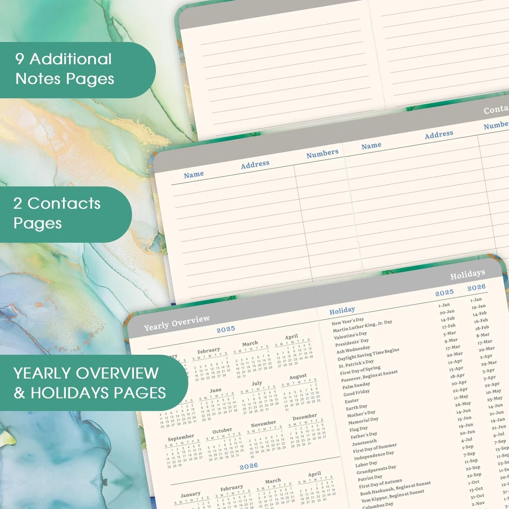 2025 Pocket Planner/Pocket Calendar - Pocket Planner 2025, 2025 Planner Weekly and Monthly from Jan. 2025 - Dec. 2025, 6.3''Γ3.8'', Agenda Planner and Schedule Organizer with Pen Loop, Inner Pocket, 2 Bookmarks, Banded - Green π 2025 POCKET PLANNER - Pocket weekly and monthly planner 2025 which covers 12 months from January 2025 - December 2025. 2025 Pocket Planner provides plenty of room to plan your busy life and stay organized. π CREATIVE & ORGANIZATION - This 2025 pocket planner offers quality, fashion focused design that will look as good as it feels and performs. 2 year reference calendar 2025 for quick date checking, 9 Ruled Note Pages. π POCKET PLANNER - Its small size (6.3" x 3.8") and lightweight(164g) design allows you to carry it , great for your purpose & perfect size for on-the-go. Each monthly spread contains an overview of the month and a notes section, remember upcoming plans at-large with the monthly view! π DESIGN - Thread-bound Lay-flat Design + Sturdy Pen Holder + Clear Cover Pocket to pack business cards and stickers + 2 Ribbon Bookmarks + Printed 12 MONTH TABS. The elastic closure of the 2025 pocket planner keeps it securely closed. The pen loop is always available for your pen and held well. π GOOD CHOICE - Pocket planner 2025 features full monthly view pages for each month. Separate pages with full weekly view for more detailed planning. A special one you can share with your friends and family. Suitable for Christmas gift, New Year gifts or Birthday presents. π 2025 POCKET PLANNER - Pocket weekly and monthly planner 2025 which covers 12 months from January 2025 - December 2025. 2025 Pocket Planner provides plenty of room to plan your busy life and stay organized. π CREATIVE & ORGANIZATION - This 2025 pocket planner offers quality, fashion focused design that will look as good as it feels and performs. 2 year reference calendar 2025 for quick date checking, 9 Ruled Note Pages. π POCKET PLANNER - Its small size (6.3" x 3.8") and lightweight(164g) design allows you to carry it , great for your purpose & perfect size for on-the-go. Each monthly spread contains an overview of the month and a notes section, remember upcoming plans at-large with the monthly view! π DESIGN - Thread-bound Lay-flat Design + Sturdy Pen Holder + Clear Cover Pocket to pack business cards and stickers + 2 Ribbon Bookmarks + Printed 12 MONTH TABS. The elastic closure of the 2025 pocket planner keeps it securely closed. The pen loop is always available for your pen and held well. π GOOD CHOICE - Pocket planner 2025 features full monthly view pages for each month. Separate pages with full weekly view for more detailed planning. A special one you can share with your friends and family. Suitable for Christmas gift, New Year gifts or Birthday presents. Shipping from the USA All of our products are shipped from the USA, ensuring quick delivery to your destination. Payment We offer the following payment methods: PayPal, credit card, bank transfer, and eBay's secure payment system. Free Shipping & Free Returns Shipping within the USA is FREE. Additionally, any return is absolutely free for you. Risk-Free Purchase You have the option to return an item within 30 days without any justification. We cover the return shipping costs! Fast Shipping We ship immediately upon receipt of payment. Generally, the package is delivered within 2-3 days in the USA. If it takes longer, we will contact you. Quality and Costs Made in Europe, USA, China No customs fees or additional charges Total satisfaction guarantee Invoice with declared VAT available upon request in .pdf format Feedback Your feedback is very important to us. After you pay for your purchase, you will automatically receive positive feedback from us.