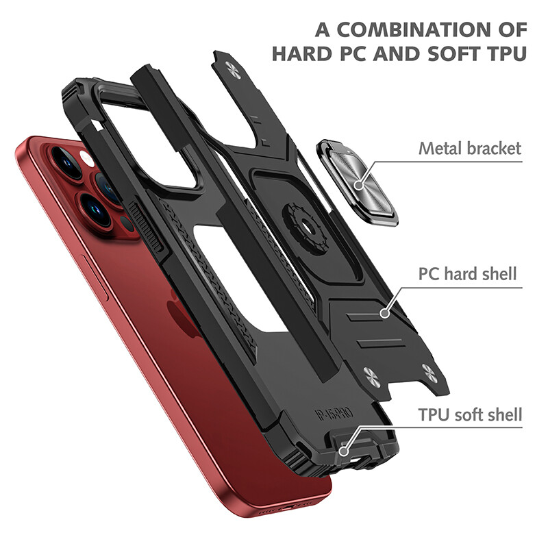 3 IN 1 Heavy Duty Shockproof Case Cover With Ring Stand for Apple iPhone 16/16Plus/16 Pro/16Pro Max