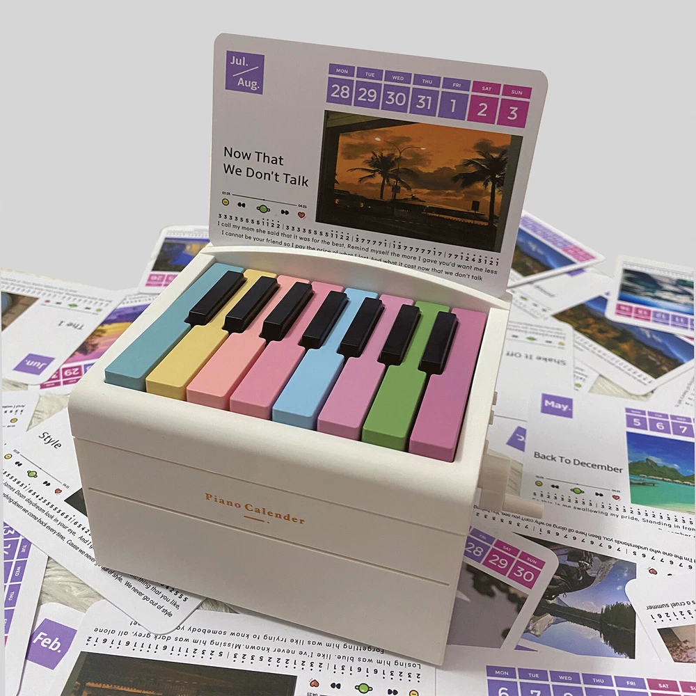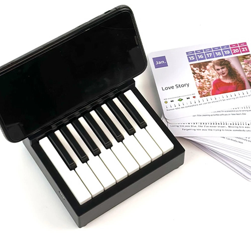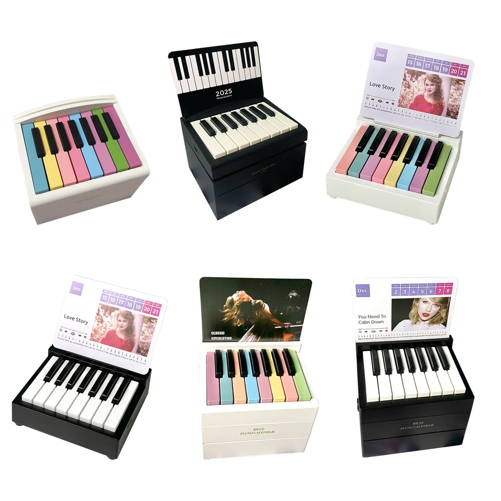 Features 1. Playable Piano Calendar: Enjoy 52 song clips and high-definition printed photos, perfect gift for fans, piano lovers and anyone who loves music. 2. Piano desk calendar, 27 double-sided, calendar card size 10.4x7.5cm (PVC waterproof, anti-folding), piano size 11x9x9cm, with USB charging cable. 3. Mini Piano: This mini piano calendar is small and portable, perfect for parties, home displays or as a fun photo prop. 4. Durable material: Made of tough ABS and smooth PVC, this calendar is durable, easy to clean and designed for long-term use. 5. Versatile: Can be used as a decoration, practice tool or to stimulate interest in music. Perfect for adding an artistic touch to your room. Specification Style: High style, short style, gift card piano 52 song sheet music Material: Plastic Color: Black, White Size: 11 x 9 x 9 cm, 11 x 9 x 9 cm, 11 x 9 x 3.9 cm, 11 x 9 x 3.9 cm, 11 x 9 x 9 cm, 11 x 9 x 9 cm, Weight: 890 g, 890 g, 220 g, 220 g, 890 g, 890 g, Package Include: 1x Piano+playable+new version (card sheet included) or 1x Short piano table calendar (2025 including cards) or 1x High end piano table calendar(2025 including cards)