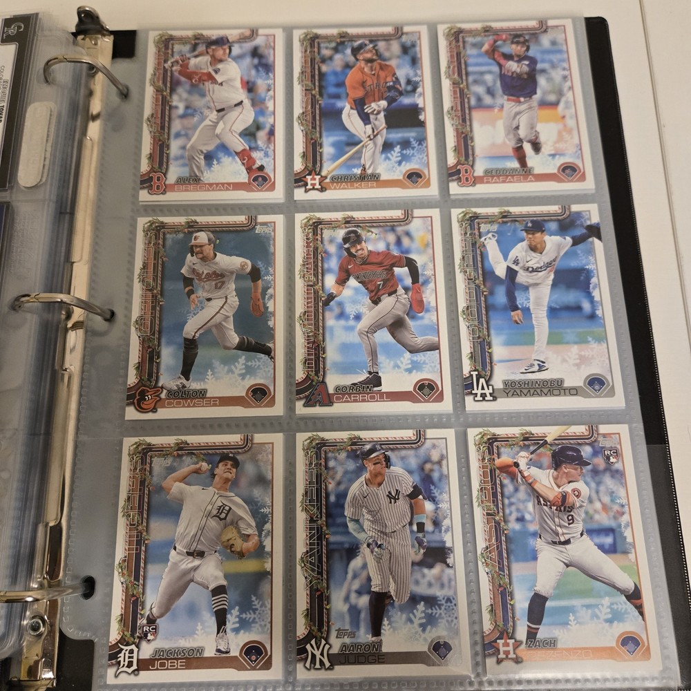 Complete 2025 topps Holiday baseball ⚾️ set from H1 to H200 total of 200 cards including both Ohtani cards H1 and H200. Will come sleeved in the sheet protector including binder. All cards are in Mint to Near mint condition🔥