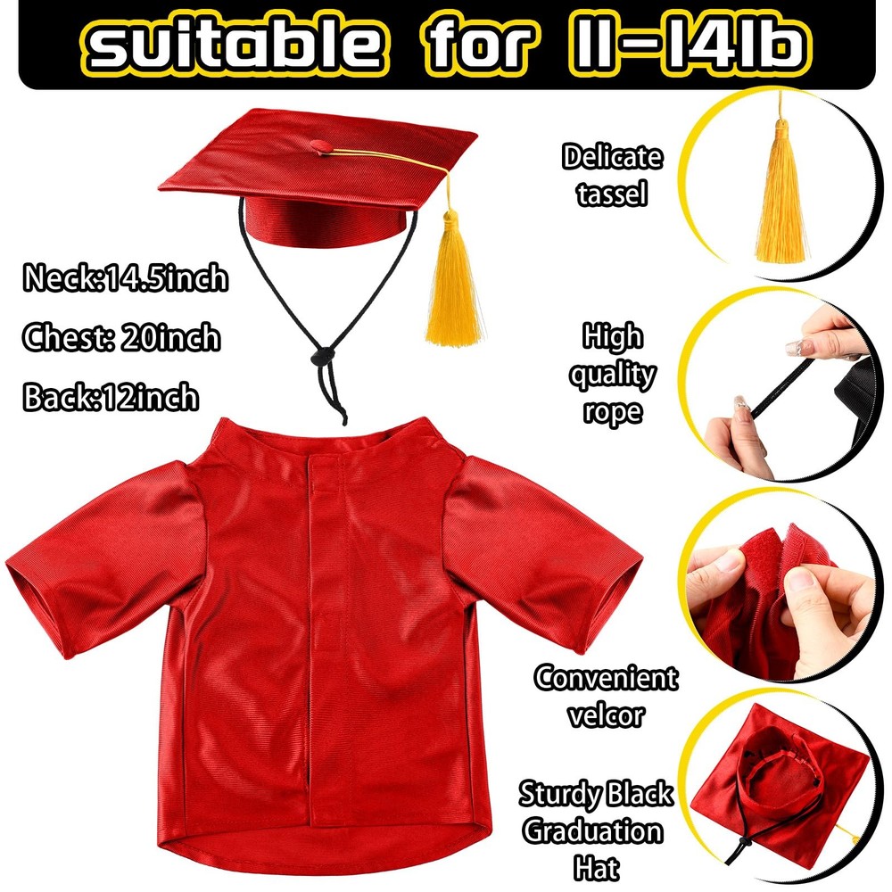 Features: The graduation dog clothes can be paired beautifully with the graduation outfit or any other suits and tuxedo type outfits. The accessories will make your pet stand out and garner all the attention that they deserve. Decorated your cat, dog, or bear doll with these pet graduation outfits, and they will look impressive and stylish, good for taking lots of attractive photos and enjoying a fun dressing period. Specifications: Material: polyester Color: marnoon Size: as shown in the picture Package includes: 1 x Dog graduation cap and gown outfit Notes: Manual measurement, please allow slight errors on size. The color may exist a slight difference due to different screen displays. Before purchase, confirm whether the product size is suitable for your pet, and observe the pet's reaction when using. Please remove the product in time if there is any discomfort. Wearing Comfort: our graduation cap and gown 2025 are designed with your pet's comfort in mind; Crafted from polyester materials, they are safe and long lasting; They're even machine washable and hand wash friendly, this ensures an easy wearing and removal process Ideal Sizing: to ensure a snug feeling for your pet, we've got specific sizes: neck size about 14.57 inches/ 37 cm, chest size: about 20.08 inches/ 51 cm, back size about 12.2 inches/ 31 cm; It's suggested that the pet's sizes need to be measured before selecting this dog graduation hats accessory costume Meaningful Photography Props: make unforgettable memories this graduation season; Dress your pets in these charming puppy graduation costumes, let them be a part of the celebration; Click adorable photographs that'll make your heart warm every time you revisit them Classic Graduation Design: our kit includes a traditional dog graduation cap and gown, 1 robe with 1 classic square hat, simple, elegant, and ideal for any graduation ceremony; So, let your pet strut around with pride and maybe steal the show Wide Usage: our pet graduation cap and gown are not limited to graduation ceremonies only; These are ideal for about 11-14Lb pets; Use it as a 2025 graduation accessory for your cat, dog, or even your doll bear and more; Our outfits are designed to be versatile and classy