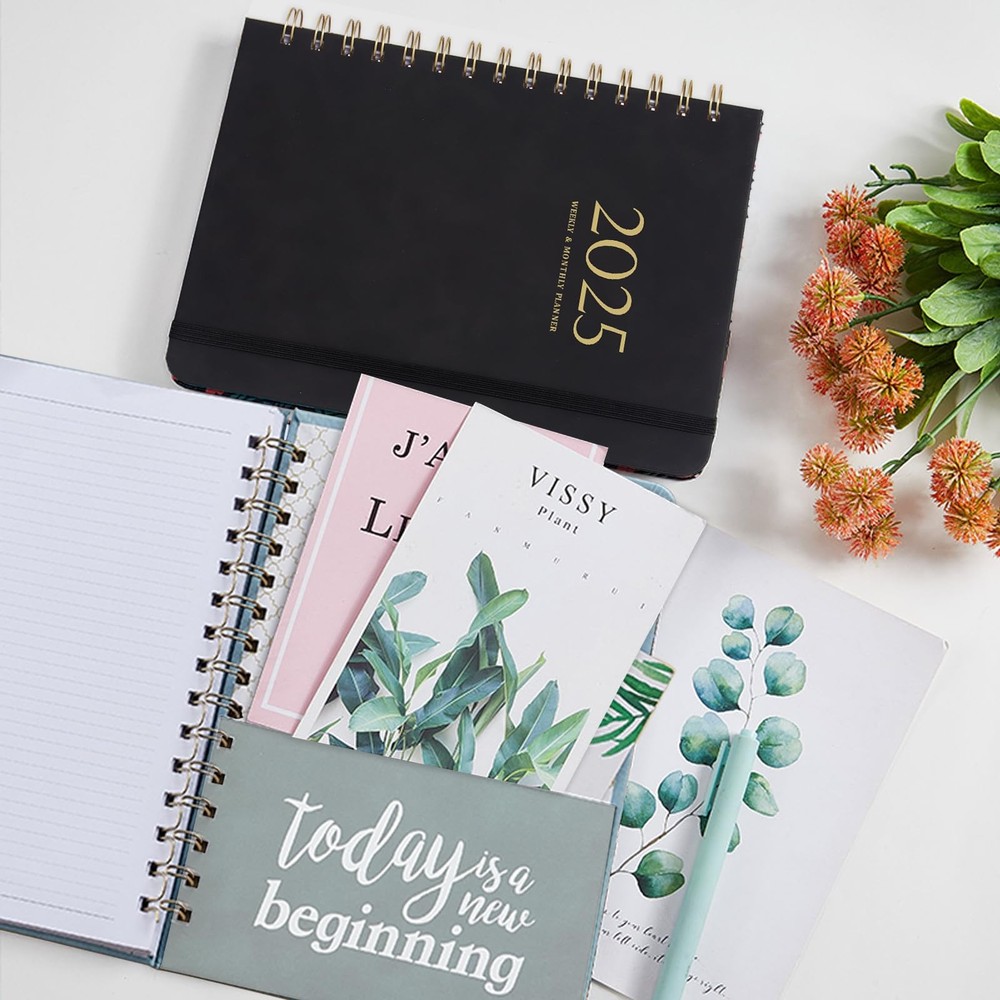 Stay organized and on top of your schedule with this 2025 Planner Weekly and Monthly Academic Planner. Designed with a faux leather cover and premium pages, this planner offers a sleek and professional look. Measuring 6.4" x 8.5", it's the perfect size to carry with you wherever you go. The twin-wire binding and tabbed months make it easy to flip between sections, while the elastic closure keeps everything secure. With daily calendar pages from January to December 2025, you can plan your entire year in detail. The included pocket provides a convenient place to store important documents or notes. Whether you're a student, professional, or just looking to stay organized, this yearly agenda is an essential tool for managing your busy life. 2025 Planner Overview: This 2025 planner weekly and monthly is an ideal partner for keeping organised, from Jan 2025 to Dec 2025, 100 gsm premium thick paper, providing a smooth writing experience and preventing ink bleed-through. Size 6.4" x 8.5", easy to carry in a handbag or backpack for on-the-go planning. Soft and smooth skin feeling leather surface makes this 2025 monthly weekly planner notebook more distinctive and premium texture. Perfect for work, school, home Professional Content Design:This 2025 calendar monthly planner is so well organized, its layout corresponds perfectly to all your daily needs, it comes with Quick Reference Information, Calendar 2025 2026 Yearly Overview, UK/US/CA Holidays Reminder, the whole Month Overview, To-Do lists and Notes. With ample space for notes, appointments, and detailed daily planning, this calendar book is a comprehensive planning tool for busy individuals More Practical Functionalities:Monthly Tabs / Inner Pocket / Spiral Bound / Elastic Closure, enhancing usability and organization. High quality and well-made, secure and durable. The spiral planner 2025 perfect as a life day planner, academic planner, school planner 2025, appointment planner, work planner , happy planner 2025, student/teacher planner 2025 or Personal Organiser Convenient Monthly View: Each monthly spread of the 2025 monthly planner contains an overview of the month and a to do list section, offering a comprehensive snapshot of the schedule. Easily plan and prioritize tasks, deadlines, and events with just a glance, Stay organized and inspired throughout Efficient Weekly View:The week is shown using two pages, with each day having enough room to put appointment times, addresses, to-do lists. Note Section for to schedule your week ahead, jot down summary and review of the week
