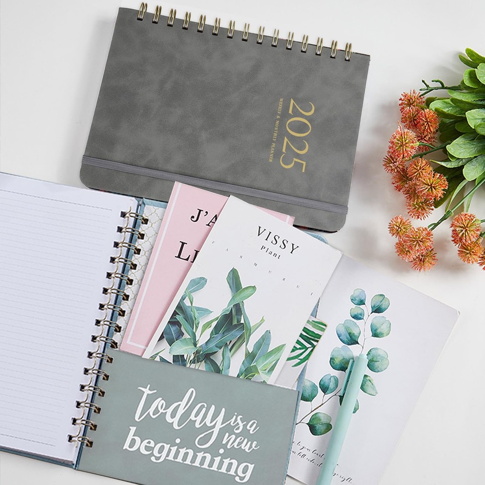 1. This planner is a game-changer for staying organized in 2025! The perfect compact size fits easily in bags while offering plenty of writing space. I love the premium feel of the faux leather cover and the smooth, thick pages that prevent ink bleed. The twin-wire binding lets it lay flat, and the monthly tabs make navigation effortless. The elastic closure keeps everything secure, and bonus features like pockets and bookmarks add extra convenience. Whether for work, school, or personal goals, this planner helps me track everything clearly. The clean layout with weekly and monthly sections makes planning simple and enjoyable. Definitely worth it for an ultra-productive year!