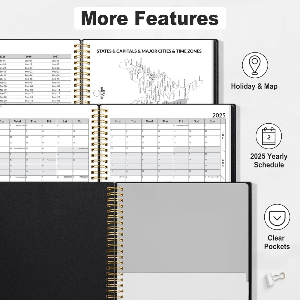 Store New Arrivals Add to Favorite View Feedback Contact Fast deliveries to the customer's home Quality customer service John Make the customers happy! 2025 Weekly and Monthly Planner - from January 2025 - December 2025, 8.5"X11" Daily Agenda Planner with Monthly Tab, Flexible Cover, Note Pages, Pockets, Bookmark, Spiral Binding, Black Description 2025 Professional Planner - Cover from January 2025 to December 2025, Features 12 months of monthly and weekly pages, and also inclueds 3 extra monthly pages for October to December 2024 and 12-monthly tabs, with Lay-flat capability for all your planning and scheduling needs, and measures 8.5" x 11" Monthly View - Each date box provides ample writing space and includes the previous and next month's reference, ruled daily blocks with popular holidays, and Julian Dates for easy long-term project and appointment scheduling. Weekly View - 2-page weekly spread from Monday to Sunday provides generous lined writing space along with popular holidays and 3-month reference previews, allowing for easy appointment, note, and daily task management. Fight Ink-bleeding Thick Paper - Made with premium heavyweight paper to prevent ink bleed. The 8.5x11" size offers enough space for organization and scheduling. Sturdy notebooks withstand frequent transfers in and out of backpacks, briefcases, and cars. Additional Features - The weekly planner includes 2025-2027 calendars, year schedule for full year 2025, holiday lists, contact pages, notes pages, important dates, and US time zone map. Rainbow monthly tabs simplify navigation and add a stylish, playful element to the planner's aesthetic. Product Description 1 Family&School Organizer 2 Perfect Work Planner 3 Easy to Carry SUNEE‘s Selection For You Add to Cart Add to Cart Add to Cart Add to Cart Add to Cart Add to Cart Customer Reviews 4.6 out of 5 stars 1,252 4.6 out of 5 stars 1,252 4.6 out of 5 stars 1,252 4.6 out of 5 stars 1,252 4.6 out of 5 stars 1,252 4.6 out of 5 stars 1,252 Price $12.99 $ 12 . 99 $16.99 $ 16 . 99 $16.99 $ 16 . 99 $15.99 $ 15 . 99 $14.99 $ 14 . 99 $16.99 $ 16 . 99 Time JAN 2025 - DEC 2025 JAN 2025 - DEC 2025 JAN 2025 - DEC 2025 JAN 2025 - DEC 2025 JAN 2025 - DEC 2025 JAN 2025 - DEC 2025 Size 8.5"x11" 8.5"x11" 8.5"x11" 8.5"x11" 8.5"x11" 8.5"x11" Color Black Eucalyptus Marble Sage Green Greenery Purple Monthly Tab ✔ ✔ ✔ ✔ ✔ ✔ Bookmark ✔ ✔ ✔ ✔ ✔ ✔ Sheet Size A4 Calendar Type Gregorian Format Notebook, Organizer Color Black Binding Calendar Material Paper Material Type Paper Manufacturer Part Number S-W2718 Package Dimensions 11.06 x 8.82 x 0.75 inches Item Weight 1.23 pounds Year 2024 Special Feature Rainbow Monthly Tabs Cover Material Cardstock or Cardboard or Paper Size 8.5"x11" ABOUT US We offer the best prices around on high quality products. Our E-store includes media such as books, movies, music and games while offering electronics, toys, sporting apparel, clothing, tools, general home, garden items and more. SHIPPING We are always working hard to ensure your package arrives as soon as possible. Please understand that some factors like weather, high postal traffic, and the performance of shipping companies are outside of our control. We offer free shipping to the lower 48 states and ship within 2 business days of payment, usually sooner. We do not accept P.O. Boxes. Please provide a physical address. For shipping outside of the continental USA, we only use eBay's Global Shipping Program. The item is shipped to KY and then sent to the rest of the world. International customers are responsible for all duties and taxes. Continue to 'check out' to calculate costs for shipping the item to your country. Messages regarding eBay's Global Shipping Program MUST be directed at eBay EXCLUSIVELY. RETURNS We offer a 30-Day Return Policy on items in which you are not completely satisfied with. You have the option of a full-refund or an exchange of the item. No returns are available on items shipped outside of the USA PAYMENT We accept PayPal. CONTACT US This page content is yet to come Please ad us to your favorite seller and visit again later Thank You CUSTOMER SATISFACTION We try our very best to make sure every customer is completely satisfied. If there's a problem, message us! We're happy to help. WE ACCEPT