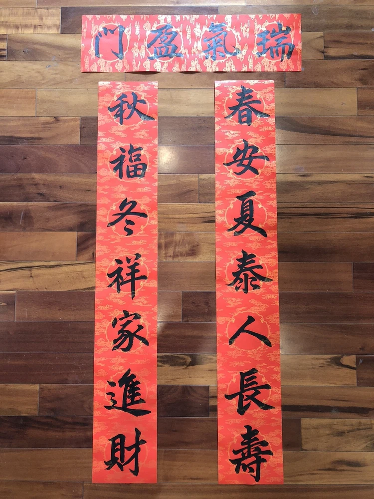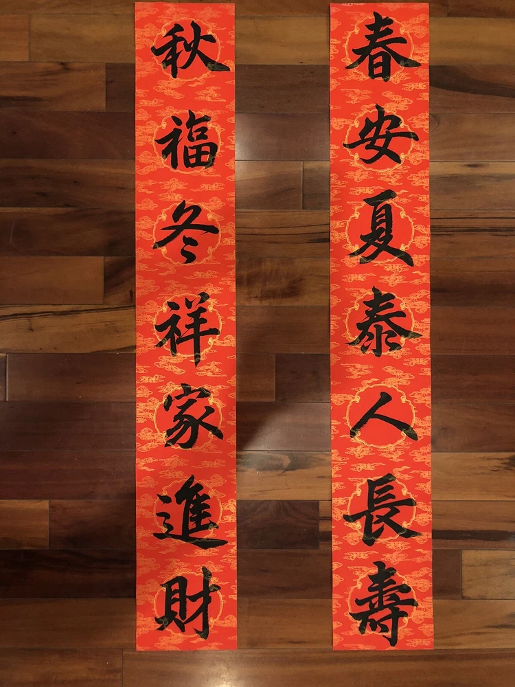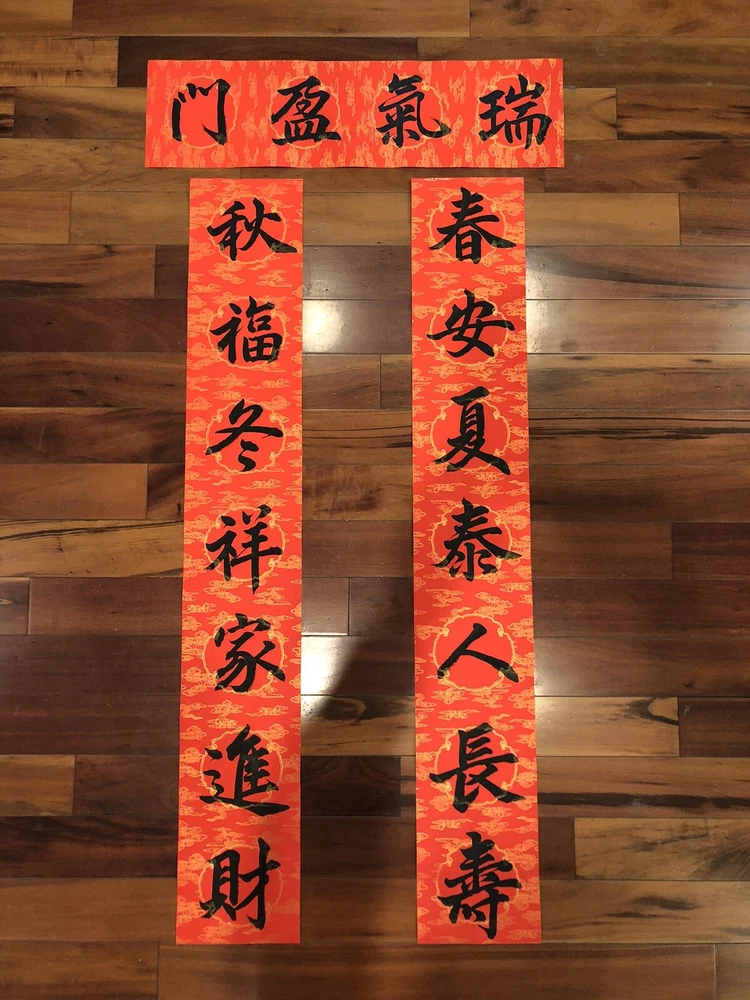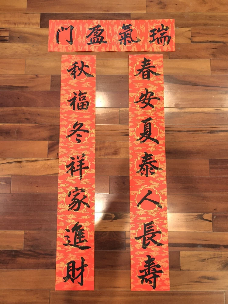 2025 Year of Snake Handwritten Set Of 3 Couplets Wall Decorate蛇年3件手寫春聯. 春10春安夏泰. Hand written Not Printed. Condition is New. Greetings for Chinese New Year. Wall and door Decorations. Shipped with USPS Ground Advantage. What is written: Right 上聯:春安夏泰人長壽 (Living peacefully in spring and summer and with long age) Left 下聯:秋福冬祥家進財 (living joyfully in fall and winter and family gets wealth) Up 橫聯: 瑞氣盈門 (family is full of good luck) Calligraphy style: freehand scripts 行書 Materials: black ink on red paper with gold patterns printed Size of paper: Long paper 43”x 6.7” Short paper 24.9” c 6.7” Year of production: 2024 Others: 1. This is an unframed work which is designed for Chinese New Year celebration. This is a wall and door decoration. 2. The couplets will be rolled up and wrapped with bubble sheets. No folding. 3. You will receive 3 pieces of red paper with Chinese calligraphy written on it. 4. Postage is automatically estimated by eBay. Final sales no return no refund. Thanks for watching! *Introduction to the calligrapher: Hello, my name is Anita Hsin Hao Wang. I am from Taipei, Taiwan. I currently live in Thousand Oaks, California, with my family. I nickname myself Houde for the convenience of writing. I started learning calligraphy when I was 8 years old. I practiced Ouyang Xun's regular script and official script with great success. I have participated in county and local calligraphy competitions and won numerous awards since the fourth grade of elementary school. After that, I practiced running script and Wei Bei by myself, so I have some experience in regular script, Official script and Wei Bei. Now doing Chinese calligraphy every day has become my best way to relieve stress besides taking care of my family