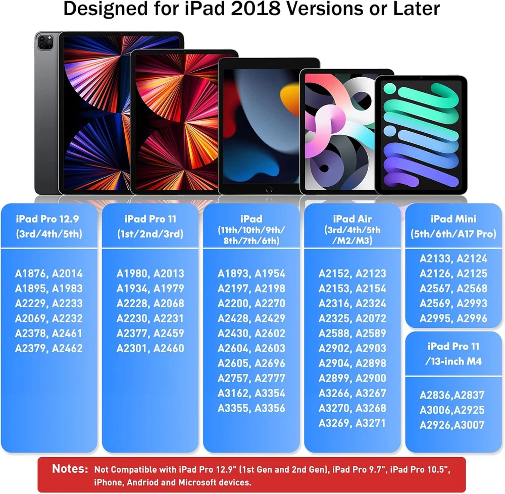 Store New Arrivals Add to Favorite View Feedback Contact Fast deliveries to the customer's home Quality customer service John Make the customers happy! Stylus Pen for Ipad 2025-2018 with Faster Charge,Tilt Sensor Pencil Compatible with Ipad 10/9/8/7/6,11Th A16,Air 11/13 M2/M3,Pro 11/13 M4,Pro 12.9",Air 5/4/3,Mini 7/6/5 Description Designed for iPad 2025-2018: Compatible with iPad 2018 and later versions. Only supports for iPad Pro 11/13-Inch M4,iPad Air 11/13-Inch M2/M3,iPad 11th (A16),iPad 10th/9th/8th/7th/6th gen, iPad Pro 12.9" (3rd/4th/5th/6th gen), iPad Pro 11", iPad Air 3rd/4th/5th gen, iPad mini 5th/6th/A17 Pro. Note: Not available for Android tablets, mobile phones, iPhone and Microsoft devices Tilt Sensor & Perfect Precision: Just tilt the stylus at different angles to draw the desired thickness. Precisely controlled writing with no lag. It has higher sensitivity and more comfortable feeling. Great for take notes, sketch, mark and get more work done on iPad-perfect for iPad user.NO Pressure Sensitivity LED Indicator & Fast Charging: 3 levels of LED indicators can remind you to charge the stylus in time. With the USB-C charging port, it can work continuously for 8 hours. 90-day standby time and automatic "sleep mode" after 5 minutes of inactivity help conserve battery power. Simply tap the top of the stylus to power it on and off Palm Rejection: Place your palm on the screen randomly without leaving wrong marks, just as natural as writing with a real pencil.No need to raise your hand to write, even if you work for a long time, your hands will not get tired, providing you with a more comfortable and convenient handwriting experience Magnetic Attraction: Easier to use and organise. It is more convenient to store and carry on business trips, meetings, tourism and other occasions. Magnetic Compatible Devices: iPad Air 4/Air 5th generation, iPad Pro 11 inch, iPad Pro 12.9 (3rd/4th/5th/6th), iPad mini 6th. Does not support wireless charging Product Description NOT WORK WITH: iPad 2010(1st gen) A1219 / A1337 iPad 2011(2nd gen)A1395 / A1396 / A1397 iPad 2012(3th gen&4th gen) A1416/ A1430 / A1403 / A1458 / A1459 / A1460 iPad 5th gen(2017) A1822 / A1823 iPad Pro 9.7 inch A1673 / A1674 / A1675 iPad Pro 10.5 inch A1701 / A1709 / A1852 iPad Pro 12.9 inch(1st gen&2nd gen)A1584 / A1652 / A1670 / A1671 / A1821 iPad Air(1st gen & 2nd gen)A1474 / A1475 / A1476 / A1566/ A1567 iPad mini(1st/2nd/3th/4th gen) A1432 /A1454 / A1455 / A1489 / A1490 / A1491 / A1599 / A1600 / A1538 / A1550 Android tablets, mobile phones, iPhone and Microsoft devices Attention tips in use: The IOS system must be updated to iOs 12.2 or above. Please confirm the models is 2018-2024 iPad or iPad Pro. Please ensure it has enough power before use. Cannot be used for switching apps. If the stylus pencil can’t work, please reset your iPad or iPad Pro as follows: Settings--->Bluetooth--->Forget the Apple pencil. Settings--->Apple Pencil--->Turn off the Apple pencil. Settings---> Notes--->Turn off "Only Draw with Apple Pencil". Item model number 716-WH Batteries Required? Yes Are Batteries Included Yes Color white Material Aluminum Country of Origin China Compatible Devices function(f) {var _np=(window.P._namespace("DetailPageProductOverviewTemplatesJava"));if(_np.guardFatal){_np.guardFatal(f)(_np);}else{f(_np);}}(function(P) { P.when('A').execute(function(A){ A.on('a:truncate:po-attribute-truncate-5:updated', function(data) { var isTruncated = !data.truncateInstance.getIfTextFits(); var seeMoreElement = document.getElementById('po-attribute-see-more-id-5'); if(seeMoreElement) { seeMoreElement.style.display = isTruncated ? '' : 'none'; } }) }); })); Compatible with iPad Pro 11"/13"(M4), iPad Air 11"/13"(M2/M3), iPad 11th(A16), iPad 10th/9th/8th/7th/6th gen, iPad mini A17 Pro/6th/5th, iPad Air 5th/4th/3rd gen,iPad Pro 12.9" (6th/5th/4th/3rd gen), iPad Pro 11"(4th/3rd/2nd/1st gen) See more Package Dimensions 7.48 x 2.44 x 0.75 inches Item Weight 2.08 ounces Batteries 1 Lithium Ion batteries required. (included) Battery Average Life Standby 90 days Charging Time 30 minutes Battery Description Lithium-Ion Number of Batteries 1 Lithium Ion batteries required. (included) ABOUT US We offer the best prices around on high quality products. Our E-store includes media such as books, movies, music and games while offering electronics, toys, sporting apparel, clothing, tools, general home, garden items and more. SHIPPING We are always working hard to ensure your package arrives as soon as possible. Please understand that some factors like weather, high postal traffic, and the performance of shipping companies are outside of our control. We offer free shipping to the lower 48 states and ship within 2 business days of payment, usually sooner. We do not accept P.O. Boxes. Please provide a physical address. For shipping outside of the continental USA, we only use eBay's Global Shipping Program. The item is shipped to KY and then sent to the rest of the world. International customers are responsible for all duties and taxes. Continue to 'check out' to calculate costs for shipping the item to your country. Messages regarding eBay's Global Shipping Program MUST be directed at eBay EXCLUSIVELY. RETURNS We offer a 30-Day Return Policy on items in which you are not completely satisfied with. You have the option of a full-refund or an exchange of the item. No returns are available on items shipped outside of the USA PAYMENT We accept PayPal. CONTACT US This page content is yet to come Please ad us to your favorite seller and visit again later Thank You CUSTOMER SATISFACTION We try our very best to make sure every customer is completely satisfied. If there's a problem, message us! We're happy to help. WE ACCEPT