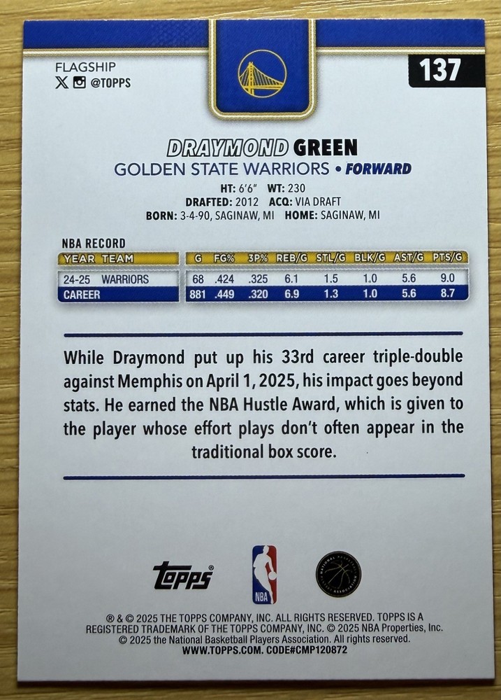 2025-26 Topps Basketball #137 Draymond Green Rainbow Foil
