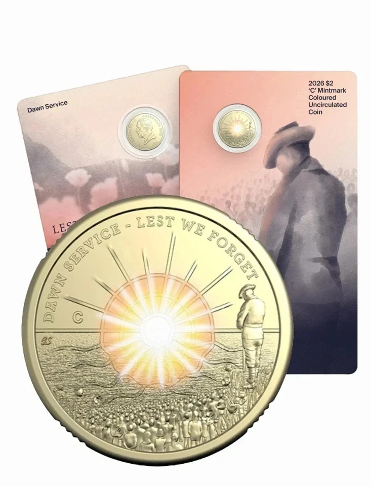 2026 Australia Dawn Service “Lest We Forget” ‘C’ Mintmark Coloured $2 UNC Coin in Card — Box of 20 A solemn Royal Australian Mint tribute to the Dawn Service , featuring selective colour print and the words “Lest We Forget” . This listing is for a Box of 20 official coin-in-card packs (20 coins total), each coin encapsulated and kept in original packaging. Highlights Year: 2026 Country: Australia Denomination: $2 Mint: Royal Australian Mint Mintmark: ‘C’ (Canberra) Theme: Dawn Service – Lest We Forget Finish: Uncirculated (UNC) Feature: Coloured design Metal: Aluminium bronze (AlBr) Contents: Box of 20 coin-in-card packs ( 20 coins total ) Packaging: Coin in capsule in presentation card (original packaging) Product limit / Mintage: 100,000 . Condition: Uncirculated (UNC); stored in original packaging. Peppermint_coin Feel free to click the store name above to browse our full range. We regularly add new stock. Important - No change-of-mind returns. - Dispatch within 3 business days (excluding weekends and public holidays). - All items are uncirculated and brand new (unused) , unless stated otherwise. - Representative photos apply unless a unique certificate/serial number is shown or stated. Photos and item selection - Unless a unique certificate/serial number is shown in the photos and/or stated in the title/item specifics, the listing photos are representative only . - For representative-photo listings, you may receive a different item to the one pictured. You will receive 1 item randomly selected from our current stock of the same type/year/variant, in comparable condition. - Where a unique certificate/serial number is shown or stated, you will receive the exact item pictured and the certificate/serial number will match. - Minor variations may occur (e.g., toning, small marks, packaging/card position, batch differences). - Some listings may show quantity 1 for convenience. If you need multiple items or a bulk price, please contact us before purchase. - If you require photos of the exact piece before purchase, or you need a specific number, please message us before buying and we will assist where possible. Combined postage - We are happy to offer combined postage when you purchase multiple items. - Postage is based on total weight and parcel/letter size after we pack all items together safely. - For any order with 2 or more PNCs or coin bags , if you selected Untracked Letter , we will upgrade to Tracked Letter or parcel for safer delivery, based on the weight and postage fee paid for the items. - At checkout, the postage shown will be charged at the highest applicable postage level among the items. - After we calculate the final combined postage, any excess postage paid will be refunded (domestic and international). - If you would like an exact combined postage quote before paying, feel free to message us with the item numbers. Condition - All items are uncirculated and brand new (unused) , unless stated otherwise in the listing. - Condition is as shown in the photos and/or item specifics. - Please note: minor marks can exist even in original Mint packaging due to minting/packing/storage (e.g., light contact marks, tiny edge nicks, small spots, card scuffs). - " Uncirculated " means the coin has not been used in circulation, not that it is flawless. - " Brand new " means unused and supplied as issued (where applicable, in original packaging). It does not guarantee a perfect, blemish-free item. Dispatch and tracking updates - Dispatch within 3 business days (excluding weekends and public holidays). - Domestic: tracking is usually uploaded once the parcel is packed. Tracking activity will update after the carrier scan. - International: the order may be marked as sent once packed. Tracking is uploaded after the parcel is lodged at the post office, then updates after carrier scan. Returns and issues - No change-of-mind returns. - If the item arrives damaged or there is a genuine "not as described" issue, please contact us with clear photos and we will work with you to resolve it. Authenticity, packaging and international buyers - All items are genuine/authentic. Original Mint packaging applies where stated. - Packed securely with protective materials to minimize movement during transit. - Import duties/taxes (if any) are the buyer's responsibility.
