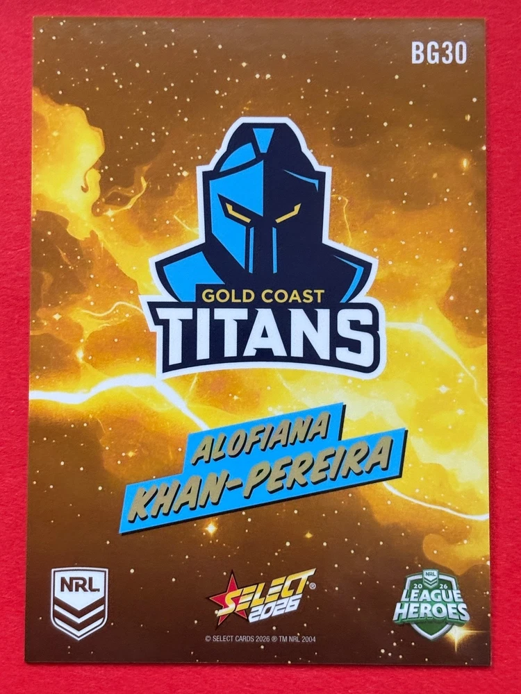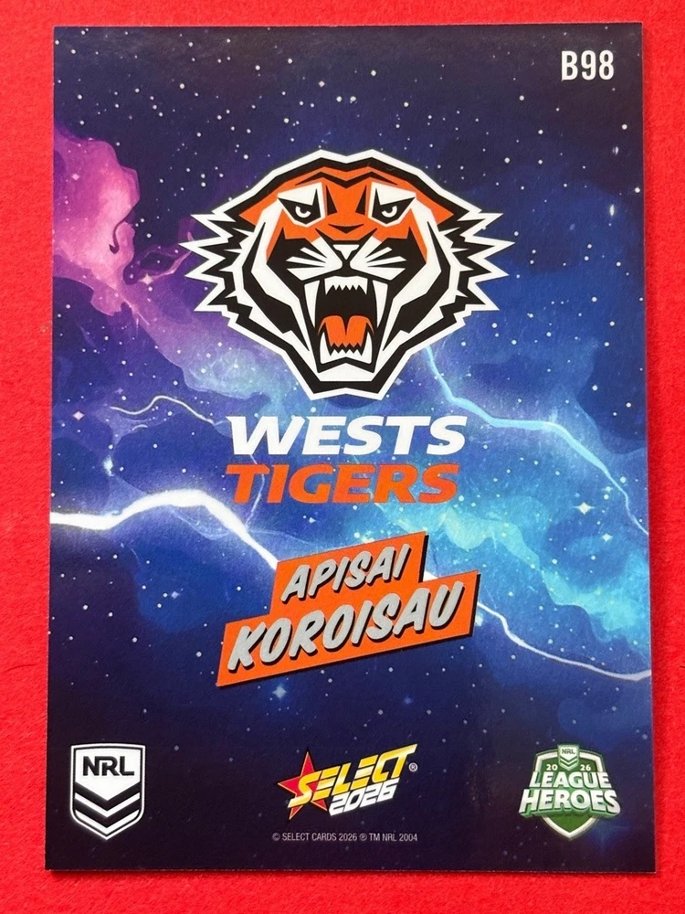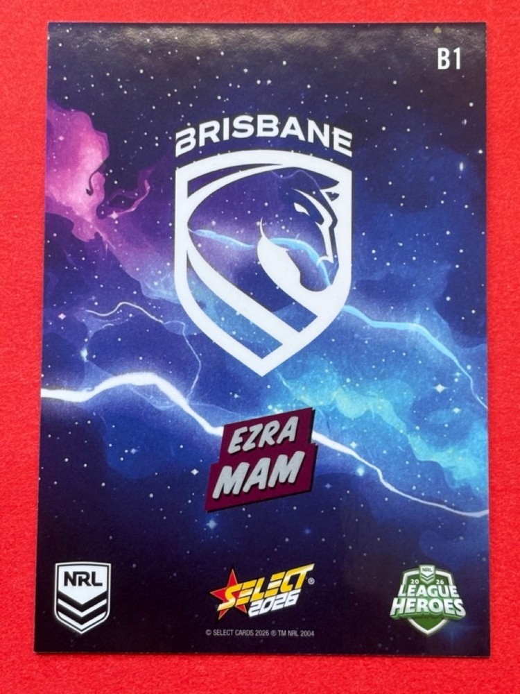 Dive into the excitement of the 2026 NRL season with our League Heroes Bang card, featuring the powerhouse of the Brisbane Broncos. Whether you're a die-hard fan or a dedicated collector, this card is a must-have addition to your collection. Proudly showcasing the iconic team, this trading card is a tribute to the NRL's elite rugby league athletes. Crafted by Select, a trusted manufacturer in the sporting memorabilia realm, this card comes from the 2026 NRL League Heroes set. It's a unique piece that celebrates the sport's top talent and their contribution to the Heros league. With the card presented in English and adhering to the standard card size, it's perfect for display or safekeeping.