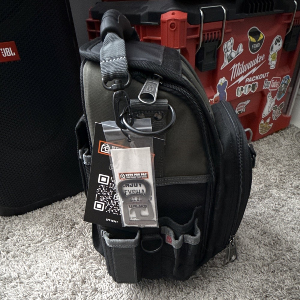 The 2026 VETO PRO PAC Tech Pac CB-LD Tool Bag in black and gray is a medium-sized tool backpack designed by VETO PRO PAC. Made of durable nylon material, this tool bag features multiple compartments for organized storage of tools and accessories. It is portable with a padded handle for easy carrying, making it ideal for professionals and DIY enthusiasts alike. With its sleek design and functional features, the VETO PRO PAC Tech Pac CB-LD Tool Bag is a convenient and practical option for carrying and storing tools in various settings. This item has not seen a job site or even had the chance to have a tool inside of it. This was a spring promo that came along with one of my purchases earlier this month.