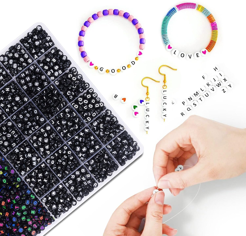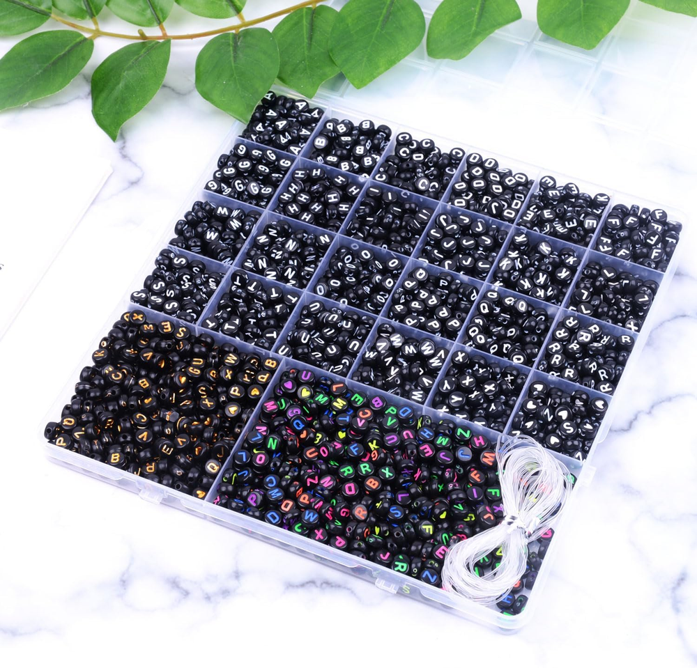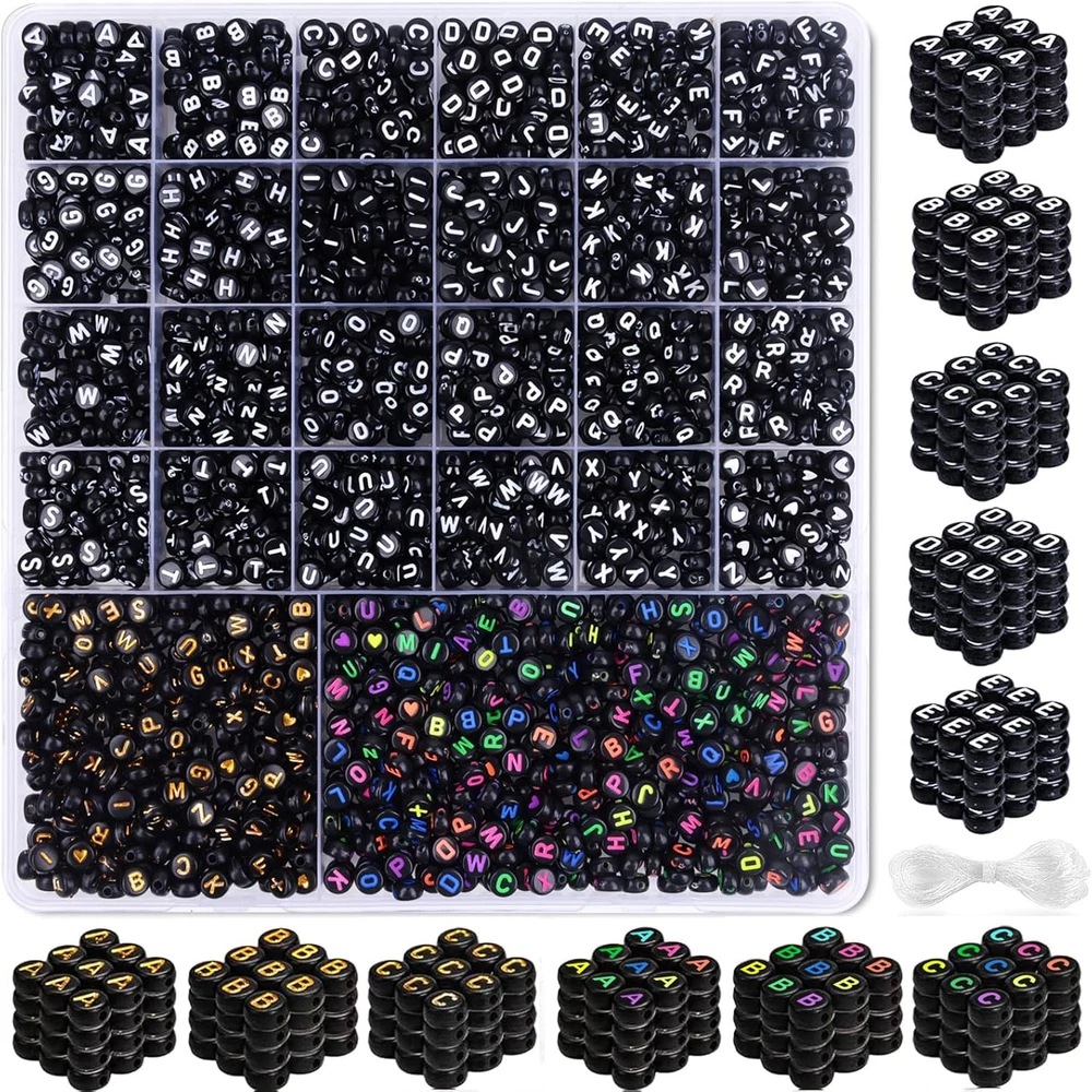 【Quantity and Style】A total of 2080 letter beads. 3 styles of black letter beads,5 meter elastic string is also contained. All of these helping you DIY a unique jewelry. 【Meaningful & Handmade Gifts】Making someone a letter friendship bracelet is a great way to show them how much you care for them. Pick the word you want to express from the A to Z letter beads and give your christmas thanksgiving gift exclusive meaning. 【Beads Methodically Sorted】The cute stuff letter beads have been carefully classified and stored in the containers, you can effortlessly complete any intricate beading. Say goodbye to wasting valuable time search alphabet beads. 【Clear Pattern】Each delicate pattern letter beads is made of acrylic material and advanced paint spray & grinding technology results in smooth beads. It can perfectly combine with clay beads, pony beads and colorful beads, widely used in jewelry making, name bracelets, necklaces, keychains, other decoration, accessories, wedding crafts, stage dresses and etc. These letter beads will add new creativity to your design. 【Enhance Intellectual Development】Beads kit can be used to sorting matching games and alphabet bead activities. Beading craft helps promote hand-eye coordination, intellectual and fine motor skills. Product Description