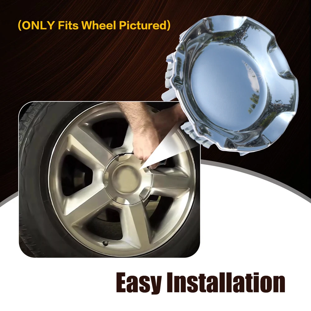 Store Home New Arrival Ending Soon Add to Favourites View Feedback Contact us Why Buy From us Items Description Size = 7 1/8" (7.125") wide Compatible part number = 9597686 Fits: 20" x 8 1/2" 5 spoke wheels of following models 2007-2013 Chevrolet Silverado 2007-2013 Chevrolet Avalanche 2007-2013 Chevrolet Tahoe 2007-2013 Chevrolet Suburban Package Included: 1pc Button Style Wheel Center Caps.Size: 7 1/8 Inch Diameter Delivery details Payment Terms of sales About us Contact us Delivery details Usually, Item will be shipped within 1 working day after full payment is received. Normally, you will receive the item in 5-7 days. Please contact us if you don’t receive the items after 8 working days after the payment. We ship the item to the given address in your order. Please make sure the address in your order is correct. Any non-received item caused by invalid address that left in your order is not in our full refund or replacement policy. Payment We accept multi way of payment, such as PayPal, Apple pay, credit card etc. After you place the order, please finish the payment a.s.a.p. Terms of sales The buyer has 30 days to return the item for refund or replacement. The shipping fees will be on seller or buyer according to the reasons of the returned purchase. The returned product must be under resalable condition and with original package. About us We are a professional worldwide wholesale auto parts company. We specialize in auto accessories for cars, trucks, motorcycles, ATV, UTV, ships, speedboats, furniture and gardening (lawn mowers, fellers, chainsaws, generators, car washers, etc.)Our professional team dedicated to provide high quality products for the most competitive prices and excellent service! Contact us If there is any question or problem, please feel free to contact us by eBay message, normally we get back to you within 24 hours, with our professional team we will provide the best service that we can. Copyright © 2023, Brotherauto-parts All Rights Reserved