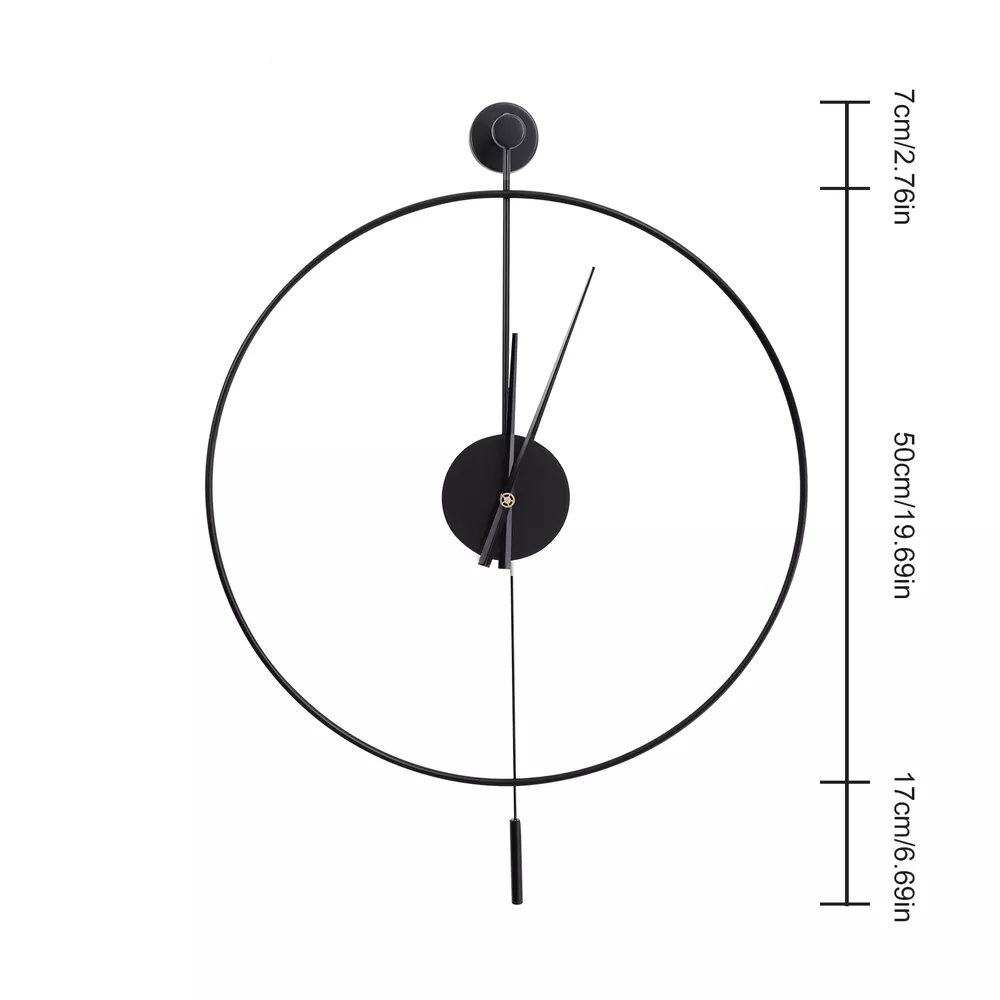 Specification Material: Iron Pointer Material: Aluminum Color: Black Style: Modern Shape: Round Surface Treatment: Baking Paint Power Source: Battery Powered Number of Batteries Required: 1*AA Battery(Not Included) Mounting Type: Wall Mount Operation Mode: Silent Quartz Movement Base Diameter: 7cm/2.76in Dial Diameter: 50cm/20in Packing Size: 53*7.3*54cm/20.86*2.87*21.25in Net Weight: 1kg/2.2lbs Gross Weight: 1.2kg/2.64lbs Package Included 1* Wall Clock 1* Base 1* Pendulum 1* Non-marking Nail 2* Long Screws 20"Classical Large Decorative Wall Clock with Pendulum Modern Non-Ticking Silent Welcome to our store^-^ Description Are you frustrated with the old wall clock at home that keeps ticking? Do you want a quiet, stylish, and durable wall clock? With its high-quality silent movement and metal hands, this wall clock allows you to enjoy every second of silent dreaming. If you are tired of boring walls or want to have more fun in life, then this unique clock will be your ideal choice! Key Highlights High-quality Materials: This wall clock is made of high-quality iron, which is wear-resistant and durable, ensuring a longer service life. Baking Paint Process: The metal surface is baked lacquered to give it a brilliant and colorful appearance and prevent it from fading. It is also anti-corrosive and rust-proof, prolonging its service life. Low Noise: The clock Highlights a silent quartz movement that runs smoothly and without harsh ticking sounds. It will keep your family free from noise and ensure a good and comfortable night's sleep. Accurate Timekeeping: It is equipped with a high-quality silent movement that runs steadily to guarantee accurate timekeeping, giving you a better user experience. Unique Design: The hollow design of this wall clock highlights a mysterious, elegant and minimalist style. This wall clock can match many modern style home decorations and it can add a distinctive touch to your home. Great Gift Choice : This exquisite wall clock is an ideal gift for parents, friends, teachers, leaders and relatives. It will be the most practical and memorable gift they will ever receive. Time Witness: The wall clock records every second of the warm moments you spend with your family. It is the witness of your good memories. Easy to Clean: It is finished with a baked-on lacquer which gives it a smooth, flat surface for easy cleaning. You can easily wipe off dust and stains with a damp rag. Easy to Install: There are reserved a hanging slot on the back of the base for easy installation. You only need a few simple steps to complete the installation. Excellent After-sales Service: We aim to provide quality products and services. If you have any problems, please feel free to contact us, and we will reply and solve the problem for you as soon as possible. Specifications Dial Without Numbers: The dial of this wall clock does not have numbers, making the wall clock more simple and generous overall. Metal Pointers: In contrast to plastic pointers, metal pointers are not only stylish and beautiful but also durable and resistant to breakage. Unique Pendulum: The pendulum design on the wall clock is a decorative element and also adds a touch of energy to a quiet space. Application This wall clock is suitable for the living room, hallway, office, study, bedroom, dining room, hall, exhibition hall, and other occasions. It is also an ideal gift choice for your friends or your family. Installation 1. Determine the position of the non-marking nails. 2. Fix the non-marking nails with a hammer. 3. Align the hooks and hang the wall clock. 4. Complete the installation. Specification Material: Iron Pointer Material: Aluminum Color: Black Style: Modern Shape: Round Surface Treatment: Baking Paint Power Source: Battery Powered Number of Batteries Required: 1*AA Battery(Not Included) Mounting Type: Wall Mount Operation Mode: Silent Quartz Movement Base Diameter: 7cm/2.76in Dial Diameter: 50cm/20in Packing Size: 53*7.3*54cm/20.86*2.87*21.25in Net Weight: 1kg/2.2lbs Gross Weight: 1.2kg/2.64lbs Package Included 1* Wall Clock 1* Base 1* Pendulum 1* Non-marking Nail 2* Long Screws Notes Please do not use too many alkaline power batteries, which affect the life of the movement and sometimes even the accuracy of the timekeeping. Please note that the package does not include a AA battery, so you need to purchase them separately. Please allow the slight color difference caused by the shooting light and 1-3 cm error due to manual measurement, and make sure you do not mind before ordering. Payment Delivery details Terms of sales About us Contact us Payment We accept ebay payment 。 Fees such as import duties, taxes are not included in the item price or shipping costs. These charges are the buyer's responsibility. Delivery details Shipping: 2-9 working days to: USA Terms of sales We maintain high standards of excellence and strive for hundred percent customer satisfaction. Feedback is very important to us. We hope that you contact us immediately before you give neutral or negative feedback, so that we can address your concerns. It is impossible to address issues if we do not know about them! About us Your satis faction is our ultimate goal. We work hard to earn your trust and future business. Our certified technicians have tested each item before shipping. The unit comes with 1 year limited warranty on all manufacturing defects. a) If you receive a defective item, you may return it or ask for a discount. Please contact us within 14 days after you receive the package. b) What you returned must be intact and in its original packaging as re? u. Customer is responsible for shipping costs of the returned item. c) We will cover the cost of shipping back t with the shipping rate indicated in the registration page. We will send you a new unit or refund the full payment you paid. Thank you. Contact us Business Hour Business Hour: Monday To Friday: 8:30 AM to 5:00 PM (Beijing China time) Due to time zones, our reply to your questi