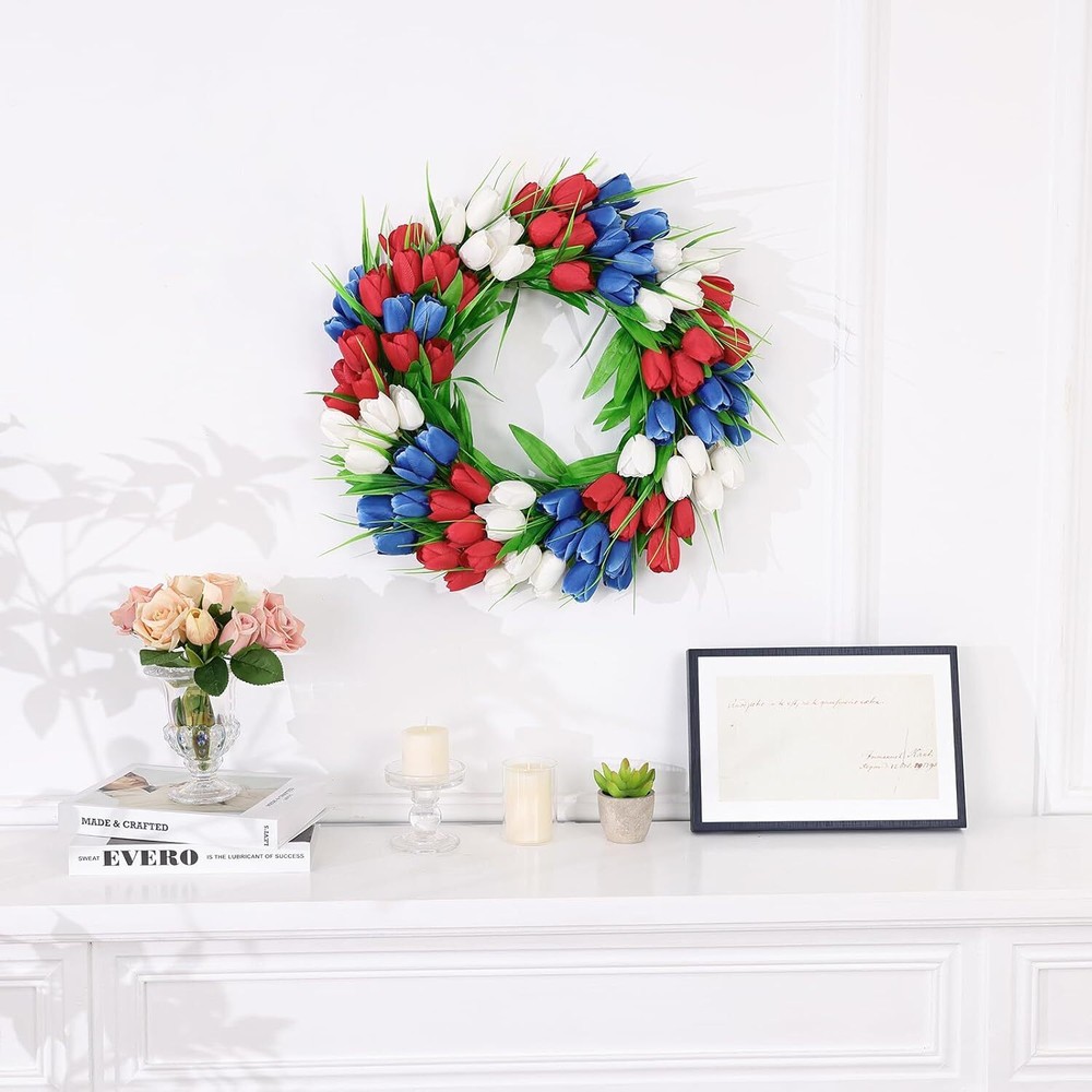 This gorgeous tulip wreath adds instant charm to any door or wall! The vibrant silk flowers and lush green leaves look so realistic, and the 20-inch size makes a perfect statement. Love that it’s handmade with durable materials—stays beautiful all season long. Works for spring, summer, weddings, or everyday decor. Makes my front entrance feel so welcoming!