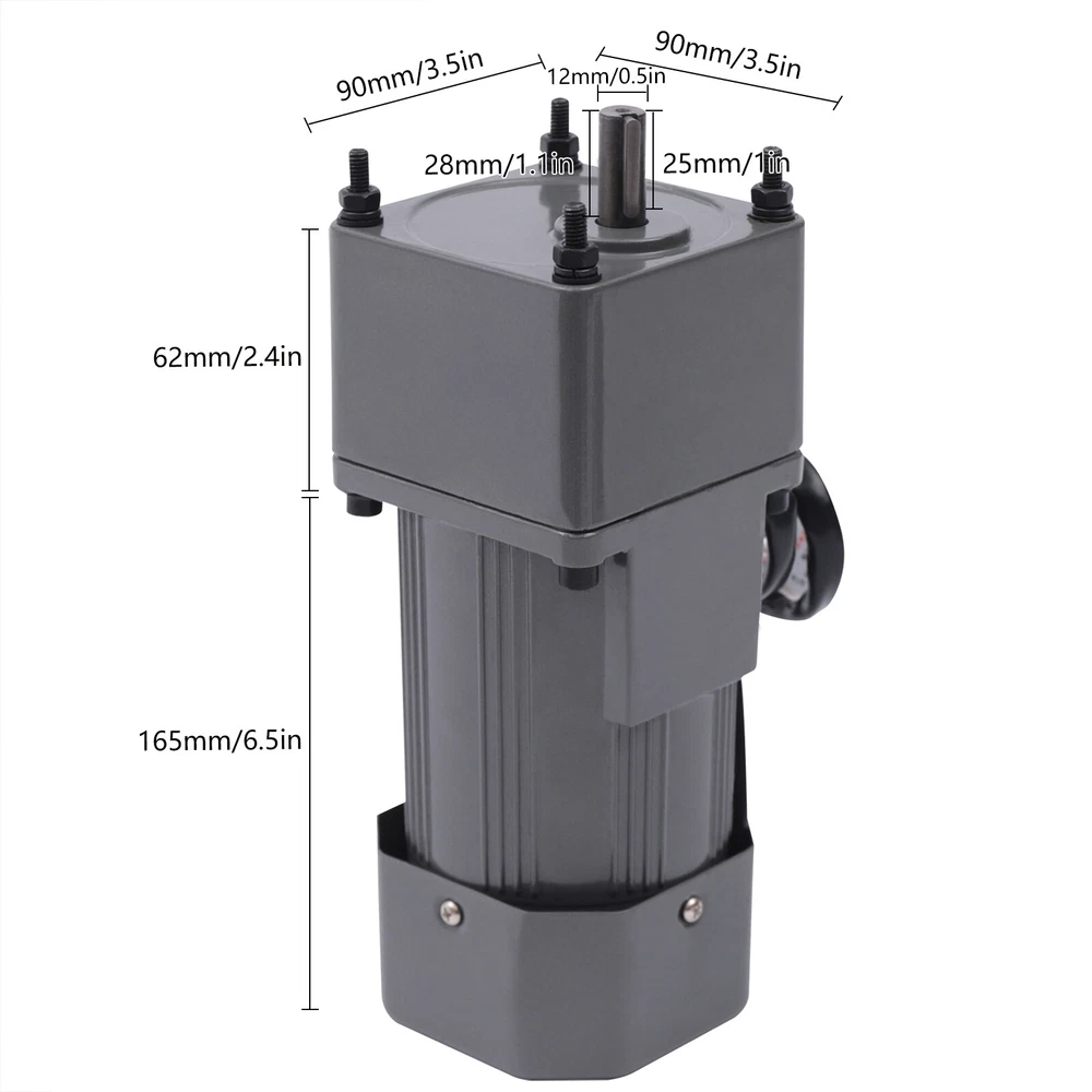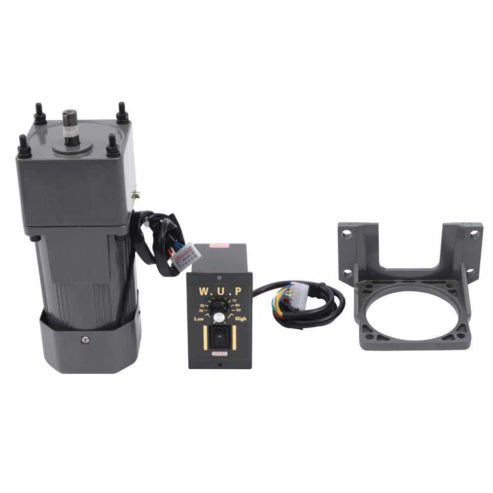 90W Motor Adjustable Speed Frequency Inverter Motor with Gear Controller and Bracket (20 K) Description This gear adjustable motor is primarily used to reduce the speed of a series of gears, thereby producing more power torque. This motor has high power, and high torque, and can also be switched for speed regulation. This high-quality motor with excellent performance is suitable for various industries. Details Copper Coil: The copper coil has better heat dissipation, good conductivity, and longer service life. Thickened Metal Gear: The gear mechanism is precise, the thickness is thicker, the wear resistance is good, the service life is prolonged, and the motor torque is increased. Application It is widely used in food packaging, food mixing, office equipment, medical equipment. 20K 90W Speed Rectangular Small Gear Motor With Gear Controller & Bracket Kit 90W Motor Adjustable Speed Frequency Inverter Motor with Gear Controller and Bracket (20 K) Description This gear adjustable motor is primarily used to reduce the speed of a series of gears, thereby producing more power torque. This motor has high power, and high torque, and can also be switched for speed regulation. This high-quality motor with excellent performance is suitable for various industries. Key Features Increasing Power : This motor achieves the purpose of reducing speed through the arrangement of gears, thereby generating more power and making your machine run faster. Stable Performance: The motor adopts copper coils with better heat dissipation, and the torque is large, which can keep the overall performance of the motor stable. Low Noise: This motor adopts an aluminum alloy casing, which has low vibration and low noise during operation. Small Size: This motor is compact in structure and small in size, and will not take up too much space. Adjustable Speed : The motor is equipped with a speed regulator, you can adjust the speed according to your various needs to achieve better power matching and achieve high efficiency of a machine. Complete Accessories: The product includes a complete set of accessories. In addition to the motor, it is also equipped with a bracket, a reducer, and a speed regulator. You do not need to configure other accessories separately, which is very convenient and simple. Long Service Life: The product is made of high-quality and high-strength metal, and the metal surface is painted, so it is anti-rust and anti-corrosion, and durable. High Torque: The motor has large torque, strong speed-up capability, and a stronger overload capacity, and can reach the power required by the machine faster. Trustworthy: The manufacturer has been committed to the production of motors and gear motors for a long time, and the mechanical equipment is excellent. This motor has passed the 3C certification, and its quality and professionalism are quite trustworthy. Easy to Use: The overall motor is complete, and the governor is also equipped with corresponding numbers and presentations. You only need to adjust to the required speed, and the operation is very simple. Details Copper Coil: The copper coil has better heat dissipation, good conductivity, and longer service life. Thickened Metal Gear: The gear mechanism is precise, the thickness is thicker, the wear resistance is good, the service life is prolonged, and the motor torque is increased. Application It is widely used in food packaging, food mixing, office equipment, medical equipment, packaging machinery, printing machinery, leather shoe polishing machinery, metal cutting machine tools, etc. It is suitable for the packaging industry, machinery and machinery industry, transportation equipment, textile machinery, electric welding machine, automobile industry, etc. Specification Material: Iron, Aluminum Alloy, Copper Color: Black Shape: Rectangular Gross Weight: 5.13kg/11.3lbs Product Weight: 4.50kg/9.9lbs Package Size: 28.5*24.1*12.5cm/11.2*9.5*4.9inch Reducer Size: 6.2*9*9cm/2.4*3.5*3.5inch Motor Size: 16.5*9*9cm/6.5*3.5*3.5inch Shaft Size: 1.2*2.8cm/0.5*1.1inch Key Depth: 2.5cm/1.0inch Keyway Size: 0.4cm/0.2inch Distance Between Diagonal Mounting Holes: 10.4cm/4.1inch Distance Between Mounting Holes on the Same Side: 7.35cm/2.9inch Diameter of Disc Stop: 3.4cm/1.3inch Speed Regulator Size: 6*9*10cm/2.4*3.5*3.9inch Voltage: 110V Rated Power: 90W Engine Speed Ratio: 20K Package Included 1 x Motor 1 x Reducer 1 x Speed Regulator 1 x Bracket Notes Do not plug or unplug the lead wire when the power is on. The product does not include a power cord, which needs to be purchased separately. Please allow the slight color difference caused by the shooting light and 1-3 cm error due to manual measurement, and make sure you do not mind before ordering. Payment Delivery details Terms of sales About us Contact us Payment We accept ebay payment 。 Fees such as import duties, taxes are not included in the item price or shipping costs. These charges are the buyer's responsibility. Delivery details Shipping: 2-9 working days to: USA Terms of sales We maintain high standards of excellence and strive for hundred percent customer satisfaction. Feedback is very important to us. We hope that you contact us immediately before you give neutral or negative feedback, so that we can address your concerns. It is impossible to address issues if we do not know about them! About us Your satis faction is our ultimate goal. We work hard to earn your trust and future business. Our certified technicians have tested each item before shipping. The unit comes with 1 year limited warranty on all manufacturing defects. a) If you receive a defective item, you may return it or ask for a discount. Please contact us within 14 days after you receive the package. b) What you returned must be intact and in its original packaging as re? u. Customer is responsible for shipping costs of the returned item. c) We will cover the cost of shipping back t with the shipping rate indicated in the registration page. We will send