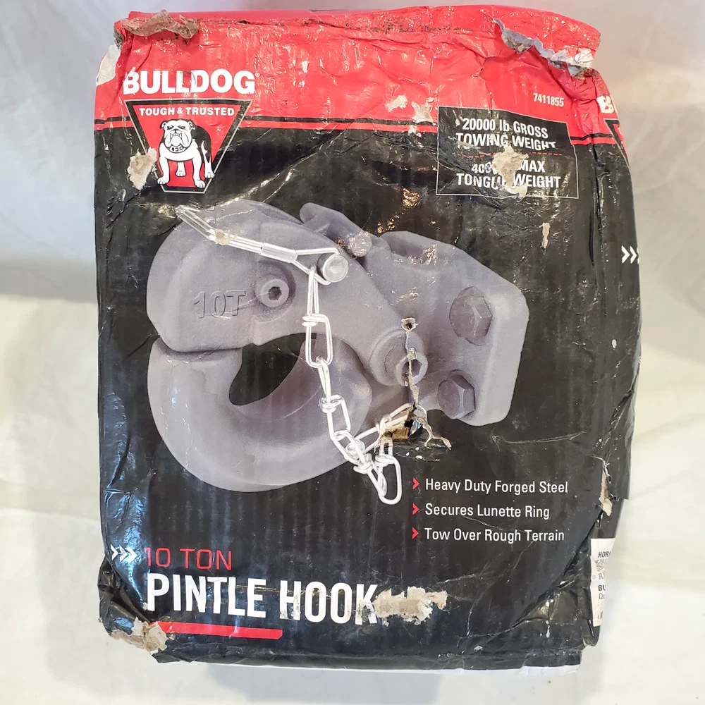 Bulldog bolt on pintle hook. New with mounting bolts. Rated for 20,000 lbs towing and 4,000 lbs max tongue weight. Part number 7411855.
