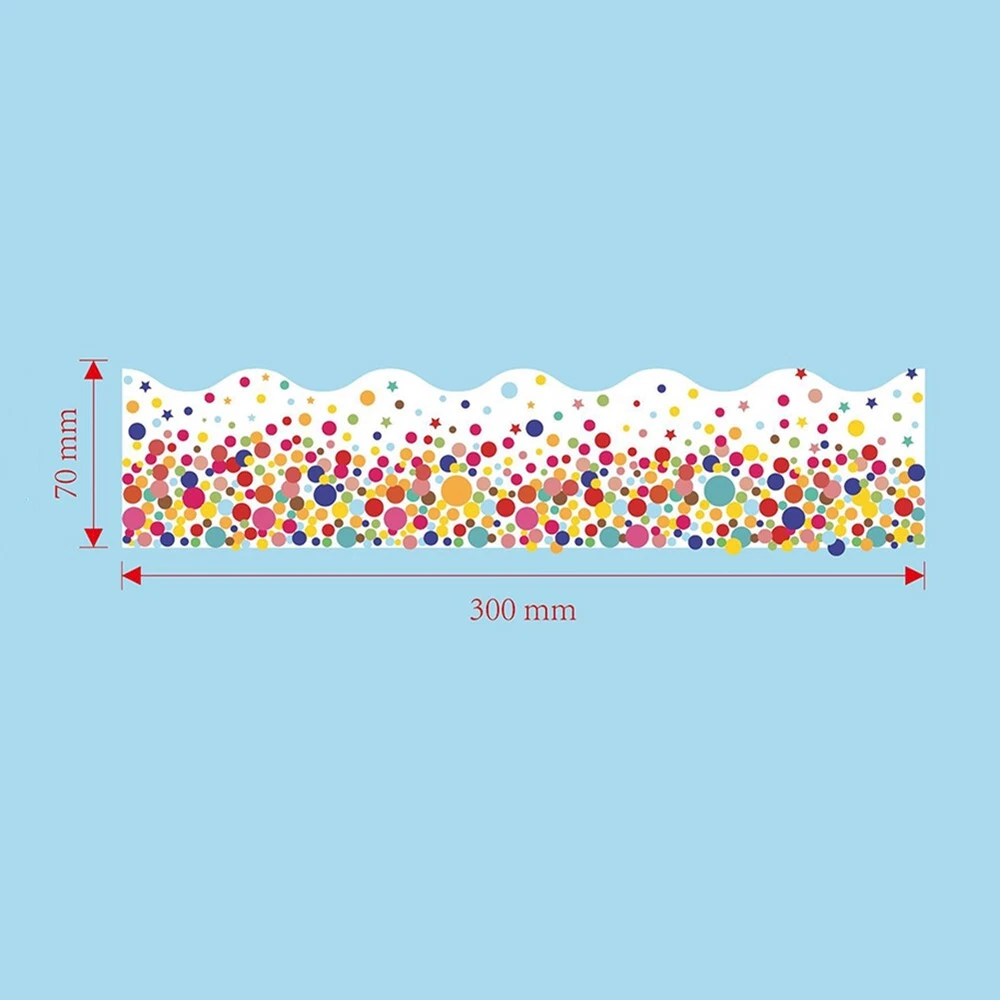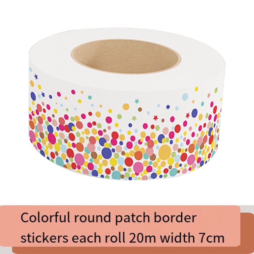 20M Scalloped Lovely Stickers Dot Pattern Stickers Trim Stickers Classroom1880 The board border is self-adhesive, which help you easier to decorate your bulletin board, desk or wall. With delicate pattern classroom decoration border trim, liven up your places. Use border sticker to decorate playroom, kindergarten etc. Use the border trim to welcome the students back to school, or drawing students' eyes to the announcements. Can be cut flexibly according to your actual needs, and you can match the colors at to make the crafts you want. You can also use it to decorate a with other elements, to embellish your handwork. Borders trim work decoration for parties, and to up playrooms, day-cares and more. decorating bulletin board, doors, , chalkboard, whiteboard and more. Color: As Shown Material: Copper plate adhesive Size: 7cm x 20m Package Contents: 1 x roll of copper plate Dot Pattern Stickers