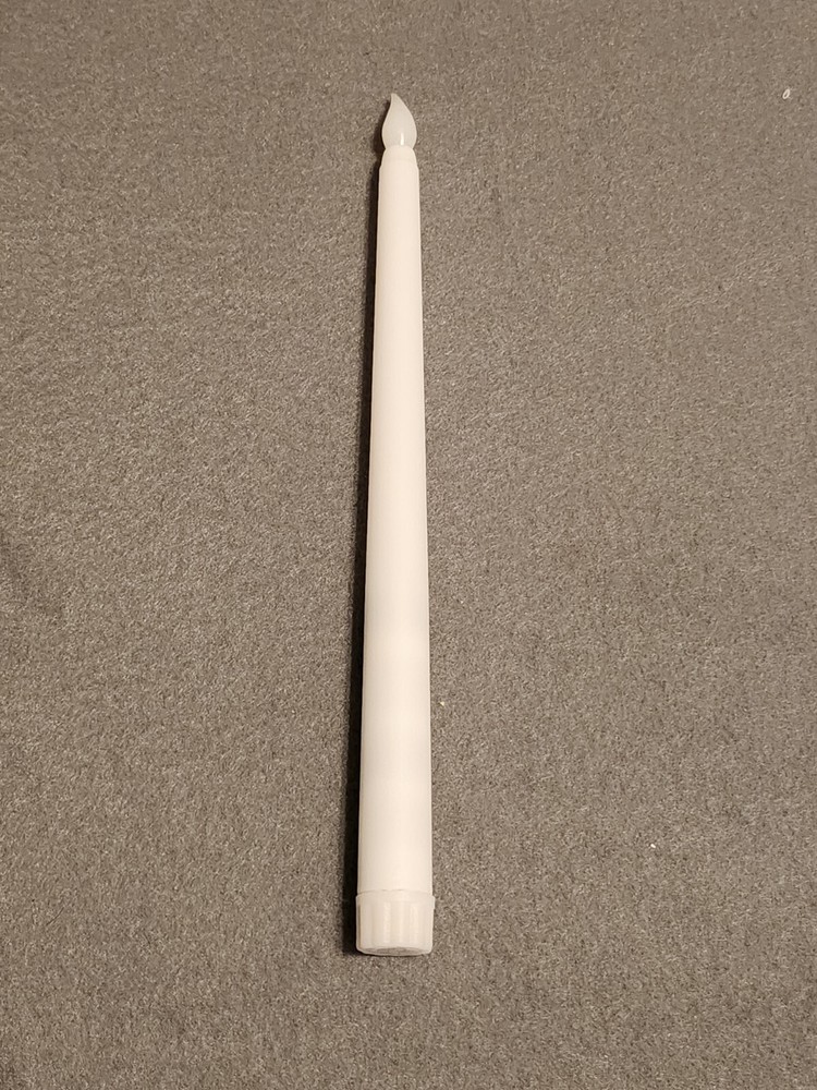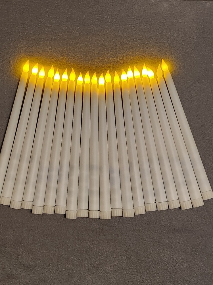 Lot of 20 Battery Operated 10" White Taper Candles. Each requires 2 AAA batteries. Good used condition. These candles will NOT be shipped with batteries. Buyer responsible for supplying batteries.