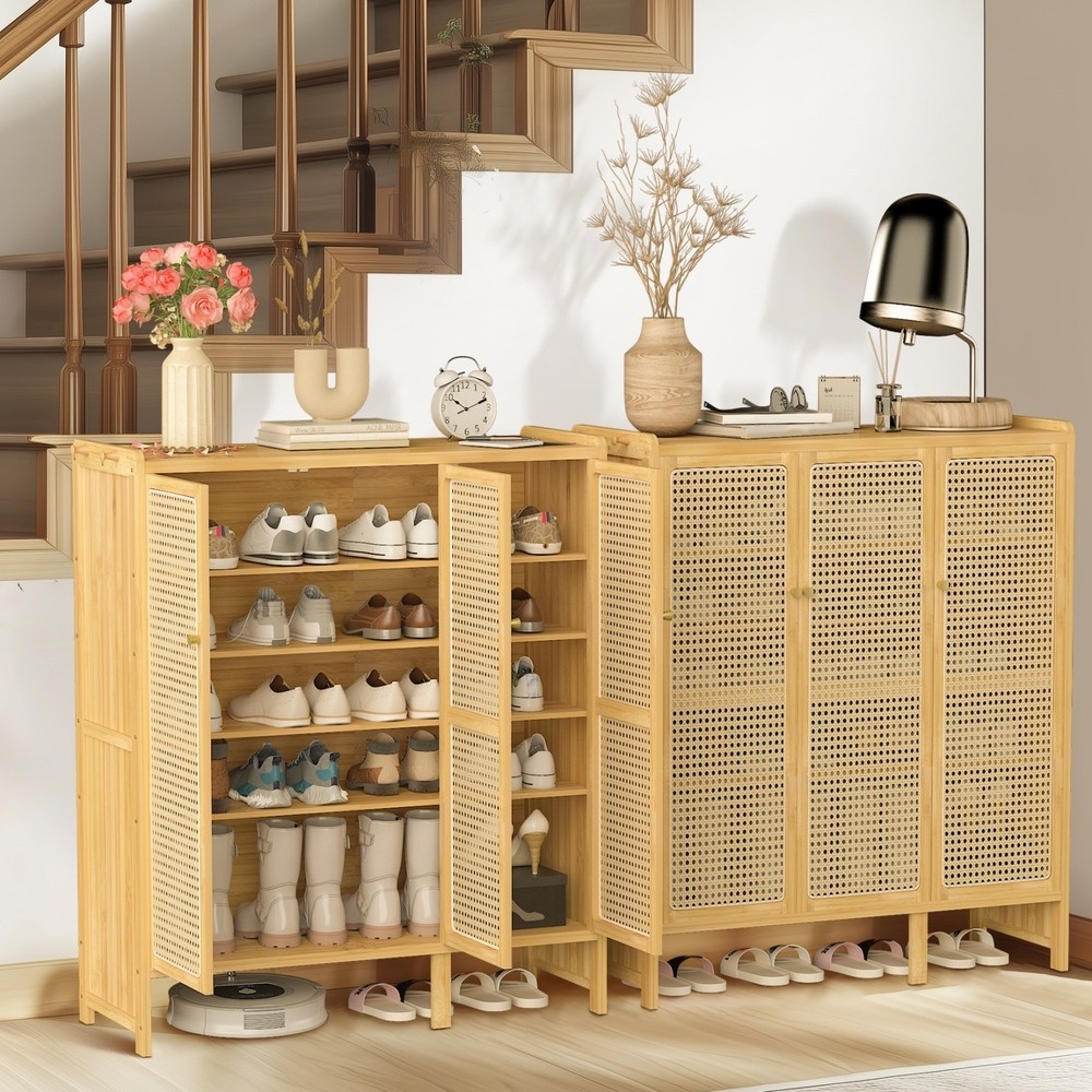 6-Tier Bamboo Shoe Cabinet with 3 Hollow Doors for Entryway Storage