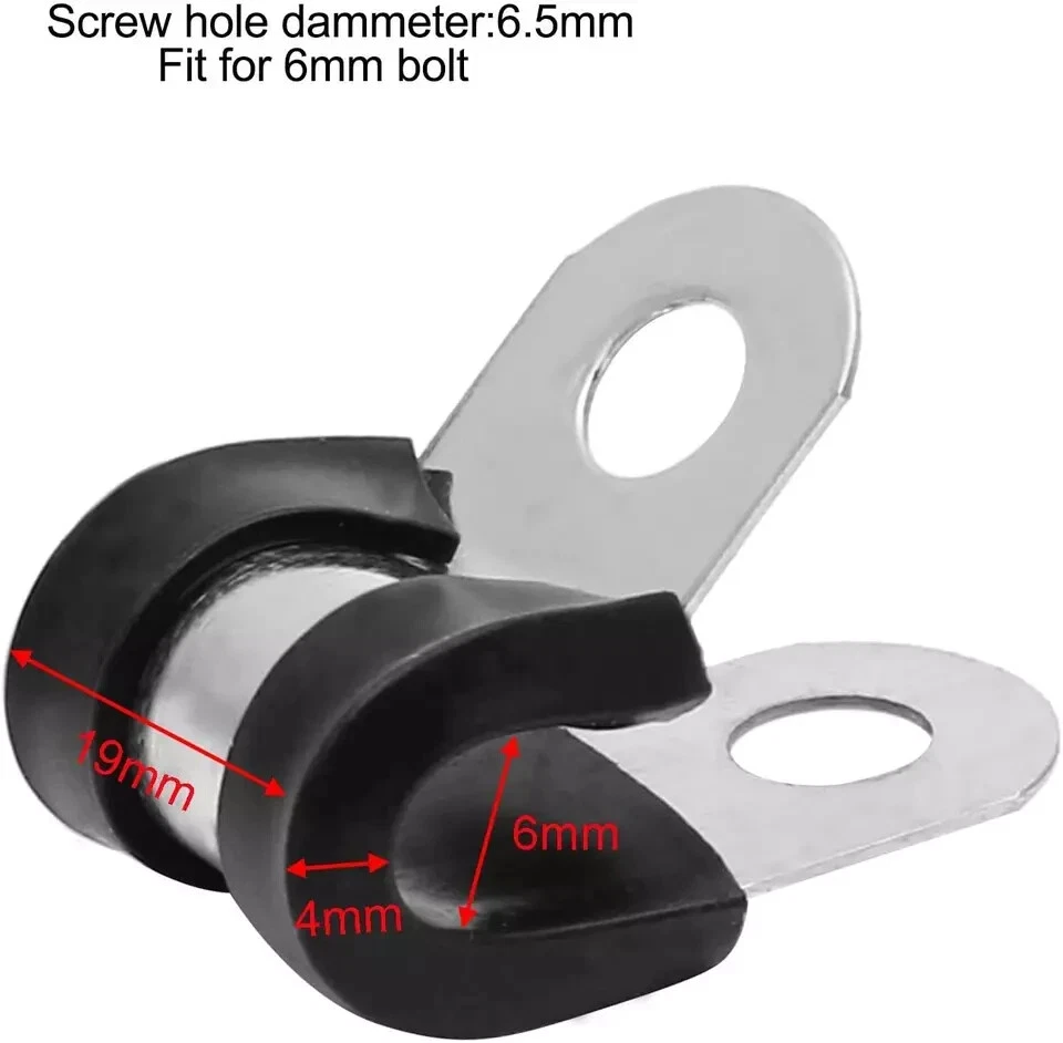 20Pcs 1/4 Inch Stainless Steel Cable Clamps, Rubber Cushioned Insulated Pipe Clamp R-Type Metal Wire Clamp for Tube, Hose Description Item model number JR0159 Part Number JR0159 Style Robust Color Black Material Stainless Steel Batteries Required? No Item Weight 4.3 ounces Size 1/4 Inch Package Dimensions 4.84 x 3.5 x 1.38 inches SIZE- Cable clamp screw hole diameter: 6.5mm, fit for 6mm( 1/4 inch) screw bolt to through them. Cable clamp inside diameter is about 1/4 inch (6mm). Fit for 1/4 inch (outside diameter) wiring, lines,hoses or cables to a panel or frame application. High Quality-These Stainless Steel R-type Cable Clamps are made of 304 stainless steel, which has excellent corrosion resistance, acid, alkali and ozone resistance, and good aging resistance. It is not easy to damage and can also adapt to various harsh environments, such as high temperature or cold weather and humid places. Robust & Reliable-The Stainless Steel R-type Cable Clamp uses high-quality rubber as the insulating layer and fixing ring, which has good flexibility, and it can well protect the pipe and is durable. In addition, the clamp is sturdy and has excellent binding force. It can perfectly support pipes or cables. Easy to Install-The R-shaped design of the stainless steel rubber cable clamp makes it easy to twist, bend and manipulate during installation without any effort. And the installation can be completed quickly and easily, which improves work efficiency. 90 Days Money Back Guarantee- We believe in consistent service and quality. If you are not satisfied with the product, please contact us and we will refund the full amount. Now click ‘Add to Cart’ , this will be your most reliable choice and bring you a 100% worry-free shopping experience!