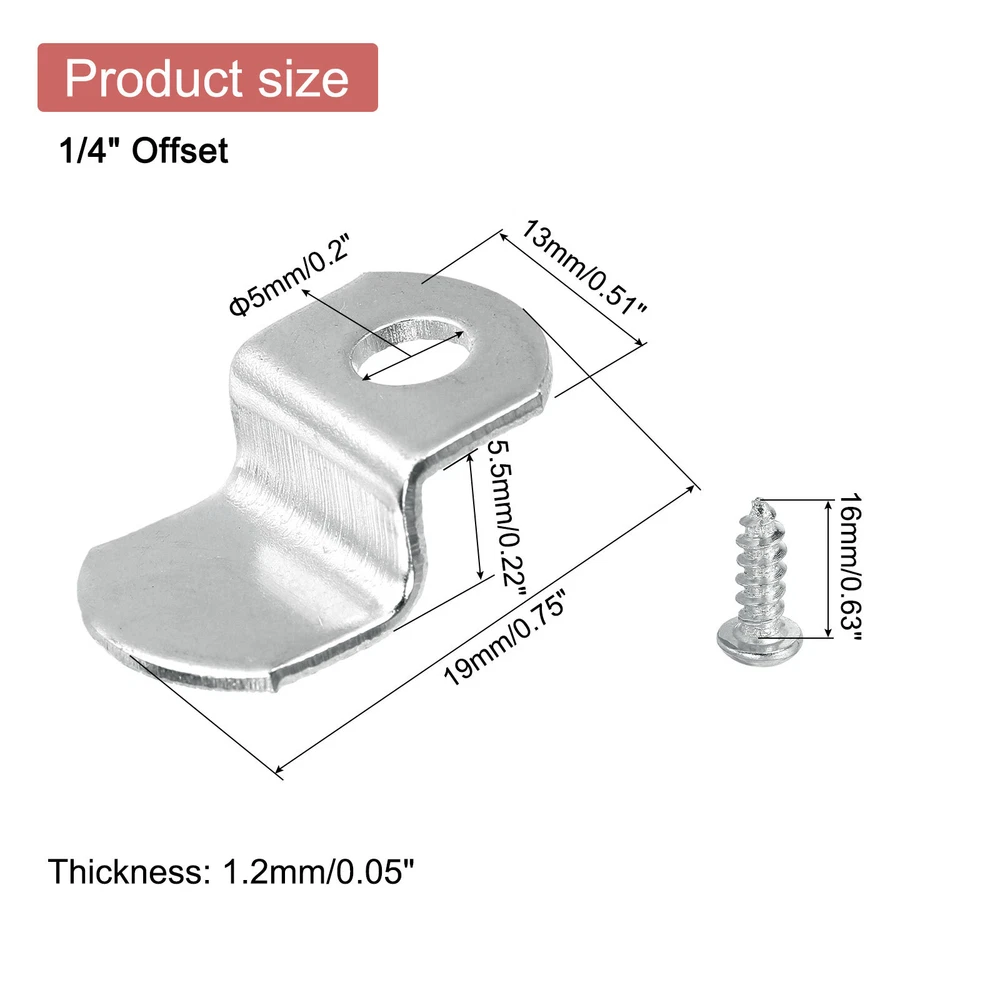 Document Description[Material]-The canvas offset clip is made of iron material with a galvanized surface. It is strong, durable, corrosion-resistant, high strength, not easy to deform, has a strong load-bearing capacity and long service life.[Z-shaped Design] - The canvas mounting clip is a Z-shaped design. This structure is more conducive to connecting the two parts for stable support, forming a reliable connection, and effectively mounting the painting on the frame, which is stable and has no displacement.[Easy to Install] - It is very easy and simple to install our canvas photo frame clips. We provide the corresponding screws. You only need to screw the bracket to the position you reserved to complete the installation.[Wide application] - Our picture framing mirror clips are good fixing and connecting accessories, which can be widely used in photo frames, mirrors, shelves, cabinets, closets, wardrobes, doors and other places.SpecificationMaterial: IronColor: SilverOverall Size: 19 x 13mm/0.75 x 0.51inch(L*W)Height: 1/4" Offset(5.5mm)Thickness: 1.2mm/0.05inchHole diameter: 5mm/0.2inchHole Quantity: 1Screw Size: M4 x 16mmPackage Content20 x Canvas Clips20 x Screws 22mm x 14mm Triangle D-Ring Photo Frame Strap Hanging Hangers 30PCS w Screws USD 8.91 Picture Frame Hanging 2 Hole Triangle D-Ring Strap Hangers 52mm x 13mm 10PCS USD 7.58 Picture Frame Hanging Iron Four Holes Hanger Hooks 53x30x5mm 6pcs USD 8.42 45mm x 8mm Double Hole Sawtooth Picture Frame Hanging Hangers 10PCS w Screws USD 8.12 50mm x 8mm x 11mm No Nail Picture Frame Hanging Saw Tooth Sawtooth Hangers 10PCS USD 8.11 42mm x 8mm Saw Tooth Sawtooth Picture Frame Hooks Hangers 20PCS w Screws USD 8.16 20Pcs 1/4" Offset Canvas Clips, Picture Framing Mirror Clip with 1 Hole, Silver Description [Material]-The canvas offset clip is made of iron material with a galvanized surface. It is strong, durable, corrosion-resistant, high strength, not easy to deform, has a strong load-bearing capacity and long service life. [Z-shaped Design] - The canvas mounting clip is a Z-shaped design. This structure is more conducive to connecting the two parts for stable support, forming a reliable connection, and effectively mounting the painting on the frame, which is stable and has no displacement. [Easy to Install] - It is very easy and simple to install our canvas photo frame clips. We provide the corresponding screws. You only need to screw the bracket to the position you reserved to complete the installation. [Wide application] - Our picture framing mirror clips are good fixing and connecting accessories, which can be widely used in photo frames, mirrors, shelves, cabinets, closets, wardrobes, doors and other places. Specification Material: Iron Color: Silver Overall Size: 19 x 13mm/0.75 x 0.51inch(L*W) Height: 1/4" Offset(5.5mm) Thickness: 1.2mm/0.05inch Hole diameter: 5mm/0.2inch Hole Quantity: 1 Screw Size: M4 x 16mm Package Content 20 x Canvas Clips 20 x Screws Hot Item 47mm x 15mm x 4mm Metal Double Hole Picture Frame Hanging Hooks Hangers 10PCS USD 7.95 25mm x 7mm x 9mm No Nail Picture Frame Hooks Saw Tooth Sawtooth Hangers 30PCS USD 8.22 50mm x 8mm x 11mm No Nail Picture Frame Hanging Saw Tooth Sawtooth Hangers 10PCS USD 8.11 45mm x 8mm Double Hole Sawtooth Picture Frame Hanging Hangers 10PCS w Screws USD 8.12 42mm x 8mm Saw Tooth Sawtooth Picture Frame Hooks Hangers 20PCS w Screws USD 8.16 Payment We accept eBay payment. Please do not email us to ask for other payment option. We appreciate prompt payment and look forward to your business in the future. Unpaid item will be filed without receiving payment in 7 days from listing ended. Shipping Usually we ship your order out within 24 hours in business day. For shipping and handling charges (S&H) for specific item, please refer to the item listing page for more details. Please make sure your shipping address is correct. We are not responsible for any loss in transit if a wrong address is provided. Return Policy Returns for exchange are permitted and must be initiated by the buyer within 30 days upon receipt. If you would like to return your product(s) for repair / replacement / refund, please kindly contact our customer service representatives via email for an authorized RMA number. Your returned product(s) will not be processed without a completed RMA. About Us We are continually expanding our product selection to better serve your need. We look forward to providing the best sevice to you - our dear customers, so take a look around our store and find the product that you want. You can put your trust in us! If you need any help or have any suggestions, please don't hesititate to contact us anytime , we will reply you within 24 hours and try the best to help you. Description Policy 20Pcs 1/4" Offset Canvas Clips, Picture Framing Mirror Clip with 1 Hole, Silver Description [Material]-The canvas offset clip is made of iron material with a galvanized surface. It is strong, durable, corrosion-resistant, high strength, not easy to deform, has a strong load-bearing capacity and long service life. [Z-shaped Design] - The canvas mounting clip is a Z-shaped design. This structure is more conducive to connecting the two parts for stable support, forming a reliable connection, and effectively mounting the painting on the frame, which is stable and has no displacement. [Easy to Install] - It is very easy and simple to install our canvas photo frame clips. We provide the corresponding screws. You only need to screw the bracket to the position you reserved to complete the installation. [Wide application] - Our picture framing mirror clips are good fixing and connecting accessories, which can be widely used in photo frames, mirrors, shelves, cabinets, closets, wardrobes, doors and other places. Specification Material: Iron Color: Silver Overall Size: 19 x 13mm/0.75 x 0.51inch(L*W) Height: 1/4" Offset(5.5mm) Thickness: 1.2mm/0.05inch Hole diameter: 5mm/0.2inch Hole Quantity: 1 Screw Size: M4 x 16mm Package C