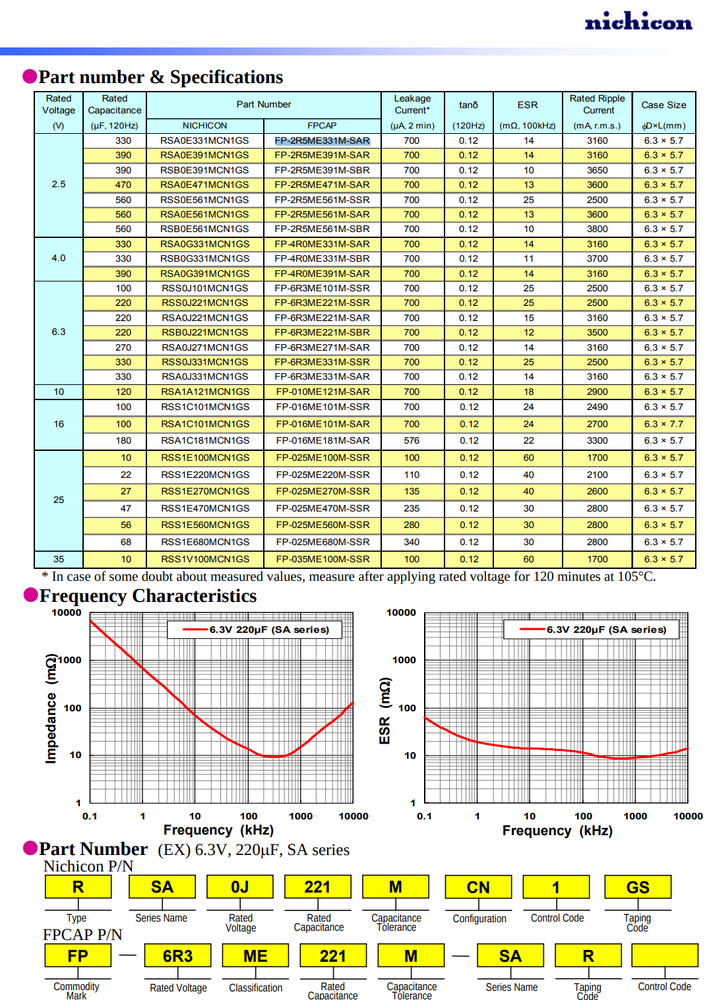 $ 3.3Chemi-Con 220uF 6.3V 6.3x5.8mm Aluminum Polymer Capacitor APXE6R3ARA221MF61G