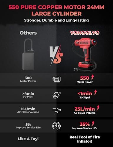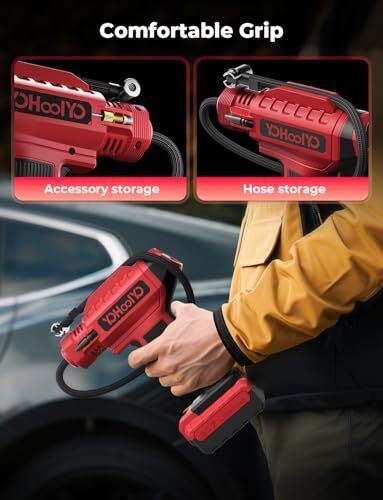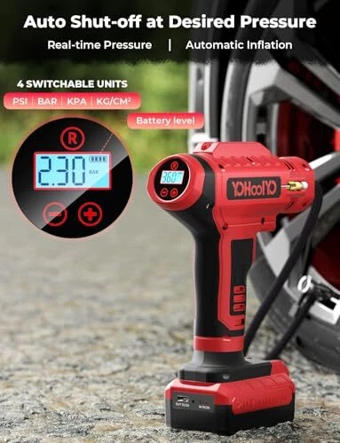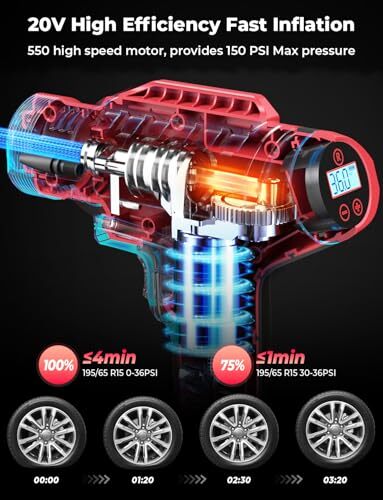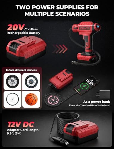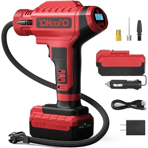 This portable tire inflator is a game-changer! Super fast, easy to use, and the dual power options (12V car adapter + 20V battery) make it super convenient. The auto-stop feature at your desired PSI is perfect, and it works great for cars, bikes, and motorcycles. The digital gauge is accurate, and the compact design makes storage a breeze. Fast shipping and great seller—highly recommend!