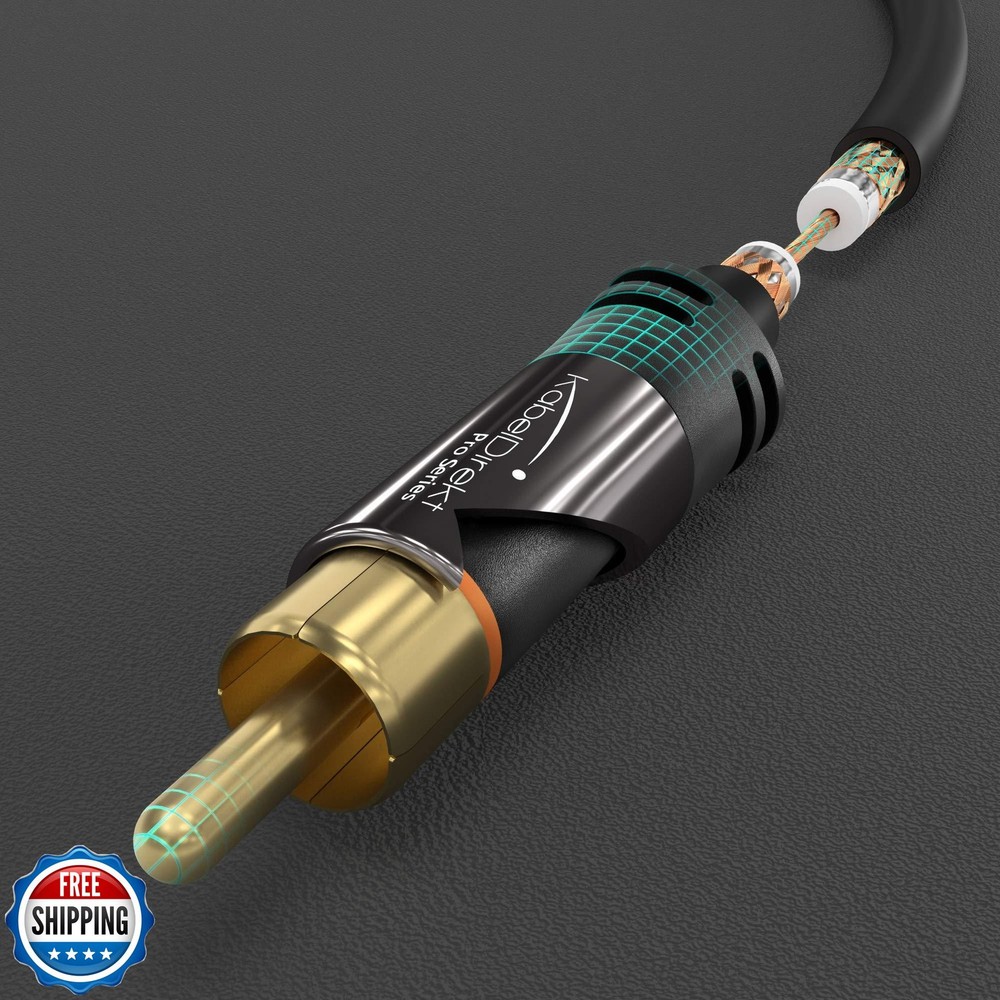 KabelDirekt – 20ft Long – RCA/Phono subwoofer Lead Cable, 1 to 1 RCA/Phono, Audio/Digital/Video (Coax, Male/Male Plugs, for amps/Hi-Fis, Audio Signals/Composite Video, 75 ohm, Black) Features Transmit video & audio in brilliant signal quality with this RCA/phono cable (male to male, 1 to 1) Connect your analog or digital audio kit thanks to the cable’s 75 ohm impedance, making it superior to other coax cables that can only handle analog signals Enjoy durability and maximum shielding from interference thanks to the PVC jacket that protects the high-purity copper conductors and a double screen comprising aluminum-Mylar foil and a tightly woven aluminum braid 36 months manufacturer warranty Shipping Free & Fast Shipping: We offer free shipping to most of the USA with a normal delivery time of 3-7 days. However, due to the current situation, additional delivery time (up to 3 weeks) may be required for some items. Alternative Carriers: We may use alternative carriers (e.g., USPS, FedEx, UPS) to ensure your package arrives safely and on time. Due to the use of multiple carriers, we are unable to provide a tracking number automatically. Handling Time: Orders are processed and shipped within 1-2 business days of receiving cleared payment. Shipping Restrictions: Shipping to Alaska, Hawaii, Puerto Rico, Guam, and other US territories may incur shipping charges or delivery restrictions. Please contact us before ordering, or your order can be refunded/cancelled. State Restrictions: Certain items may not be shipped to California due to state regulations. Contact for Tracking Updates: If you require tracking updates or have any concerns about the delivery of your order, please feel free to contact us, and we will be happy to assist you. Return Policy 30-Day Hassle-Free Returns: If you are not completely satisfied with your purchase, you can return the item for free within 30 days of receiving it for a full refund or exchange. Easy Return Process: Contact us, and we will provide you with a prepaid return shipping label and detailed instructions. No Restocking Fee: There are no restocking fees for returns. However, the buyer is responsible for return shipping costs if the return is not due to a seller"s error. Refund Processing: Refunds will be processed within 1 business day of receiving the returned item in its original condition. Feedback Your feedback is extremely important to us. We strive to provide the best products and customer service possible. If you are satisfied with your purchase, please take a moment to leave us a positive review. If you have any concerns or issues with your order, please contact us before leaving negative feedback. We are committed to resolving any problems and ensuring your satisfaction. Contact Us If you have any questions or concerns, please feel free to reach out to our customer support team. You can contact us through the eBay messaging system. We are available Monday to Friday, 9:00 am to 5:00 pm EST, and we will do our best to respond to your inquiry within 24 hours. Thank you for supporting our small family business!