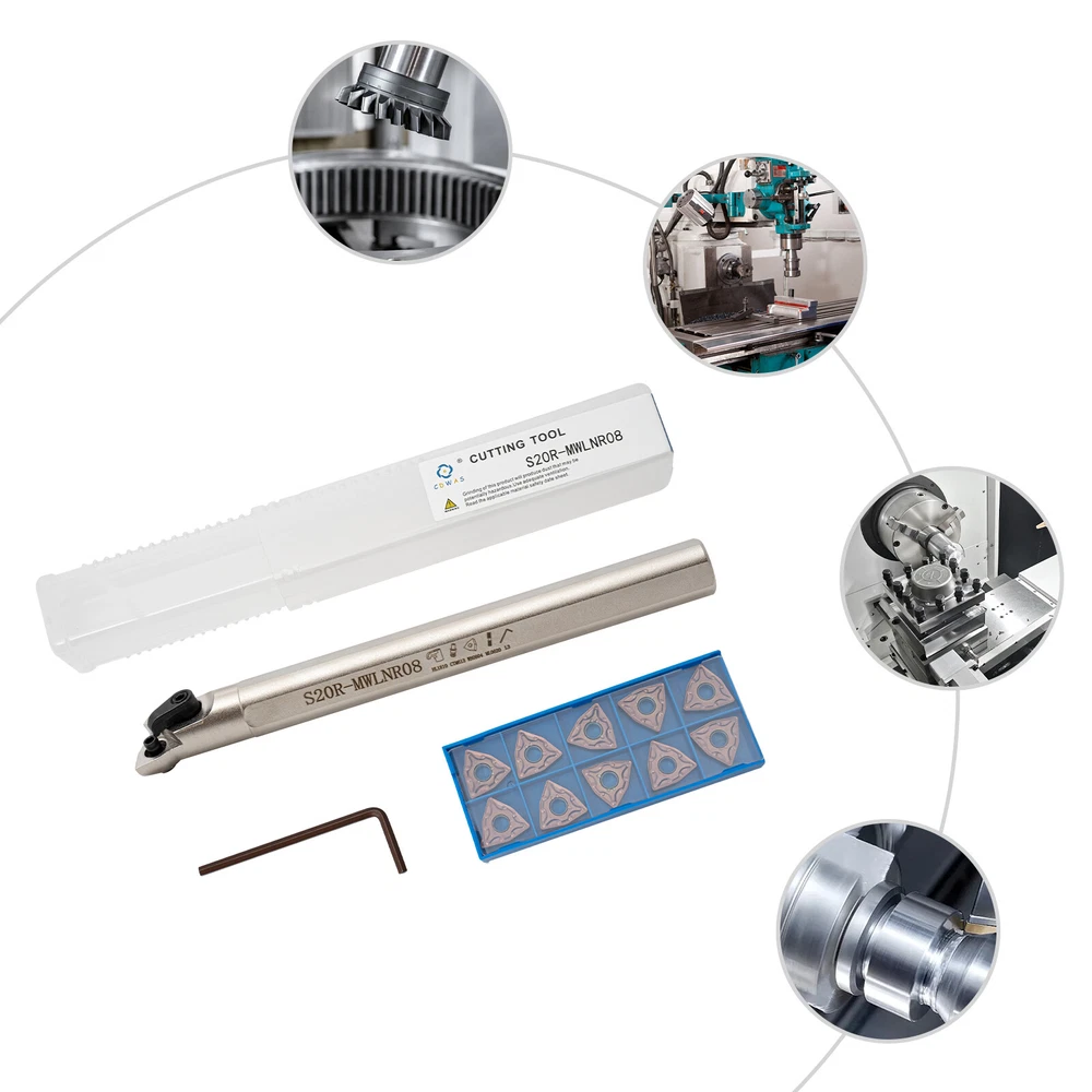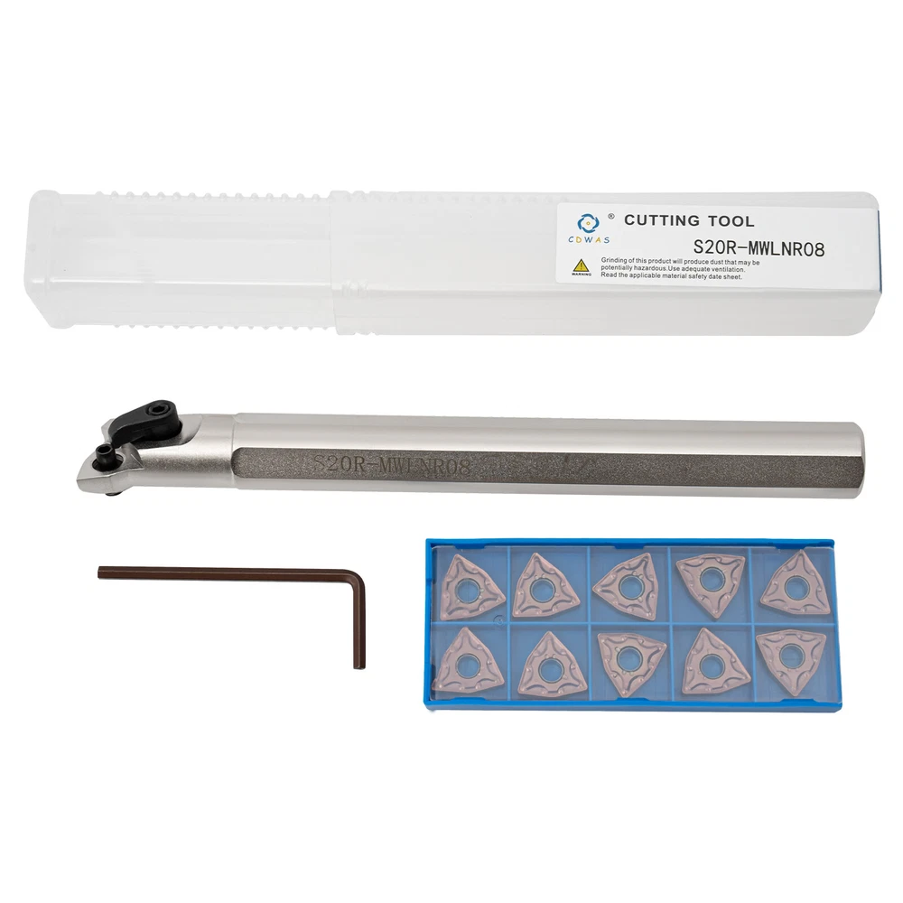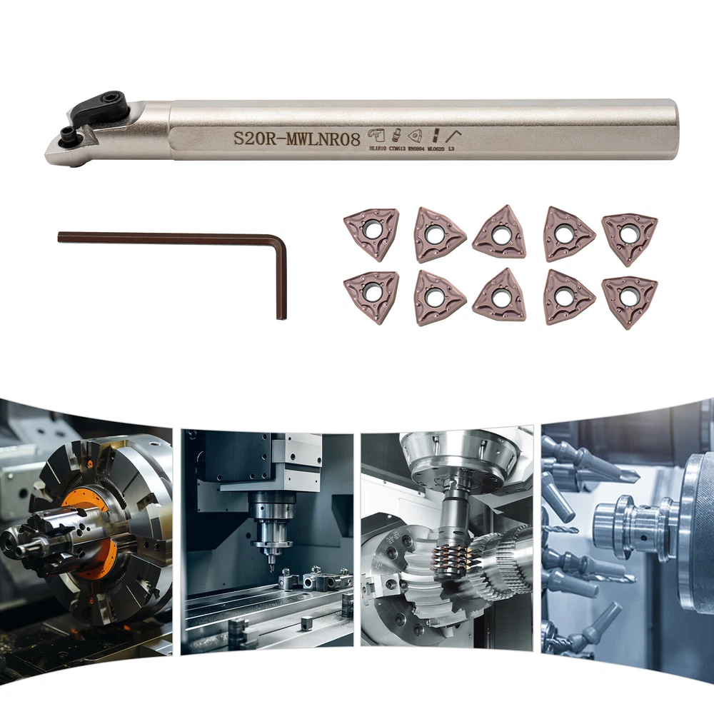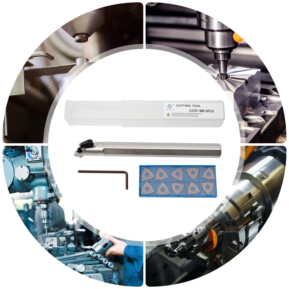 20mm Lathe Internal Boring Bar Turning Tool Holder S20R-MWLNR08 Shank Description With its high-quality tungsten steel and hard alloy steel materials, this set of turning tools provides superior quality, such as high impact resistance, low friction coefficient, and sharp and smooth cutting. We provide 10 high-quality and sharp turning blades to ensure your long-term use. This practical turning tool set will be the ideal choice for you. Key Features Complete Set: This complete set of turning tools, including a guide rod, an allen wrench, and 10 blades, can easily meet your installation, use and replacement needs. High Precision: Different R-angles are available for fine and coarse turning needs, enabling high precision finish on machined parts. Easy to Store: The shank and inserts are stored separately in a customized storage box to prevent loss and provide protection against wear and oxidation. High Efficiency: The sharp tungsten steel inserts with low coefficient of friction and smooth chip evacuation provide a significant speed advantage during cutting and machining. User-friendly Design: The corresponding model number is engraved on the shank, so that you can select it quickly and accurately. Easy to Clean: Its smooth surface allows stains and dust to be quickly wiped away with a damp towel. High-quality Material: Alloy steel shank and tungsten steel inserts are hard, tough, wear-resistant, corrosion-resistant, heat-resistant and impact-resistant, ensuring long service life and good turning performance. Customer Service: We aim to provide quality products and services. If you have any problems, please feel free to contact us. We will reply and solve the problem for you as soon as possible. Comfortable Shank: The shank with cutting surface is more non-slip than the smooth cylindrical shank, providing stable and comfortable operation. Painting Process: The painted surface is not only more beautiful, but also has good anti-oxidation, anti-rust and anti-corrosion properties for better adaptation to the working environment. Application It is usually used for threading, turning, cutting off, slitting, finishing, facing, external grooving, etc. Specifications Material: Alloy Steel, Tungsten Steel Color: Silver, Gold Number of Inserts:10 Cutting Direction: Right Hand Packing Size: 22.4*7*4.2cm/8.81*2.75*1.65in Gross Weight: 0.58kg/1.27lbs Net Weight: 0.45kg/0.99lbs Package Included 1* S20R-MWLNR08 Shank 10* Inserts 1* Allen Key Notes 1. Please note that cutting tools may shatter if broken. The wearing of safety glasses is required in the vicinity of the use. 2. Please note that grinding produces hazardous dust. To avoid adverse health effects, use adequate ventilation. 3. Please allow the slight color difference caused by the shooting light and 1-3cm error due to manual measurement, and make sure you do not mind before you place the order. Payment Delivery details Terms of sales About us Contact us Payment We accept ebay payment 。 Fees such as import duties, taxes are not included in the item price or shipping costs. These charges are the buyer's responsibility. Delivery details Shipping: 2-9 working days to: USA Terms of sales We maintain high standards of excellence and strive for hundred percent customer satisfaction. Feedback is very important to us. We hope that you contact us immediately before you give neutral or negative feedback, so that we can address your concerns. It is impossible to address issues if we do not know about them! About us Your satis faction is our ultimate goal. We work hard to earn your trust and future business. Our certified technicians have tested each item before shipping. The unit comes with 1 year limited warranty on all manufacturing defects. a) If you receive a defective item, you may return it or ask for a discount. Please contact us within 14 days after you receive the package. b) What you returned must be intact and in its original packaging as re? u. Customer is responsible for shipping costs of the returned item. c) We will cover the cost of shipping back t with the shipping rate indicated in the registration page. We will send you a new unit or refund the full payment you paid. Thank you. Contact us Business Hour Business Hour: Monday To Friday: 8:30 AM to 5:00 PM (Beijing China time) Due to time zones, our reply to your questions may not be immediately. But within above working time, we will reply your email within 24 hours. If it's non-workdays, please kindly be patient and wait till Monday. Please contact us with ebay message. Please feel free to contact us if you have any questions. Monday To Friday: 8:30 AM to 5:00 PM (Beijing China time) Due to time zones, our reply to your questions may not be immediately. But within above working time, we will reply your email within 24 hours. If it's non-workdays, please kindly be patient and wait till Monday. Please contact us with ebay message. Please feel free to contact us if you have any questions. Brand Unbranded MPN Does not apply Color Silver, Gold Gross Weight 0.58kg/1.27lbs Packing Size 22.4*7*4.2cm/8.81*2.75*1.65in Number of Inserts 10 Cutting Direction Right Hand On Feb 26, 2025 at 17:53:48 PST, seller added the following information:
