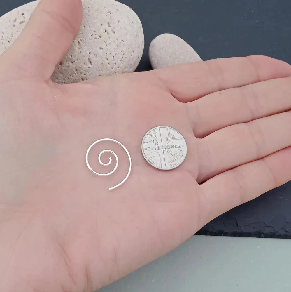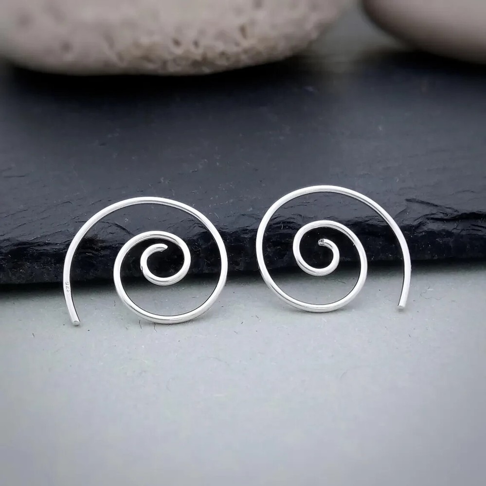 Swirly wire spiral earrings in sterling silver. Nickel FREE Elevate your style with our simple yet striking tribal-inspired sterling silver 20mm spiral earrings. These versatile earrings are perfect for both day and night, offering an effortless, stylish touch. Just threade the wire spiral in your ear lobe piercing and you're done! Simple yet extremely effective Boho minimalist style. A wonderful gift for those who appreciate understated elegance, they’re also ideal for stacking with other earrings for a unique look. Embrace the delicacy of these plain spiral earrings, adding a touch of understated style to any outfit with ease! *Other 2 sizes available in our Ebay shop Dimensions: Diameter: 2 cm Total weight approx: 1.2 grams. Delivery Information All items dispatched from the UK. Item will be carefully packaged in eco-packaging to safeguard it during delivery and our branded satin pouch ready as a gift. Standard Tracked 48 Shipping with Royal Mail or Yodel included FREE . Tracking number details will be sent after dispatch (which is usually within 1 working day of purchase. Weekends/festivities excluded). Faster shipping options also available for the UK. Worldwide shipping available with Royal Mail Tracked & Signed. Returns accepted within 14 days of receipt. At customers’ expense.