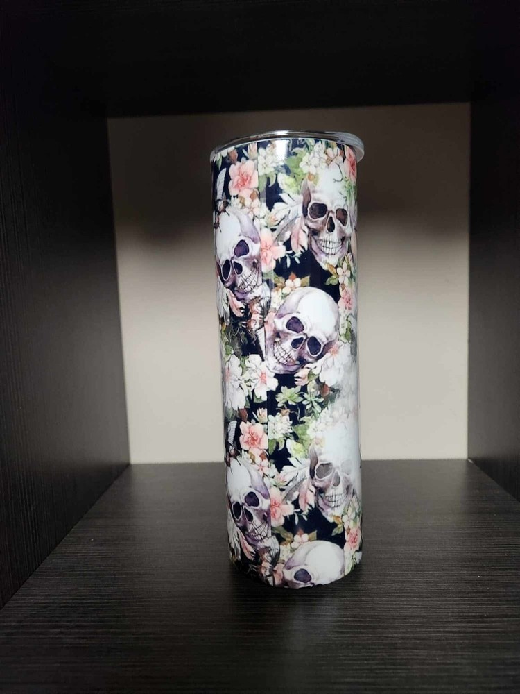 This 20oz tumbler is perfect for those who love a touch of edginess in their drinkware. Featuring a skull and skeleton design, this straight and skinny tumbler is made of durable stainless steel. The tumbler comes with a cup lid and straw, making it easy to sip on your favorite beverage.The multicolor tumbler has a sublimation design and is perfect for those who love unique and eye-catching drinkware. With a capacity of 20 Fl Oz, this tumbler is perfect for your on-the-go drinks. The tumbler is ATA brand and is a great addition to any kitchen or bar.