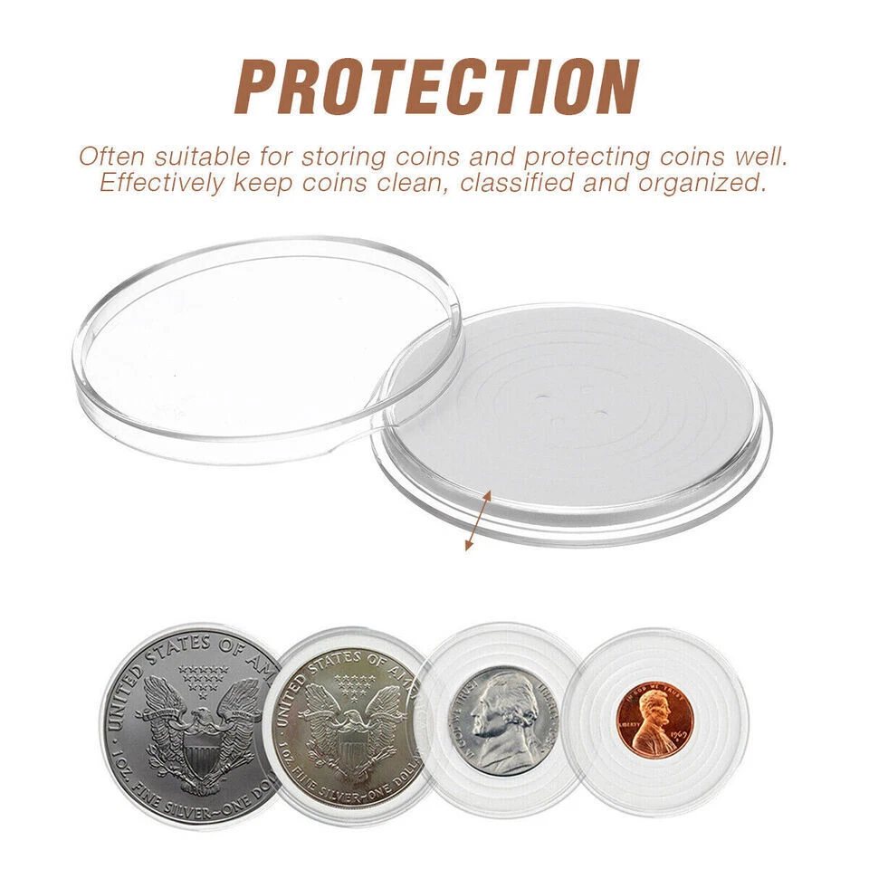 SAFE & SECURE SHOPPING 100% SATISFACTION GUARANTEED FAST SHIPPING You may also like 20pcs 46mm coin collection box commemorative coin box with white washer Product Description Durable Material: Made of PS material, reusable and lightweight, durable for use. Protection: Perfect for storage coins, good to protect coins. Effectively keep your coins clean all the time, keep them sorted and organized. Features: You can peel the pads according to the size of your coins. Scratch resistance and comes with practical handle rim. Soft EVA Pads: 5 size of soft EVA pads to fit many kinds of coins. These coins fit very tightly and are hard to remove once inserted. Application: Suitable for awards ceremony, advertising sales promotion, business gifts, exhibitions, nice gift for coin lovers. Great Gift: Portable and easy to carry, great gift for coin collectors to protect and store his/ her favorite coins. Nice gift for coin lovers. Product Specification: Type: Coin Storage Box Material: PS Color: Clear Qty: 20PCS Outer Dia: 5.1cm/2.01''(appr.) Inner Dia: 4.6cm/1.81''(appr.) Application: Awards ceremony, advertising sales promotion, business gifts, exhibitions, nice gift for coin lovers. Package Included: 20 X Coin Capsules (Coins Not Included) 20 X Protective Coin Gaskets Copyright © 2022 Tongtool