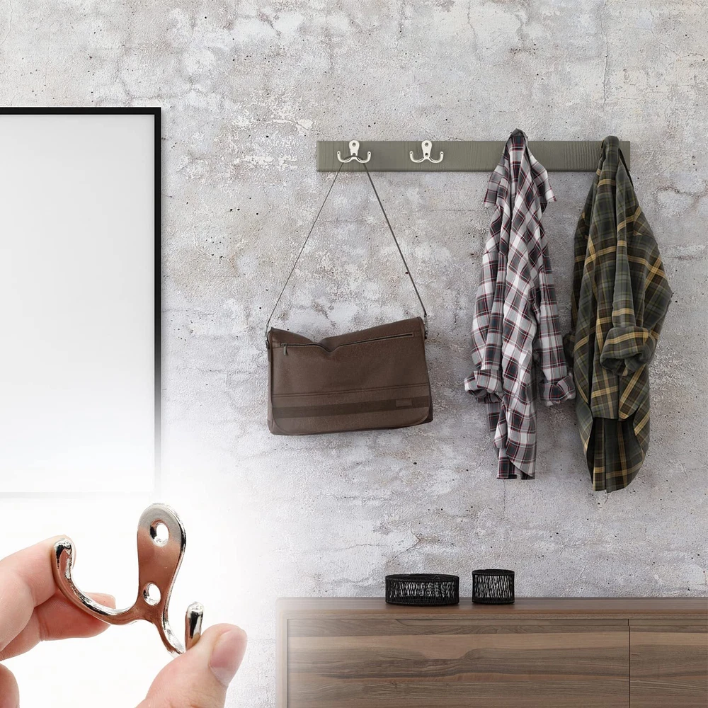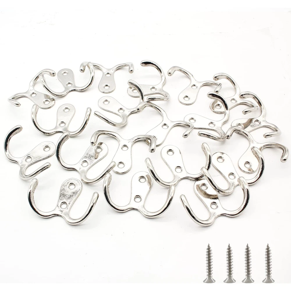 Modern coat hooks are compact and decorative for screwing on installation in the bathroom, bedroom and office. Double hooks for hanging caps, hats, towels, clothes, keys, bags and etc. Wall hooks for hanging heavy duty are easy to install by screwing on the wall, closet, wooden board directly. Specifications: Size: 1.6" x 2.1"/41mm x 54mm(L*W) Mounting Hole Spacing: 0.7"/18mm Wall Mounted Width: 0.7"/18mm Screws Included: M4*16mm Style: Double Pronged, 2 Mounting Holes Material: Zinc Alloy Color: Brushed Nickel Quantity: 20 Pieces Note: Due to manual measurement, please allow a deviation of 1 - 2mm. Please check our product size carefully and read the product size descriptions before purchasing to avoid possible unpleasant shopping experience. Package Included: 20 x Brushed Nickel Coat Hooks, with M4*16mm mounting screws. Size: 1.6" x 2.1"/41mm x 54mm(L*W), Mounting Hole Spacing: 0.7"/18mm. Heavy Duty Coat Hooks: Made of solid zinc alloy, the wall mounted coat hooks are rustproof, corrosion resistant and durable, with strong bearing capacity up to 35lbs. Double Wall Hook: Designed with double pronged hooks for hanging, the wall mounted hooks for hanging are perfect for storage in bedroom, bathroom, living room, kitchen and closet. Easy to Install: Screw in coat hooks for wood are easy to install with wall mounting screws. Directly screwing the wall hooks on the closet, door for hanging coat, towel, clothing and etc. Satisfaction Oriented: If you don't absolutely love them let us know and we will strive to improve your shopping experience! We are so confident you will love our products.