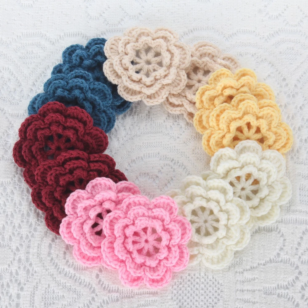 20 pieces of crochet flowers in various colors, simple and elegant, to meet your different needs for flower DIY craft projects, Each flower is approximately 3.1 inches/8cm in diameter. These knitted flowers are handmade from cotton yarn, which is soft, delicate and tear-resistant, light and gorgeous 8 petals flower, 3 layers three-dimensional design, flat back design, easy to use, just sew the flower to your craft or stick some glue or sticky dots on the back of the flower, then attach them to your craft project. Crochet flower decorations are great for sewing, crafts, clothing, bags, card making and more Crochet flowers can be used to make beautiful cards or put in your scrapbook It's perfect for craft projects like paper projects and hair gear; You can use it as a cute flower holder in weddings, party supplies, DIY crafts, boutique accessories or designs