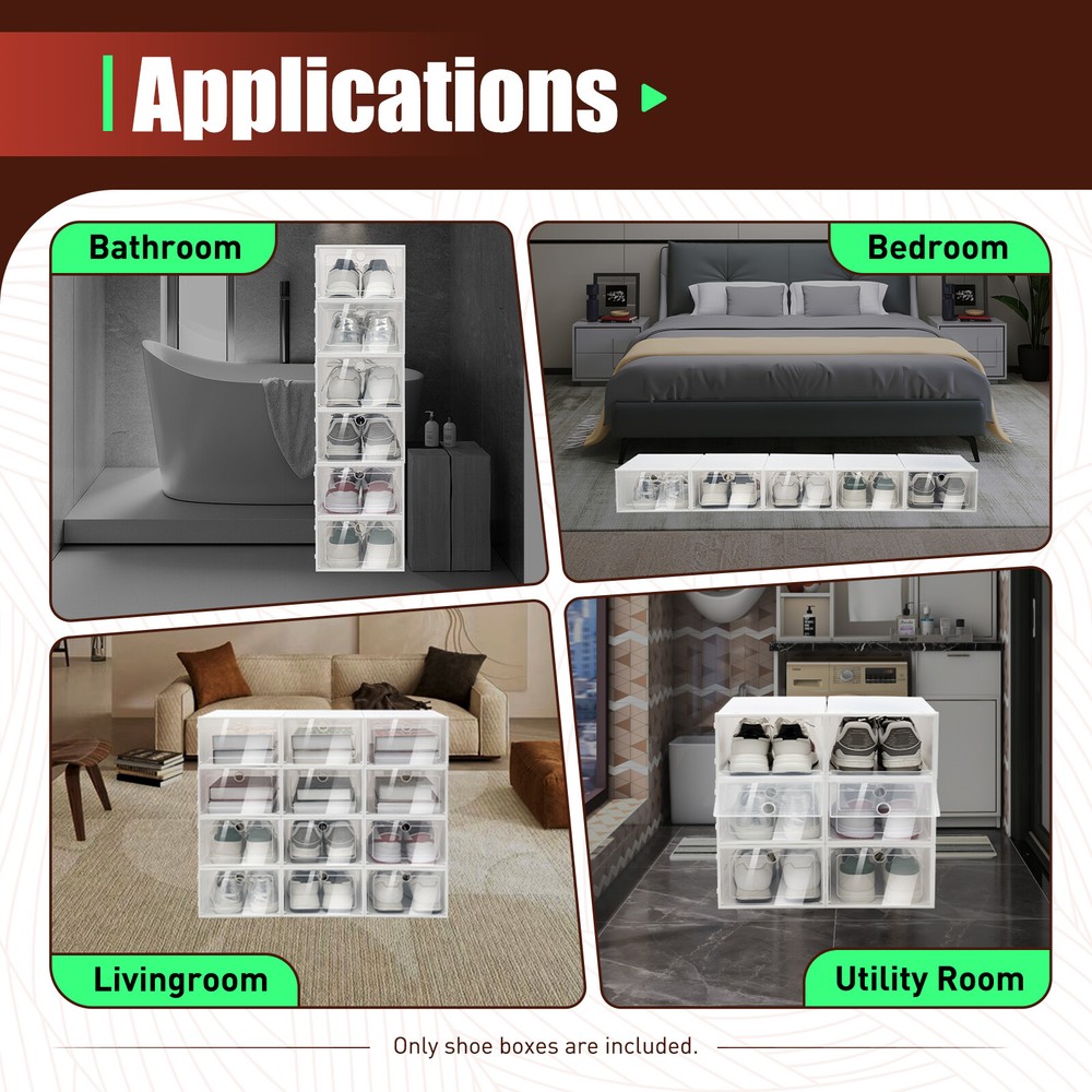 This shoe box is not suitable for sports shoes and leather shoes that weigh more than 1 KG. Features: Can be stacked to save it folds away easily when not to be used Ideal for small kit, magazines, books, shoes for men/women, pick up objects from office The correct size for a variety of shoes. Take care of by down without any storage considerably maximum space saving long term use. Specifications: Material: Plastic Color: white Product Dimensions: 33 * 23 * 14 cm 20pcs Large Plastic Shoe Storage Boxes Drawer Stackable Clear Shoe Organiser This shoe box is not suitable for sports shoes and leather shoes that weigh more than 1 KG. Features: Can be stacked to save it folds away easily when not to be used Ideal for small kit, magazines, books, shoes for men/women, pick up objects from office The correct size for a variety of shoes. Take care of by down without any storage considerably maximum space saving long term use. Specifications: Material: Plastic Color: white Product Dimensions: 33 * 23 * 14 cm This shoe box is not suitable for sports shoes and leather shoes that weigh more than 1 KG. Payment Delivery details Terms of sales About us Contact us Payment We accept ebay payment 。 Fees such as import duties, taxes are not included in the item price or shipping costs. These charges are the buyer's responsibility. Delivery details Shipping: 2-9 working days to: USA Terms of sales We maintain high standards of excellence and strive for hundred percent customer satisfaction. Feedback is very important to us. We hope that you contact us immediately before you give neutral or negative feedback, so that we can address your concerns. It is impossible to address issues if we do not know about them! About us Your satis faction is our ultimate goal. We work hard to earn your trust and future business. Our certified technicians have tested each item before shipping. The unit comes with 1 year limited warranty on all manufacturing defects. a) If you receive a defective item, you may return it or ask for a discount. Please contact us within 14 days after you receive the package. b) What you returned must be intact and in its original packaging as re? u. Customer is responsible for shipping costs of the returned item. c) We will cover the cost of shipping back t with the shipping rate indicated in the registration page. We will send you a new unit or refund the full payment you paid. Thank you. Contact us Business Hour Business Hour: Monday To Friday: 8:30 AM to 5:00 PM (Beijing China time) Due to time zones, our reply to your questions may not be immediately. But within above working time, we will reply your email within 24 hours. If it's non-workdays, please kindly be patient and wait till Monday. Please contact us with ebay message. Please feel free to contact us if you have any questions. Monday To Friday: 8:30 AM to 5:00 PM (Beijing China time) Due to time zones, our reply to your questions may not be immediately. But within above working time, we will reply your email within 24 hours. If it's non-workdays, please kindly be patient and wait till Monday. Please contact us with ebay message. Please feel free to contact us if you have any questions. Number of Items in Set One-Piece Mounting Free Standing Capacity 1 pair Size Large Assembly Required Yes Model Does not apply Item Depth 14cm Item Weight Does not apply Item Height 14cm Item Length 33cm Item Width 23cm Item location CA /NJ /Austell Note Can't not ship to Puerto Rico,Alaska/Hawaii Brand Unbranded Type shoe box Material Plastic MPN Does not apply Product Dimensions 33 * 23 * 14 cm Color White Features Stackable Number of Shelves n/a