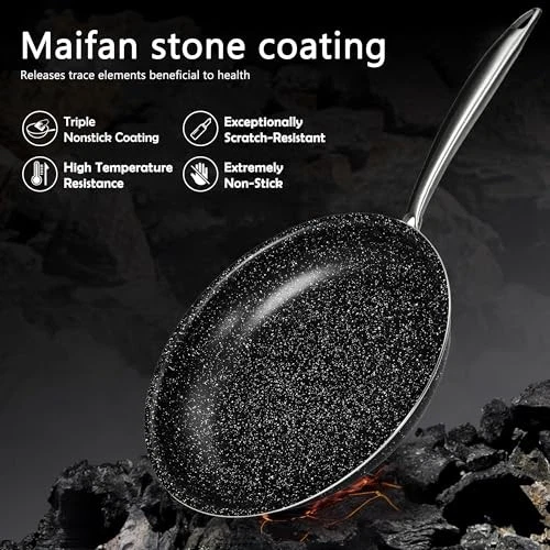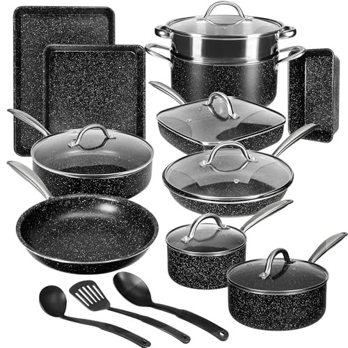 Return Policy Fast Delivery Trusted seller 20pcs Pots and Pans Set Non Stick, Kitchen Induction Cookware Nonstick, Saucepans, Utensil, Skillet with Maifan Stone Coated For Cooking(PFOS, PFOA Free), Dishwasher & Oven Safe, Black Product Description Effortless & Healthy Cooking: This Non stick pots and pan set are triple-coated for high heat resistance, allowing food to slide off easily and enabling healthier cooking with minimal oil. Our pot set safe for acidic foods like tomato sauce, that doesn’t alter food flavor. This kitchen cookware sets is easy to clean up All You Need: The 20-Piece Pot sets for cooking nonstick Includes: 8.5" Fry Pan, 10.25" Fry Pan nonstick with Lid, 9.5" Square Sauté Pan with Lid, 1.5qt Saucepan with Lid, 2.5qt Saucepan with Lid, 4qt Sauté Pan with Lid, 5qt Stock Pot with Lid and Steamer, Loaf Pan, Square Bake Pan, and Utensil Set Enhanced Cooking Experience: This Kitchen pots and pans set with comfortable handles offer a firm grip, and vented glass lids for visibility while retaining heat and moisture. Cooking set is perfect for everyday cooking or trying new recipes, meeting all cooking and baking needs Fast & Even Heating: The pans set nonstick featuring an aluminum core and die-cast aluminium heavy-gauge base, heats up quickly and evenly. This cookware compatible with gas, electric, and induction stovetops, it’s also dishwasher & oven safe up to 400°F Durable by Design: This nonstick cookware set is free of PFOA, PFOS, featuring the white-speckled maifan stone coating that releases trace elements beneficial to health. The reinforced cast aluminum body and scratch-resistant coating ensure durability, so withstands frequent use without compromising performance Shipping Returns Payment Shipping Shipping is FREE to all addresses other than APO/PO boxes in the lower 48 states. All our stock ships from US-based warehouses. Shipped via USPS or UPS (depending on location and package weight) Unless stated otherwise, all orders will ship within 24-72 hours of your payment being processed. Check our feedback to see the great reviews of FAST shipping we offer. Returns Seller does not accept returns Payment We currently accept payment via eBay managed payments only. Once payment is cleared, we will dispatch your shipment within 1-3 business days. Please refer to the "Shipping" tab for more information regarding shipping speed to your destination.