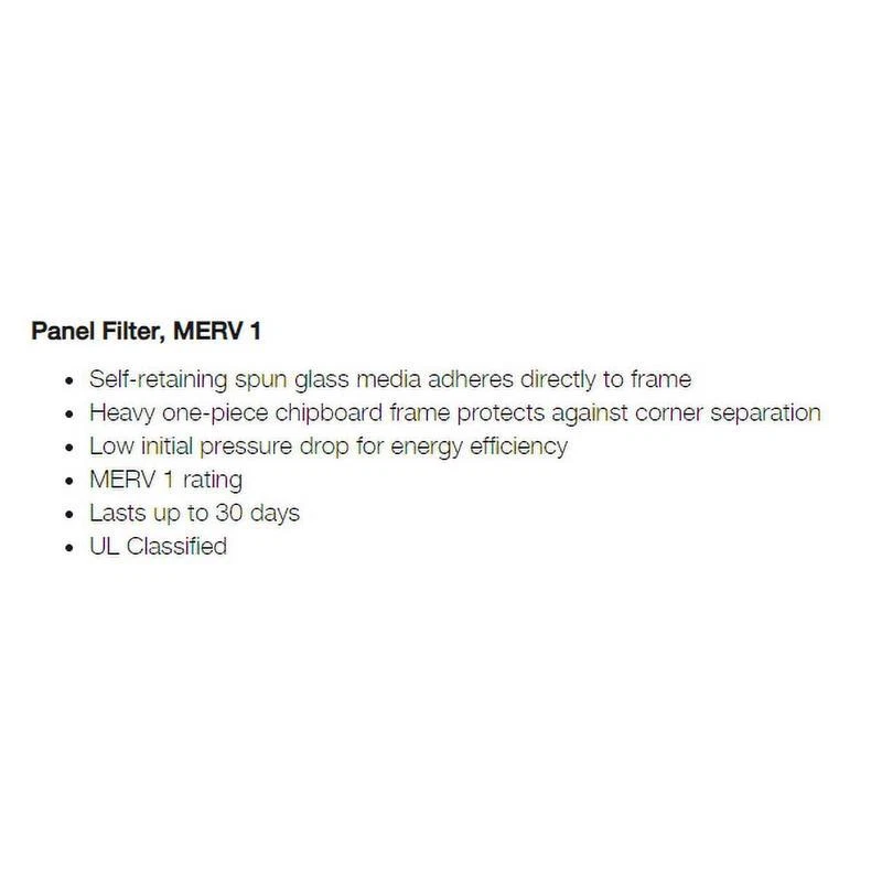 27 Gallon Snap Lid Storage Tote Heavy Duty Stackable Container Lockable New 17.99 USD 18.94 USD Free shipping 5% off Apple Pumpkin Scented Candle Large Glass Jar 20oz Clean Burn Long Lasting New 12.22 USD 12.86 USD Free shipping 5% off Excursion 7'0" Spinning Fishing Rod 1-Piece Durable Sturdy Anti-corrosion New 27.49 USD 28.94 USD Free shipping 5% off Rechargeable Floor and Carpet Sweeper Cordless Powerful and Lightweight 54.19 USD 57.04 USD Free shipping 5% off Packable Blanket Quilted Outdoor Camping Picnic Dual Sided Soft Durable New 27.04 USD 28.46 USD Free shipping 5% off Interior Paint Antique 1 Gallon Kitchen Bathroom Living Room Off White Eggshell 25.91 USD 27.27 USD Free shipping 5% off Dirty Bird Dry BBQ Rub and Seasonings for Chicken Pork and Beef Deliciously New 19.78 USD 20.82 USD Free shipping 5% off 8 Piece Plastic Bowl Set W/ Lids Spout Rim Dishwasher Safe Food Storage New 12.56 USD 13.22 USD Free shipping 5% off "18" Director's Chair Honey Oak Frame-Tan Canvas Folding Homes Schools Events 59.27 USD 62.39 USD Free shipping 5% off 2-Gallon Glass Drink Dispenser with Metal Stand and Stainless Steel Spigot New 28.38 USD 29.87 USD Free shipping 5% off 6’6” Nearshore/Offshore Boat Conventional Rod; 1 Piece Fishing Rod Outdoor 74.05 USD 77.95 USD Free shipping 5% off Plush Bean Bag Chair 2.5ft Dorm Bedroom Soft Seat Indoor Outdoor Lazy Lounger US 49.37 USD 51.97 USD Free shipping 5% off This is a standard grade furnace filter of the same type that has been protecting furnaces and central air conditioners around the world for over 50 years. The filtering medium is continuous filament spun glass. For peak equipment protection and energy efficiency, these filters should be changed monthly in periods of high use. Protects heating and air conditioning equipment without causing additional strain Nested construction allows for efficient storage Each filter lasts up to 30 days UL Class 2 Liquid Plant Vitamin Solution Root Development Mineral Supplement 1 Gal New 221.57 USD 233.23 USD Free shipping 5% off Heavy-Duty Workbench W/ Storage Drawers Pegboard Power Strip LED Light New 175.23 USD 184.45 USD Free shipping 5% off 16ft Aluminum Extension Ladder 225lb Capacity MAX LOCK Safety Stability New 187.01 USD 196.85 USD Free shipping 5% off Extra Large Wagon Outdoor All Terrain Wheels Ergonomic Handle Side Organizers US 174.8 USD 184.0 USD Free shipping 5% off 10A 6.5In Plunge Cut Track Saw Precision Cutting Wood Ripping Dust Port New 104.23 USD 109.72 USD Free shipping 5% off 4-Shelf Steel Shelving Adjustable Heavy Duty Storage Garage Workshop Shelves 72.87 USD 76.7 USD Free shipping 5% off Lightweight Compact Baby Stroller Easy One Hand Fold Travel Toddler Seat New 97.57 USD 102.7 USD Free shipping 5% off Knock-Down Aquarium Stand 20-29 Gallon Easy Assembly Rust Resistant Storage New 95.09 USD 100.09 USD Free shipping 5% off 10 Gallon 4 Peak HP Wet Dry Vacuum Portable Blower 17ft Cleaning Reach New 92.62 USD 97.5 USD Free shipping 5% off Heavy Duty Steel Slat Bed Frame Full W/ Under Bed Storage No Box Spring Required 83.98 USD 88.4 USD Free shipping 5% off 4-Shelf Plastic Storage Shelves Heavy Duty Garage Utility Easy Assembly New 88.92 USD 93.6 USD Free shipping 5% off 3 Tier Wide TV Stand No Tools Assembly TVs up to 46 Inches Entertainment Storage 85.39 USD 89.88 USD Free shipping 5% off