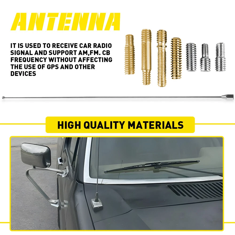 Universal 21" Car Silver Steel Antenna Aerial AM FM Radio Mast Pole Replacement Fit for: Universal Specifications: Product Material: Metal Color: Silver Size: 21inch Function: Replace the original damaged antenna to receive more stable wireless signals. Features: *AM/FM radio antenna replacement made according to originals to match your car. *Made of superior material to ensure its durability and abrasion performance, which is not easy to fade and oxidize. *Decorate your car and enhance the aesthetic appearance of your vehicle. 21" Universal Car Silver Steel Antenna Aerial AM FM Radio Mast Pole Replacement Universal 21" Car Silver Steel Antenna Aerial AM FM Radio Mast Pole Replacement Fit for: Universal Specifications: Product Material: Metal Color: Silver Size: 21inch Function: Replace the original damaged antenna to receive more stable wireless signals. Features: *AM/FM radio antenna replacement made according to originals to match your car. *Made of superior material to ensure its durability and abrasion performance, which is not easy to fade and oxidize. *Decorate your car and enhance the aesthetic appearance of your vehicle. *Easy installation with a direct replacement, professional installation is always and highly recommended. *All products are performance tested to ensure they meet your vehicle parameters. Packaging Include: Antenna*1 Screws*7 ✨✨ Quality and After-Sales Service ✨✨ 1. Quality Assurance: We are committed to providing you with high-quality auto parts products. If you find any quality problems during use, please contact us in time and we will serve you wholeheartedly. 2. Worry-Free After-Sales: We attach great importance to your shopping experience. If you have any after-sales needs, we will respond quickly and do our best to solve your problems. Please feel free to purchase and use our products. Item Specifics Other Part Number D3AZ18A886A D3A-Z18A-886A D3A Z18A8 86A Antenna Technology AM/FM Color Silver Fitment Type Direct Replacement Items Included Adapter Antenna BASE is NOT INCLUDED! Antenna BASE is not included/for sale ONLY Antenna Manufacturer Part Number TX-21INCH-GSS Antenna Style Whip Antenna Mounting Hardware Included No Material Metal Superseded Part Number genuine original factory oem style Antenna BASE is not included/for sale ONLY Antenna 21 inch in in. " ' ' D3AZ18A886A D3A-Z18A-886A D3A Z18A8 86A accessories chrome color Vintage Part No Placement on Vehicle Fender Front Right Brand Sold by eAccessoriesUsa Type Fender Mount Interchange Part Number Unscrew the Mast from the Antenna Base And screw the New Mast on! Mast Screw Roof Fuba Radio Aerial Antenna MAST WHIP AERIAL AM/FM RADIO ANTENNA Great Reception Easy to Install Listen to the radio save your money POWER ANTENNA MAST Manufacturer Warranty 3 Years Attachment Type Screws Antenna BASE is not included/for sale ONLY Antenna Size 21inch Features Easy Installation Waterproof Universal Fitment No Country/Region of Manufacture China Finish Chrome Packaging Include Antenna*1,Screws*7 Return Policy 60 Days Free Return Number of Pieces 1 Performance Part No Fit Universal California Prop 65 Warning / FAQ ♥ If you have a decoding problem or any other problems, please contact us first, we will help you with it. We will reply you within 24 hours in working days. I'm a new seller, thanks a lot for your trust and convince! I will serve you with all my heart. ♥ Q1: Will this bulb fit my vehicle? A: We can match almost any vehicle to one of our bulb sizes. eBay only lets us include some vehicle fitments per listing, but if your vehicle does not show up on the compatibility table at the top of our listings, welcome you to contact us for free consulation before purchasing a product. Q2: My item has not arrived, what's taking so long? A: Sometimes items take longer than expected, especially if it’s going far or to rural area. Check with your post office to see if your item has been held up. Sometimes Royal Mail will not update a tracking number until it has arrived at its destination. If your item still don't arrive after a few days, let us know so we can double check for you and help solve it asap. Q3: My bulbs won't fit, help! A: Special bulb holder may be required. See if you can take the holder from the stock bulb. If not, let us know. The bulb size may be wrong, double check the item you received with the item you ordered. Do you have an aftermarket lighting housing? These may not be perfectly fitted for aftermarket bulbs and will require some manual modifications. Q4: Neither side lighting up? Both sides flicker, hyper flash, or work inconsistantly. A:Check the light fuses, and then check the ballast plugs to insure correct installation. If this doesn't work, there may be a voltage problem with the vehicle. You probably just need a relay or capacitor. Even though some bulbs are builtin resistors, they may still need a decoder. Pay & Ship (1). We gladly accepts payment via PayPal, We will ship your item(s) within 24 hours. (2). Before payment, please keep the consistency of Paypal address and ebay address. (3). Quantity orders are welcome! Returns (1). We offer 60 days free return policy. Please contact us within 60 days from the date you receive your order if you have any issues with the product or want return. Refund will be send after we got your resend package. (2). All returned items should be in the original packaging , return tracking information should be provided . Contact Us (1).Negative feedback will not help resolve any problems you have, please contact us via eBay messages before leaving negative feedback , our customer service will make best effort to help you with the issues. (2).We maintain high standards of excellenceand strive for 100% customer satisfaction! Feedback is very important to us. We request that you contact us immediately before you give us neutral or negative feedback, so that we can satisfactorily address your concerns. About us We're professional in car and motorc